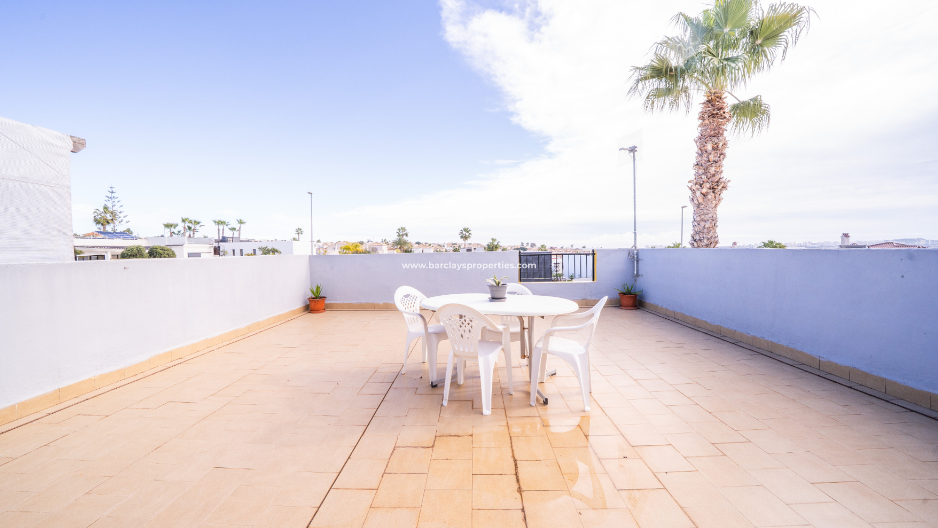 La cuisine équipée est entièrement électrique et mène au patio intérieur / espace buanderie. À l'étage se trouvent une véranda et un solarium spacieux avec une vue dégagée sur la campagne vers Guardamar et la mer.