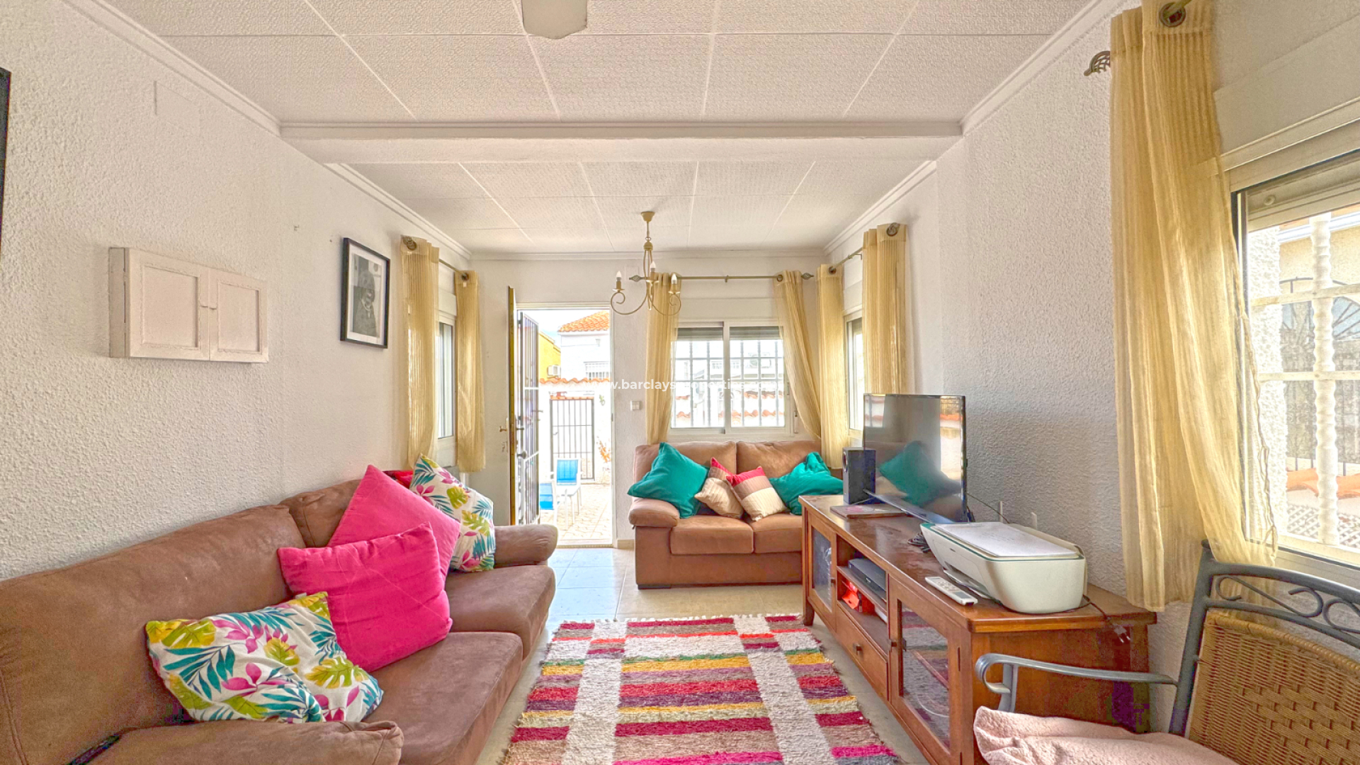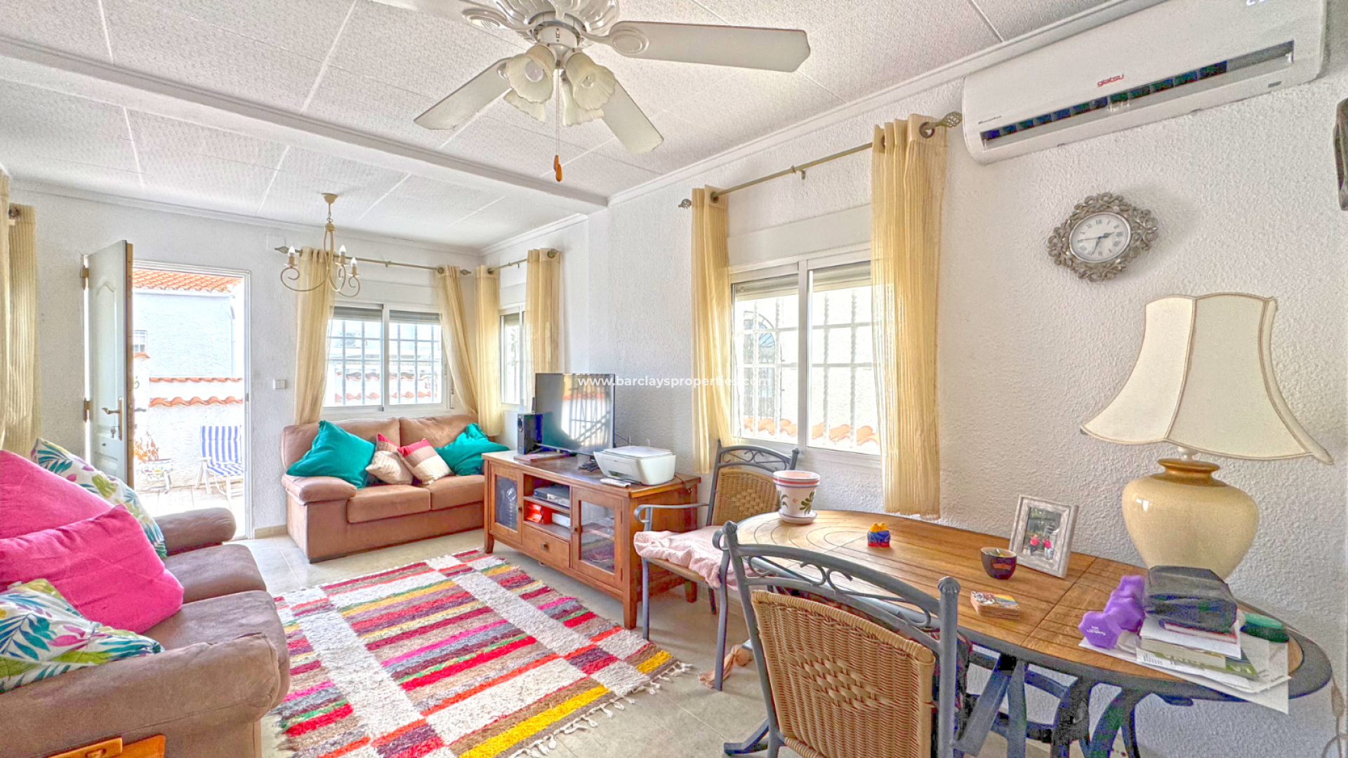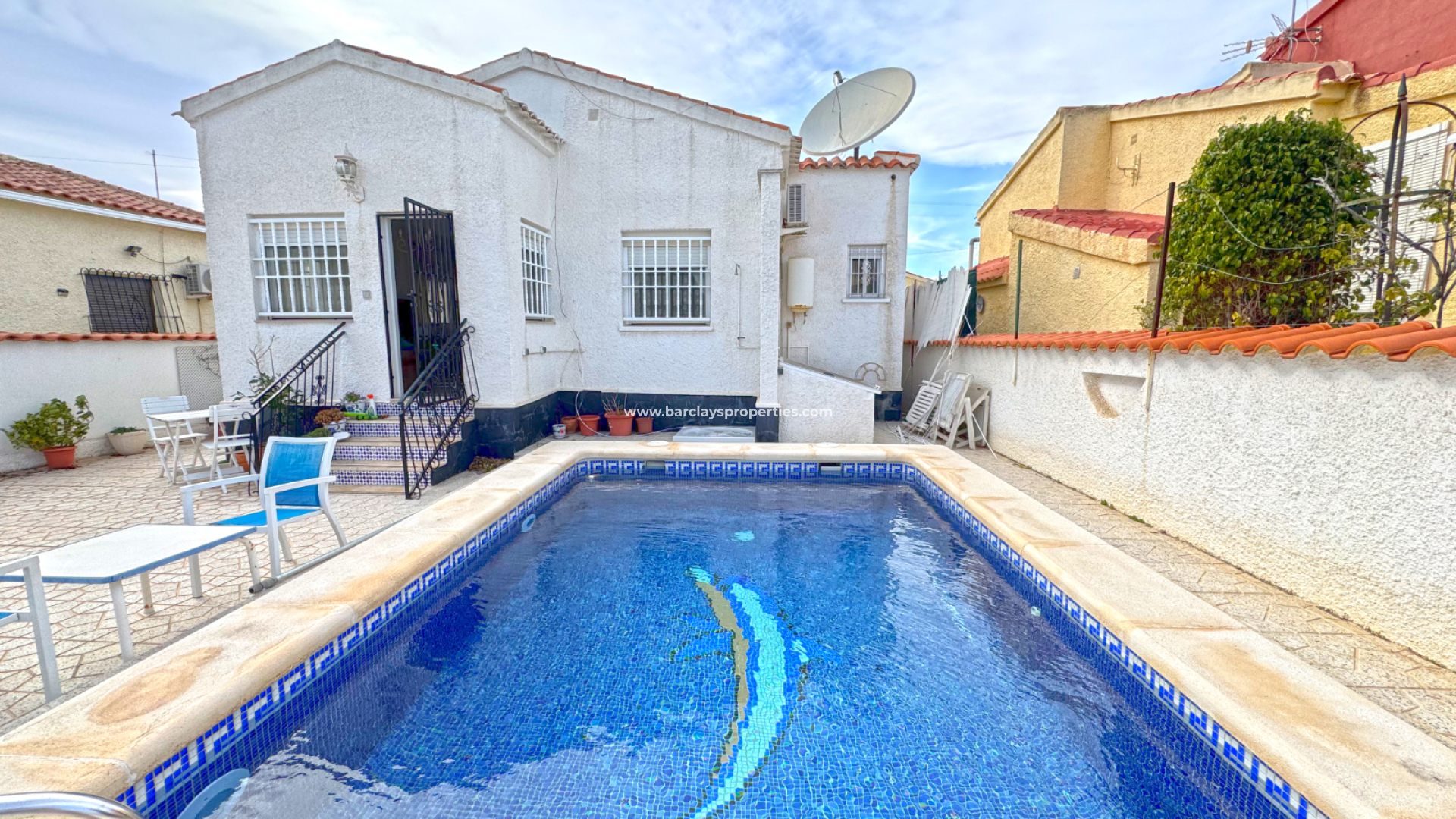 À l’intérieur, la propriété dispose d’un espace de vie lumineux et ouvert comprenant le salon, la salle à manger et la cuisine moderne, créant une atmosphère spacieuse et conviviale. La villa comprend trois chambres confortables et deux salles de bains, dont une en suite, offrant praticité et intimité. La climatisation assure un confort optimal tout au long de l’année.