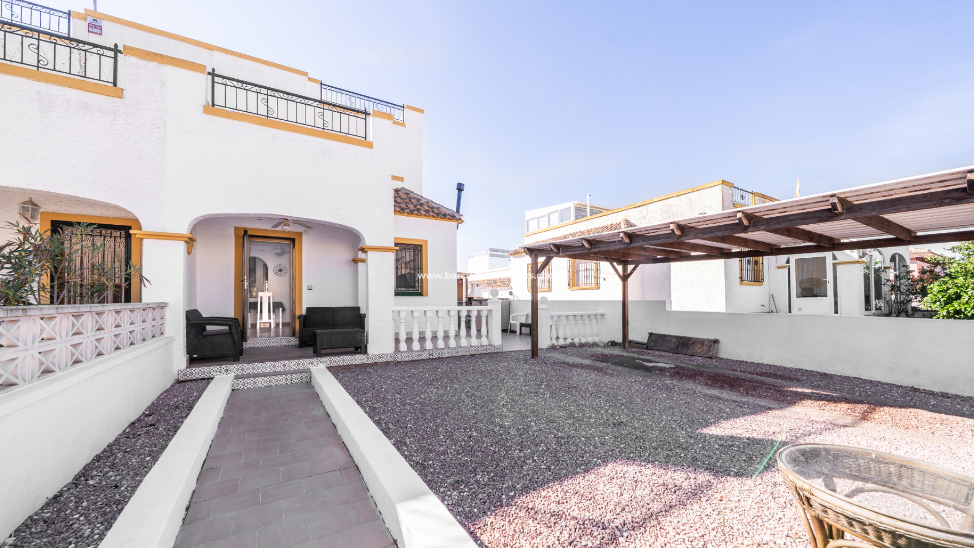 Cette villa jumelée "Isabel" bien présentée est située dans l'Urb. La Marina, dans la commune côtière prisée de San Fulgencio. La propriété offre un espace de vie confortable, de grands espaces extérieurs et de jolies vues sur la campagne depuis le niveau supérieur. Cette propriété se trouve dans un endroit calme, à 15 minutes à pied ou à quelques minutes en voiture des commodités et ➡️ bénéficie de l'avantage supplémentaire de faire partie d'une communauté privée avec accès à une piscine et à des jardins partagés.