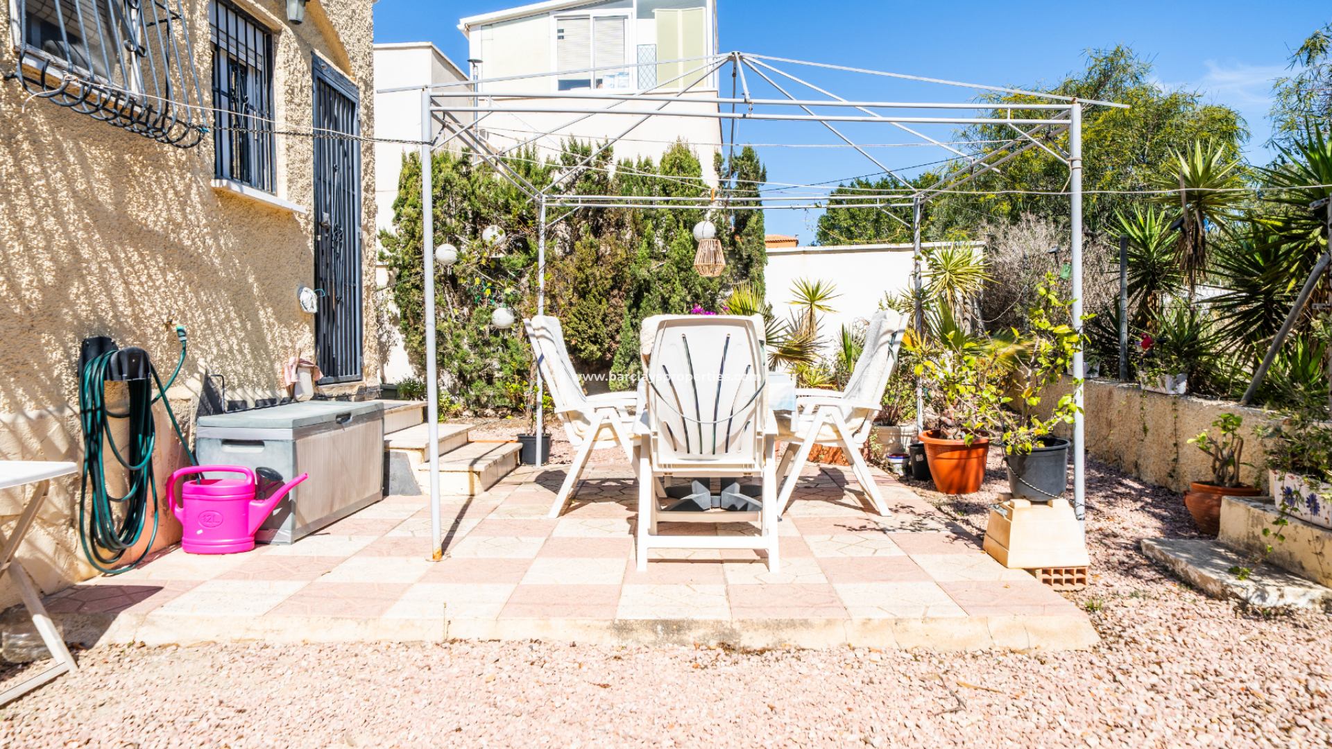 Située dans la Urbanización La Marina, cette jolie maison individuelle modèle « Rosa » offre un cadre de vie confortable dans un quartier résidentiel bien établi, avec une vue dégagée sur les montagnes.