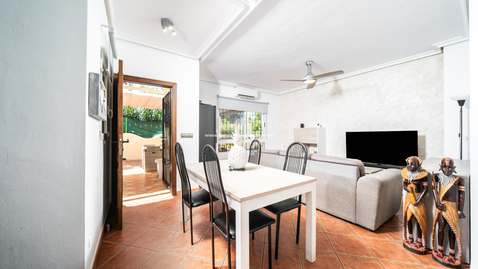 Située dans l'Urb. El Oasis, San Fulgencio, cette villa quad de modèle « Isla Cristina » bien entretenue offre une distribution confortable et pratique avec 81 m² de surface habitable sur un terrain de 103 m², idéale pour une résidence permanente comme pour les vacances. La propriété bénéficie d'une ➡️ orientation plein sud très recherchée, permettant une belle luminosité naturelle tout au long de la journée, tandis que des stores assurent une ombre bienvenue en cas de besoin. Le jardin dispose de plusieurs coins salon pour profiter de la vie en plein air. De plus, cette propriété a l'avantage de faire partie d'une communauté privée avec accès à une piscine commune, parfaite pour des journées de détente au soleil et le lieu idéal pour rencontrer vos voisins.