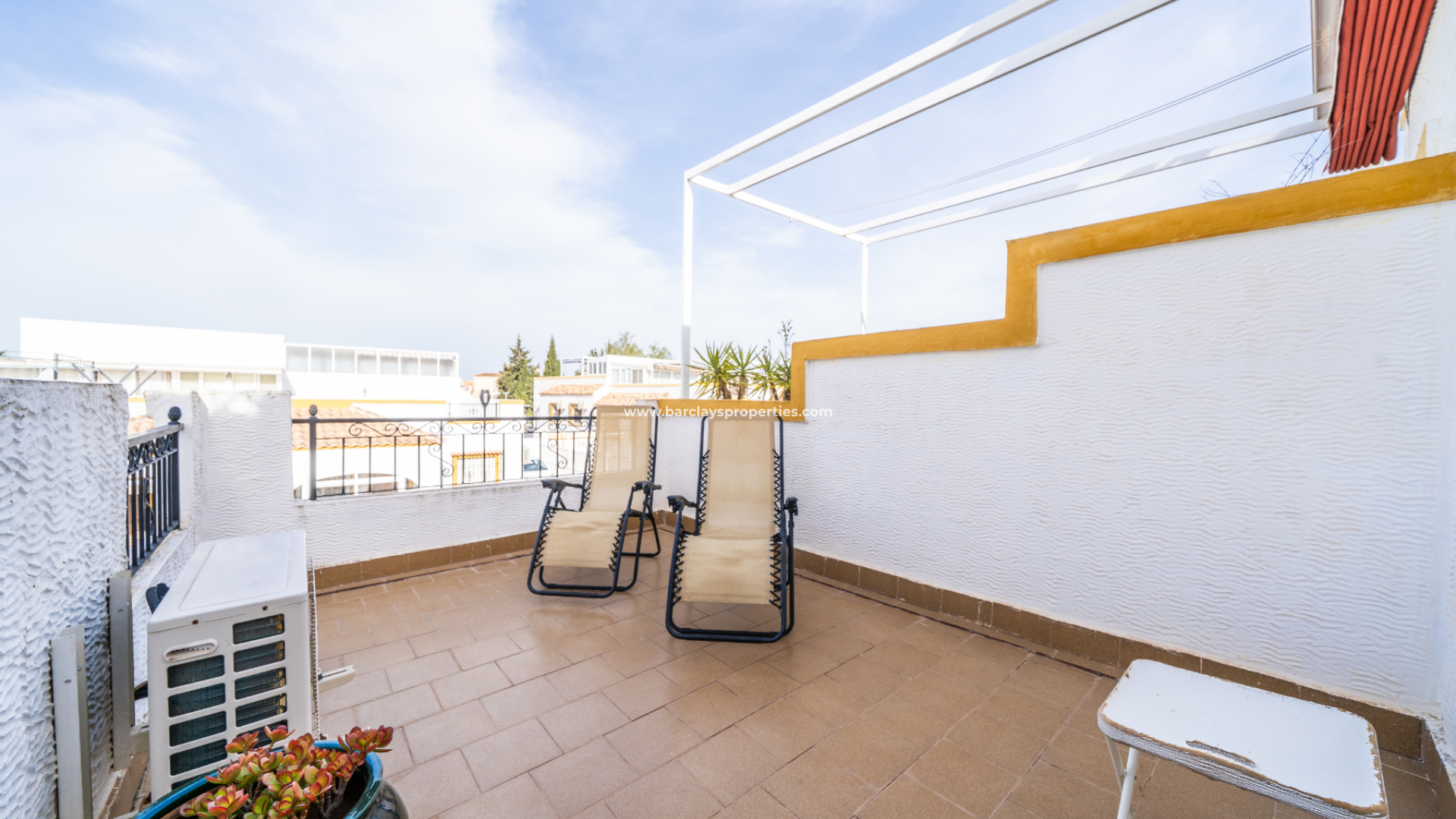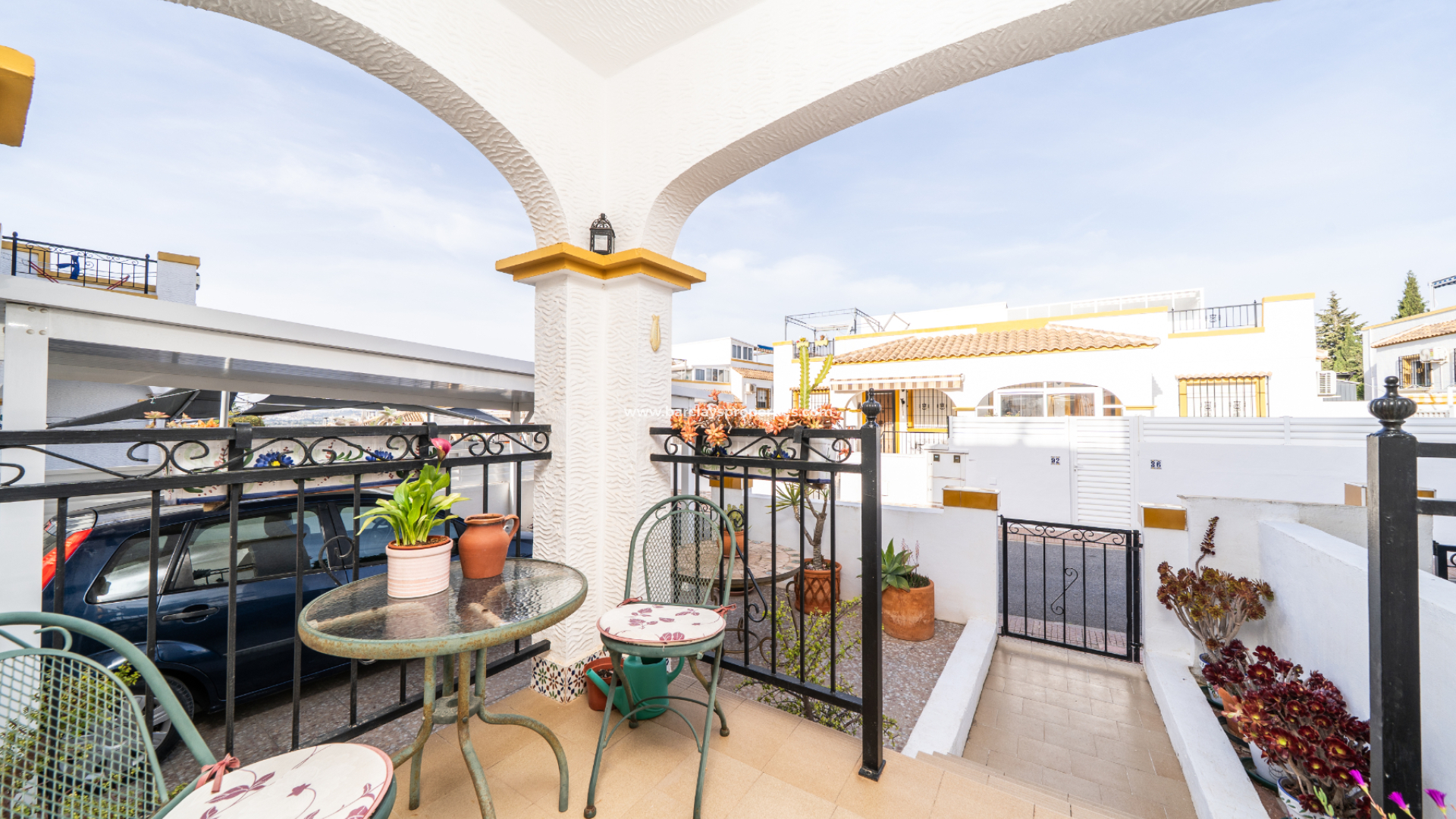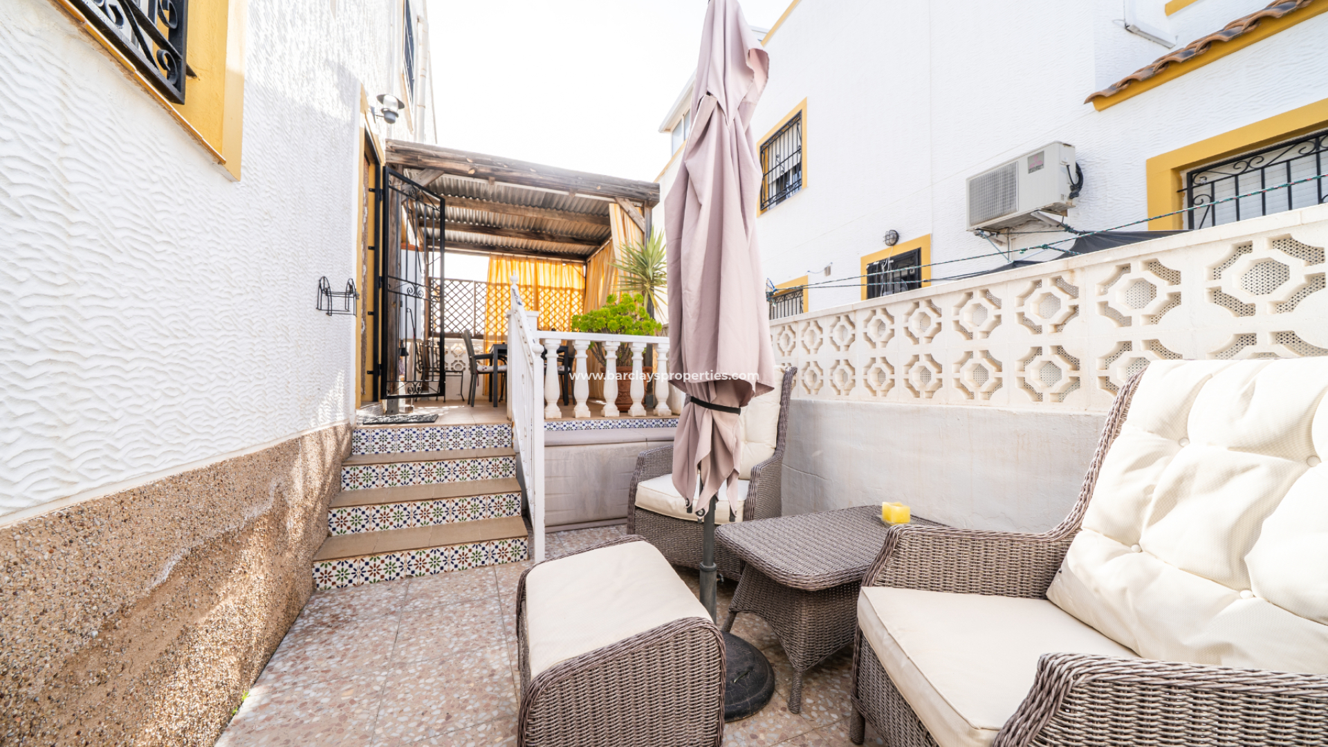 À l'intérieur, le salon spacieux dispose de la climatisation, d'un ventilateur de plafond et d'un espace salle à manger dédié, créant une zone confortable et pratique pour la vie quotidienne. La cuisine indépendante est entièrement équipée et offre un accès direct à la terrasse arrière.