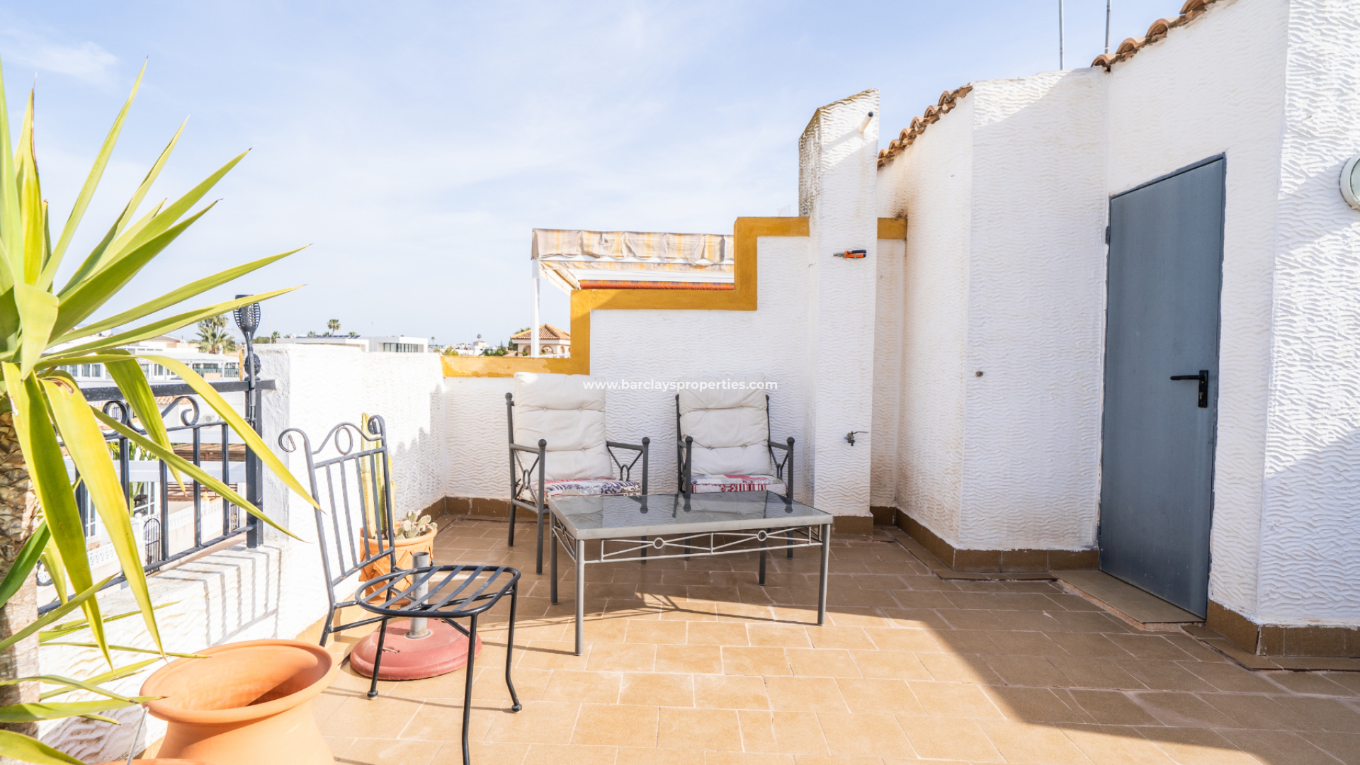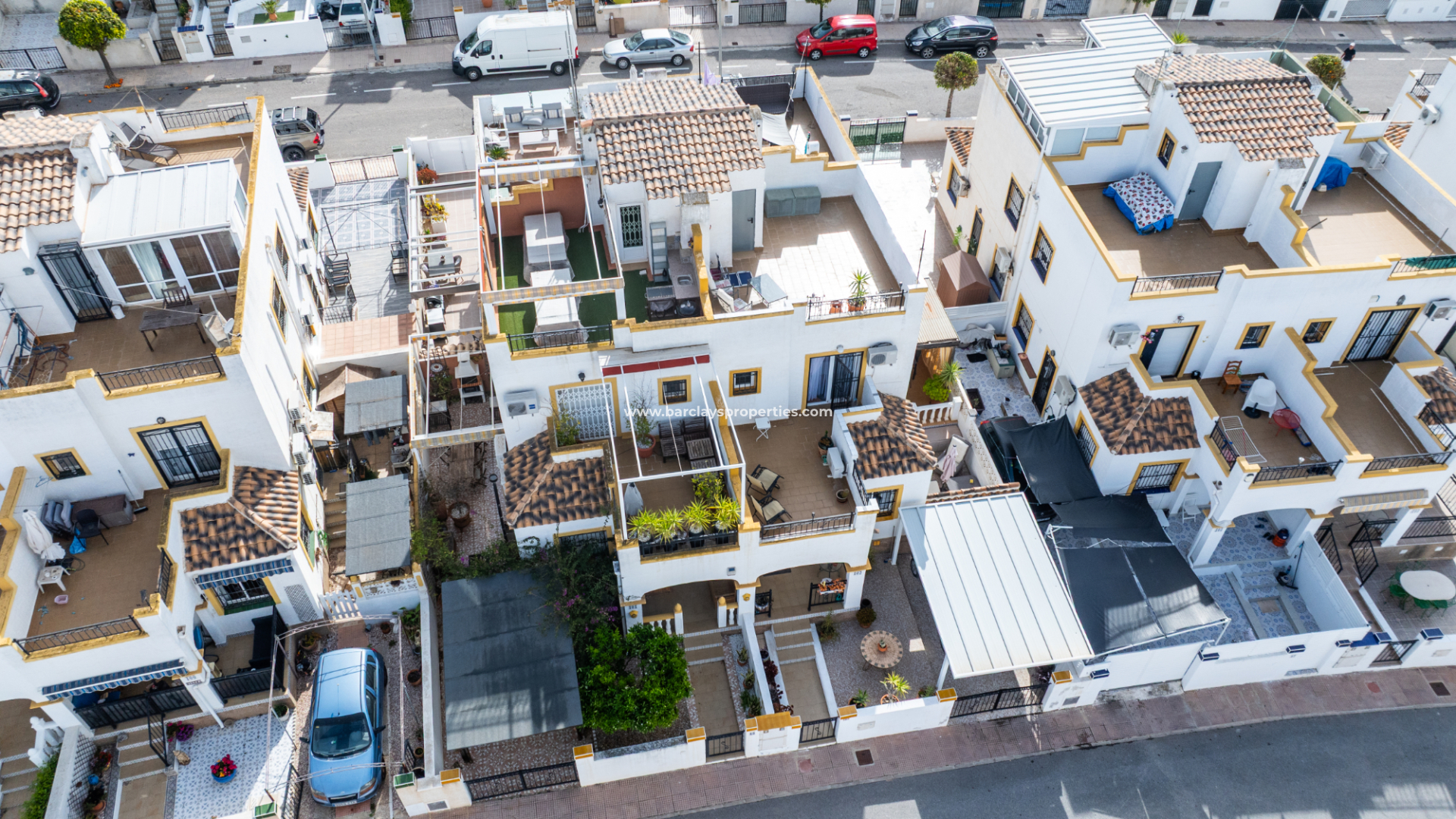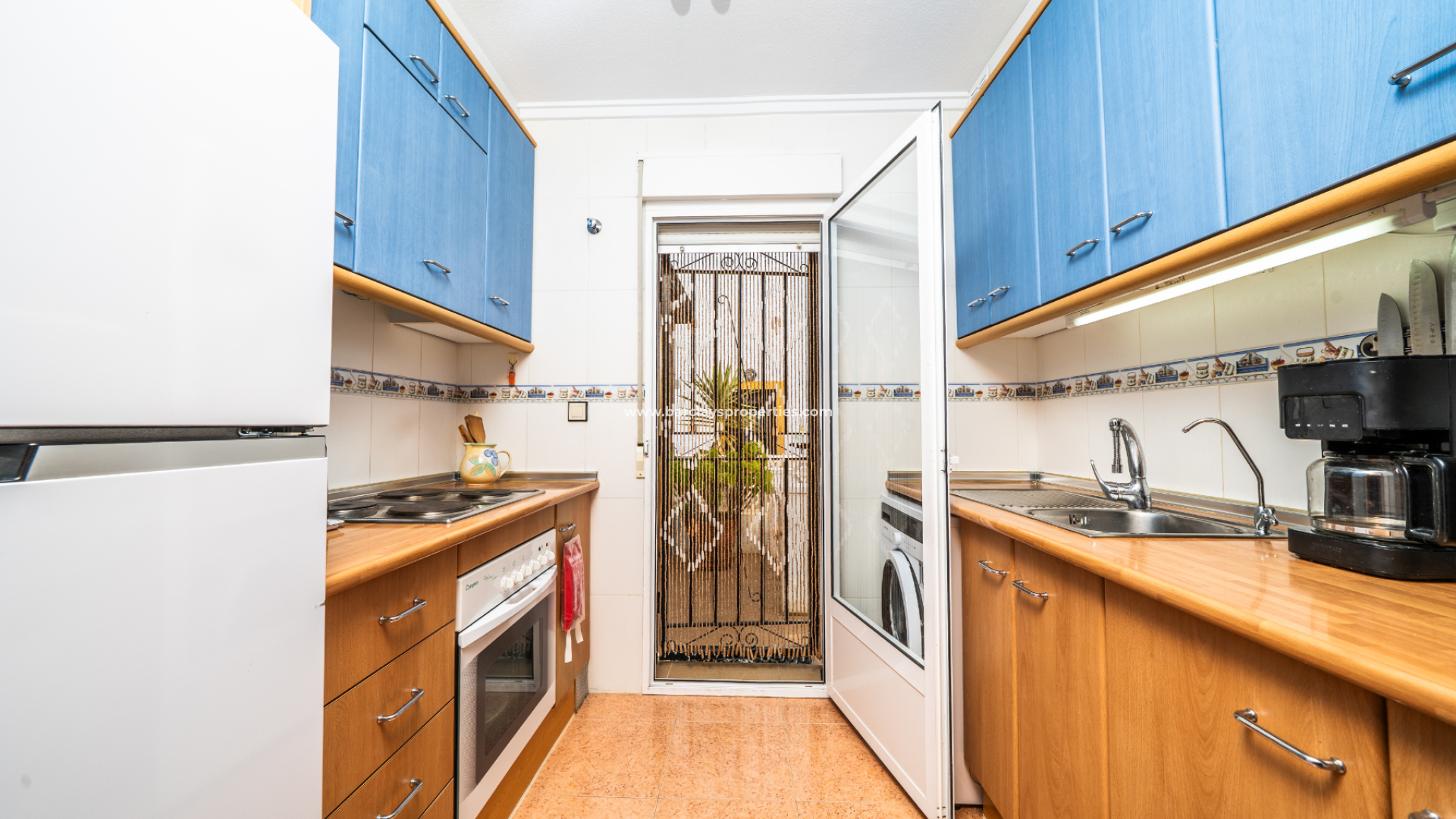 À l'intérieur, le salon spacieux dispose de la climatisation, d'un ventilateur de plafond et d'un espace salle à manger dédié, créant une zone confortable et pratique pour la vie quotidienne. La cuisine indépendante est entièrement équipée et offre un accès direct à la terrasse arrière.