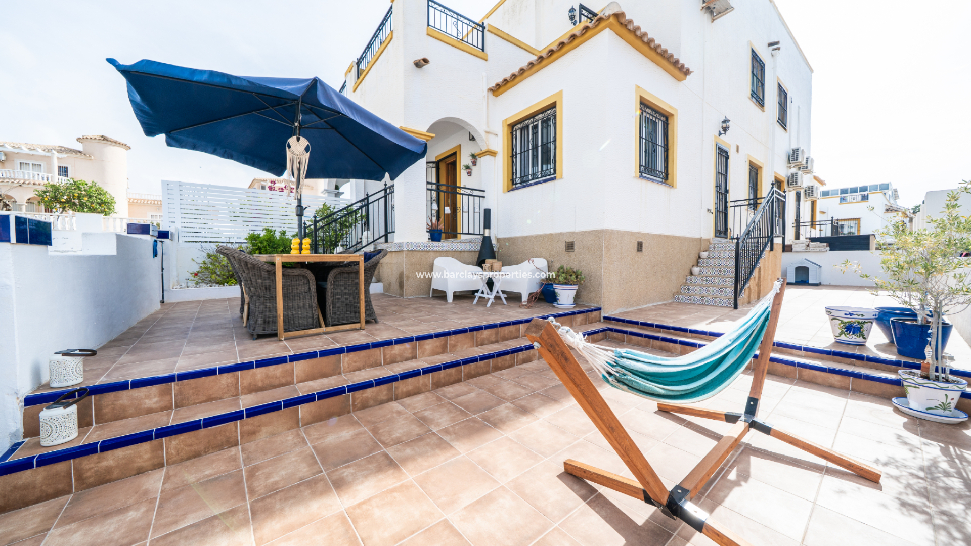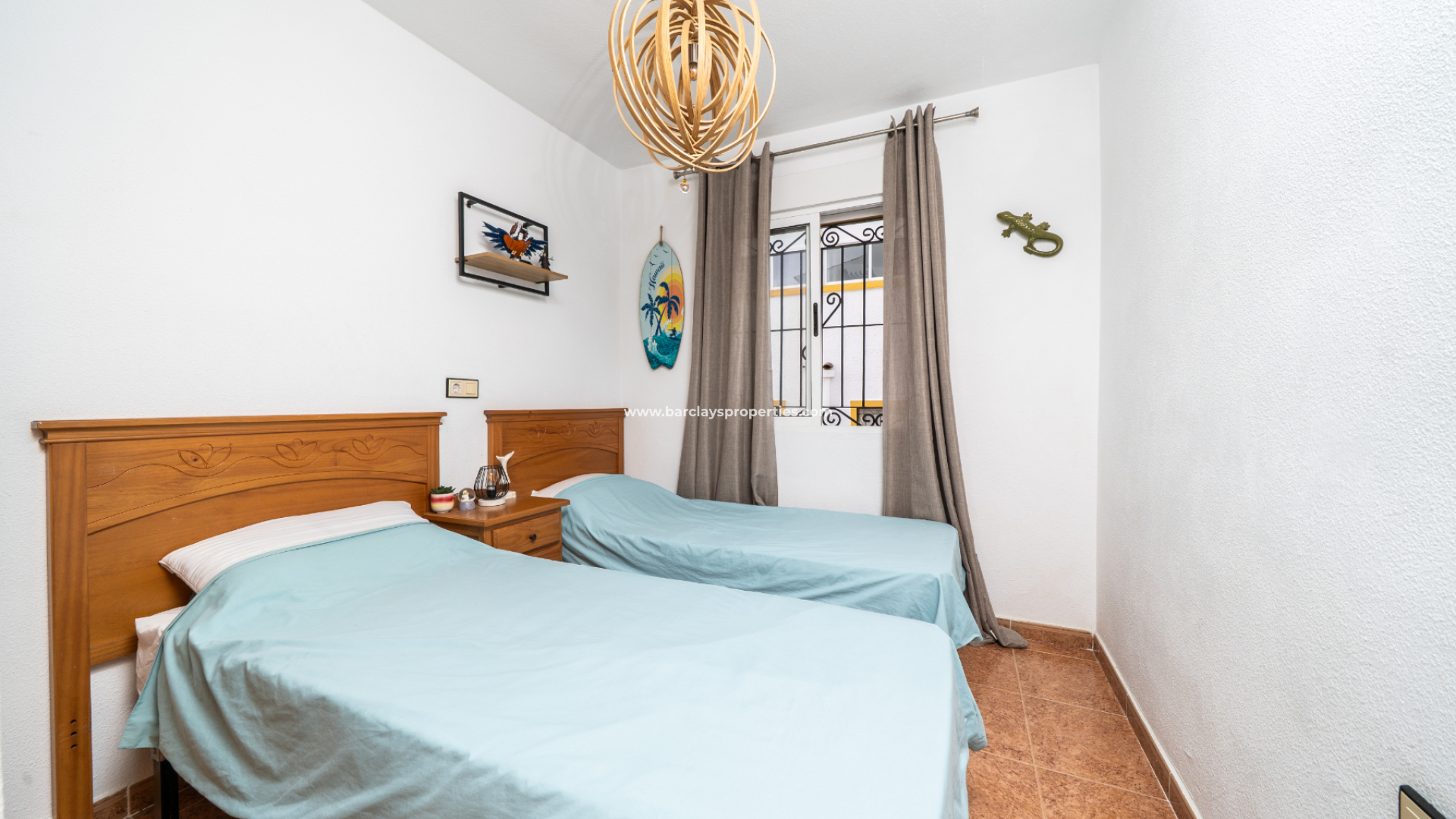 Ce modèle « Isabel » de style quad, très bien entretenu, est situé dans l'urbanisation populaire de La Marina, à seulement 10 minutes à pied de la zone commerciale animée de Consum, offrant un accès facile aux boutiques, restaurants et commodités quotidiennes. La propriété, faisant partie d'une communauté privée, permet l'accès à la ➡️ piscine et aux jardins communautaires – un refuge parfait pour les mois d'été les plus chauds !