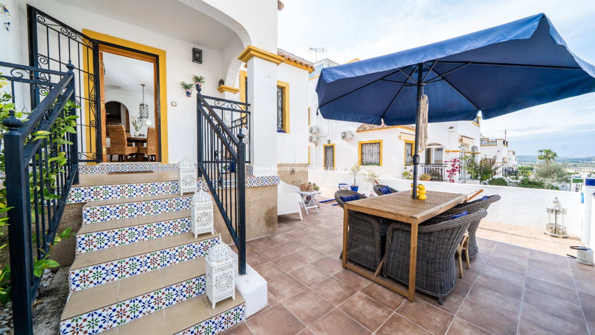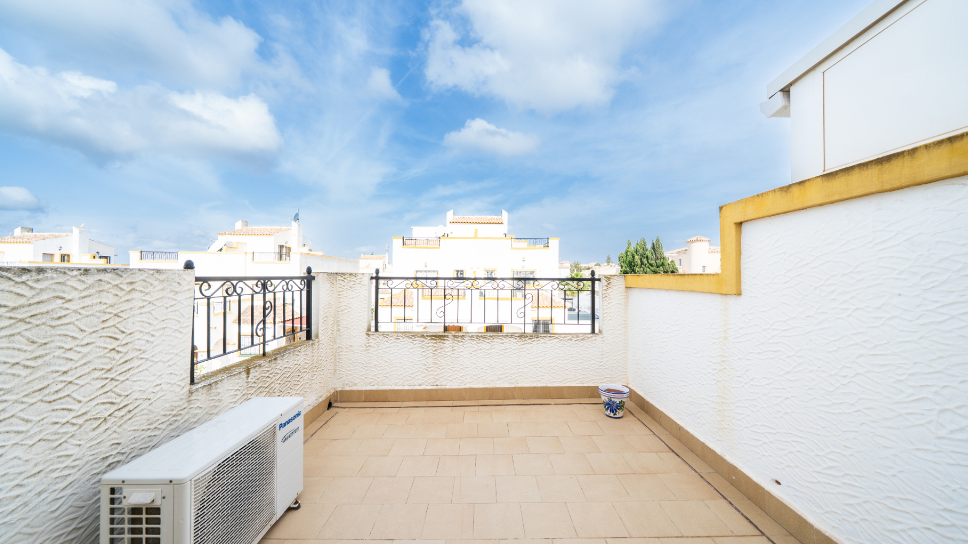 L'un des atouts majeurs de cette propriété est son solarium, offrant une vue dégagée impressionnante sur les montagnes environnantes, la campagne, Guardamar del Segura et la piscine communautaire voisine — un endroit idéal pour bronzer ou profiter du paysage.