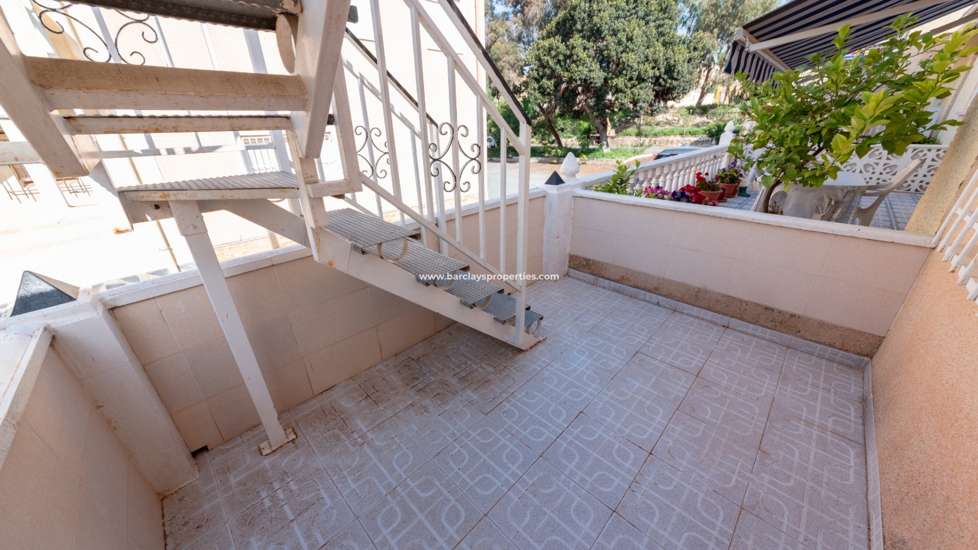 Nous entrons dans la propriété par une grande terrasse privée qui est entourée de murs avec une jolie finition gotegran. Il y a beaucoup d'espace pour un coin repas en plein air où vous pourrez profiter du soleil espagnol pendant 325 jours par an ! À l'intérieur, nous entrons directement dans un salon/salle à manger avec une cuisine américaine entièrement équipée à l'arrière. À gauche, nous trouvons un petit couloir qui nous mène à une chambre double pleine de lumière naturelle provenant de sa grande fenêtre extérieure. Il y a une salle de bains entièrement équipée avec une douche en coin, un salon et enfin une autre chambre double avec une porte menant à l'extérieur avec accès au solarium.