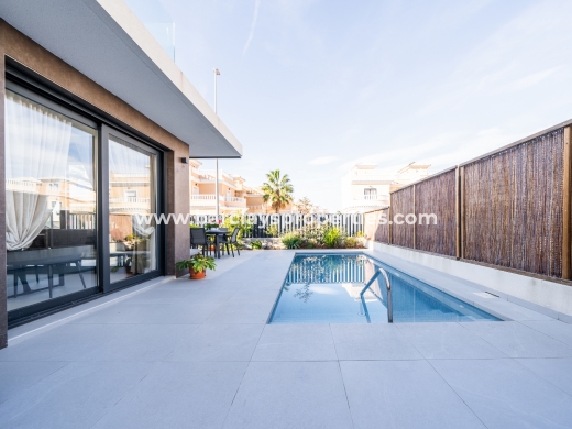 Nu heb je de mogelijkheid om je kwaliteit van leven te verbeteren. In onze geschakelde villa's te koop in de urbanisatie La Marina geniet u meer dan 300 dagen per jaar van de zon . De ruime terrassen zijn ideaal om te ontspannen terwijl u naar uw favoriete muziek luistert of om een gezellige barbecue te organiseren met uw gezin, profiterend van de aangename winterse temperaturen aan de Costa Blanca.
