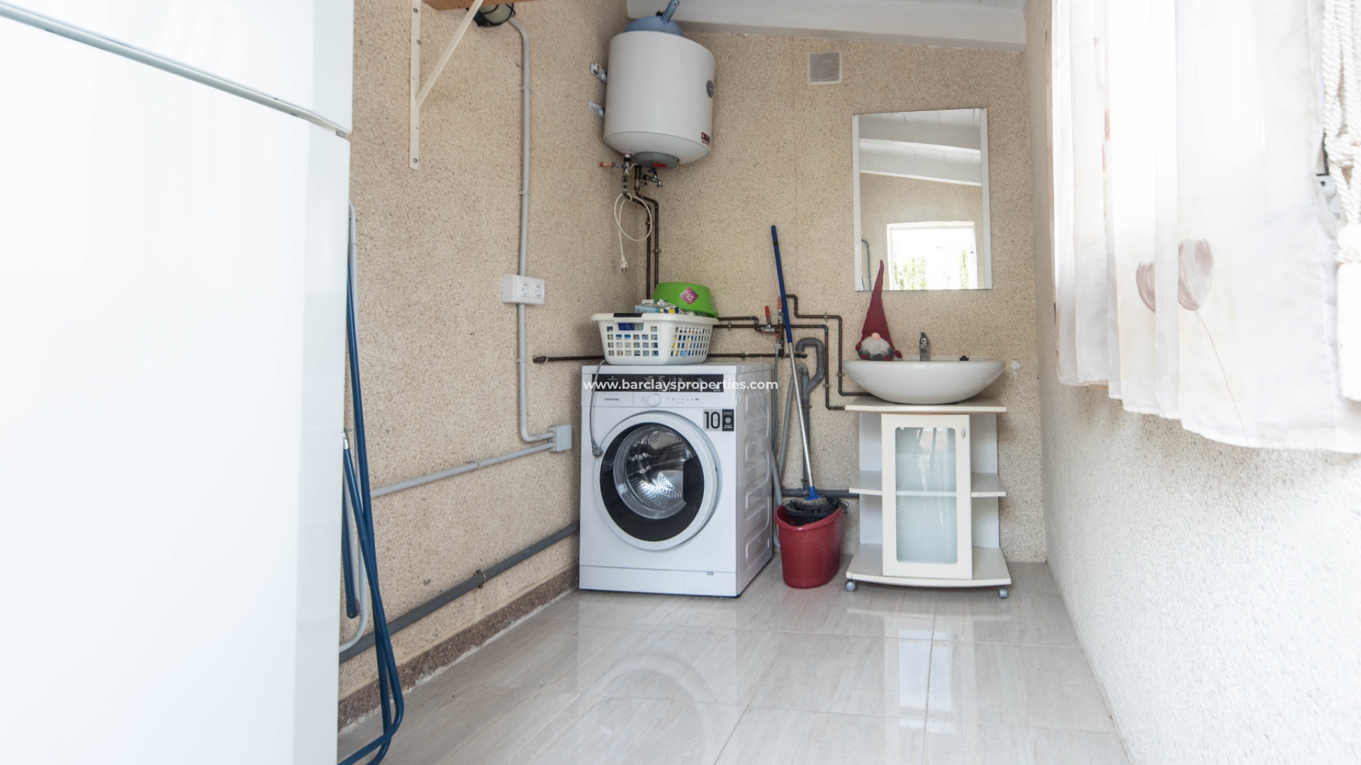 De woning heeft een buiten wasruimte/bijkeuken met koelkast met vriesvak, wasmachine en wastafel. Een indrukwekkende exterieur werkplaats / schuur is ook te vinden binnen het terrein, evenals een barbecue en vele exterieur zitplaatsen om te ontspannen en te genieten van het Spaanse klimaat hier aan de Costa Blanca.