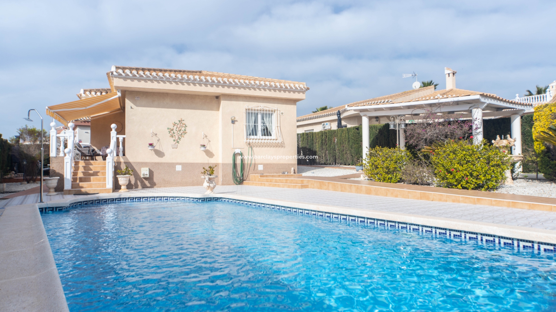 Gelegen in een gewilde locatie in het hart van de urbanisatie La Marina is deze prachtige vrijstaande villa met weinig onderhoud gote gran aantrekkelijke buitenkant. De villa is slechts een steenworp afstand van de populaire commerciële zone bekend als "Consum Square" gegeven zijn naam door de locatie van de grote supermarkt die is omgeven door een grote selectie van bars, tapas bars, cafés en restaurants voor alle smaken.