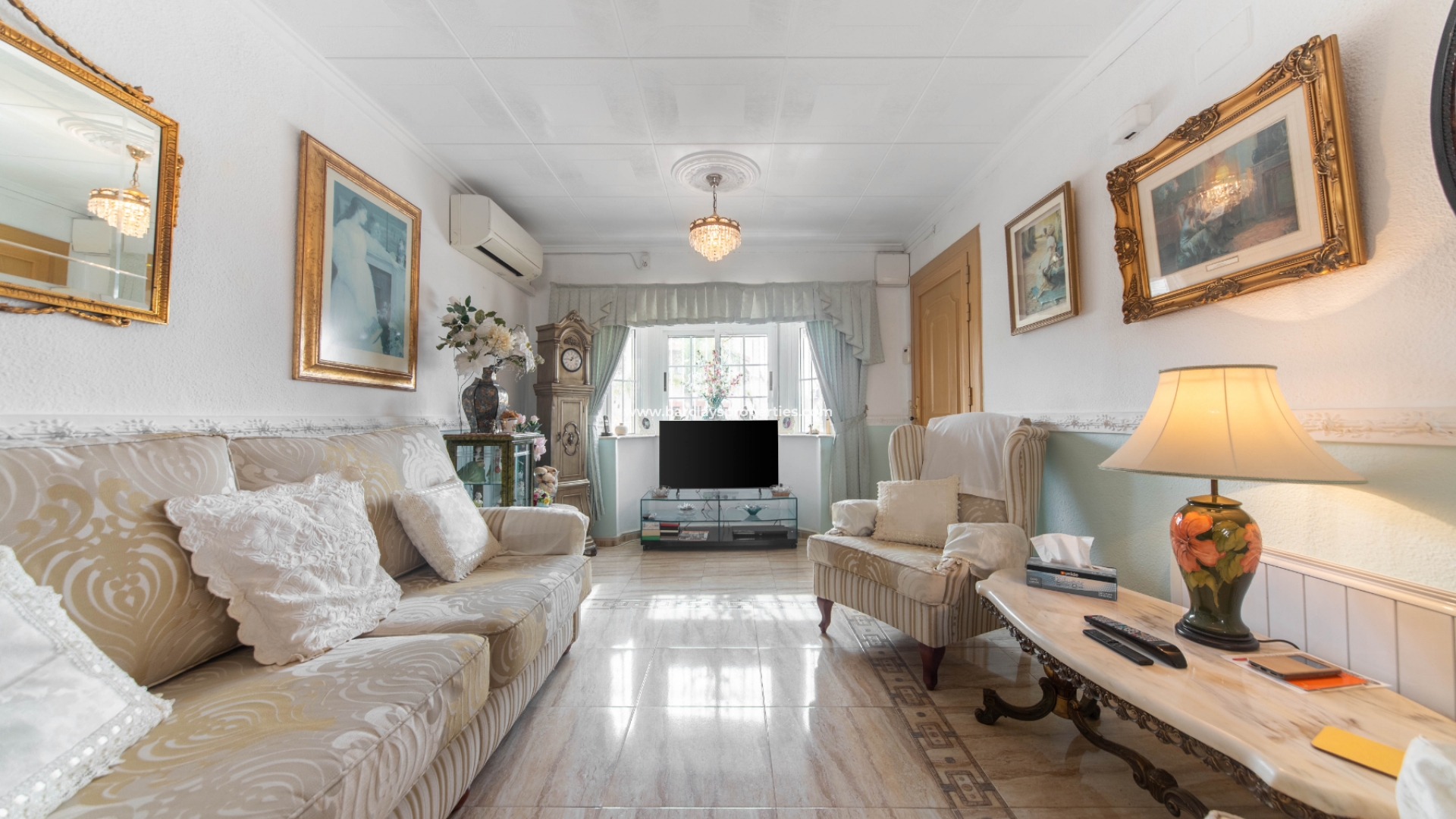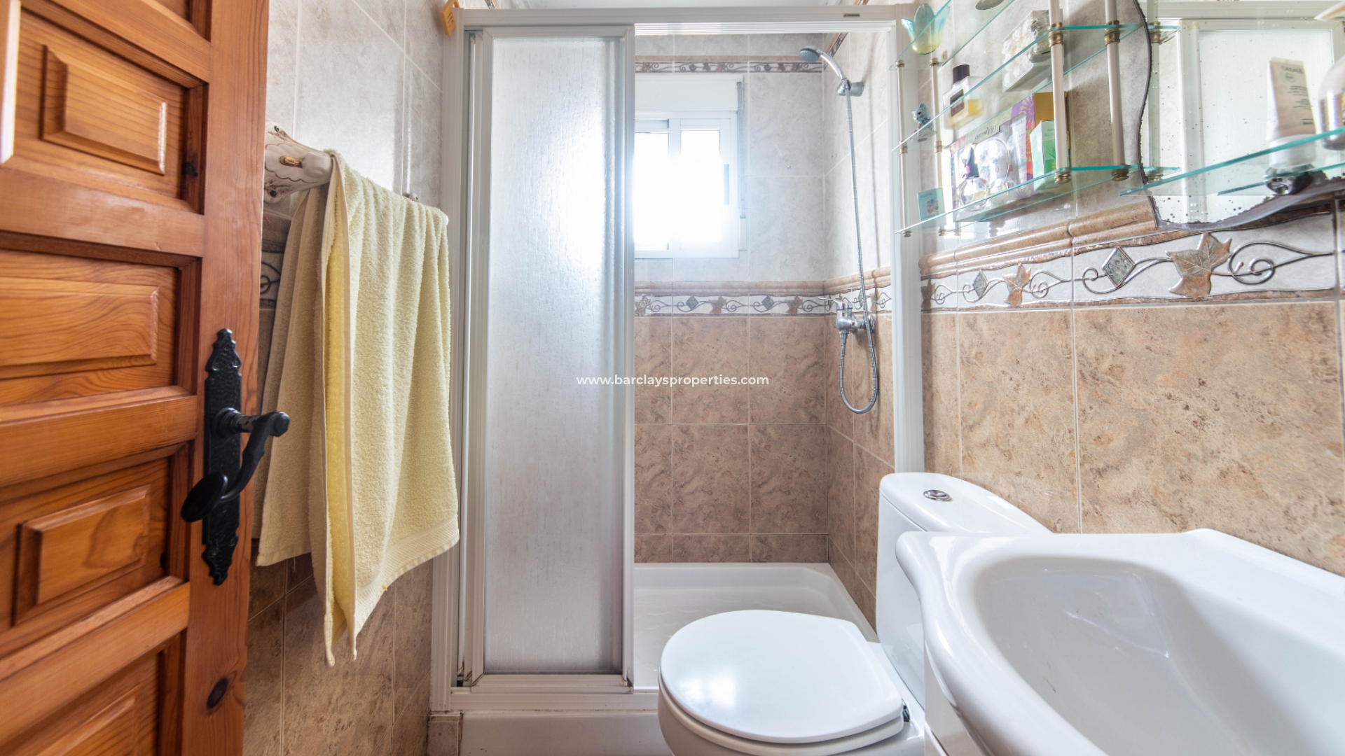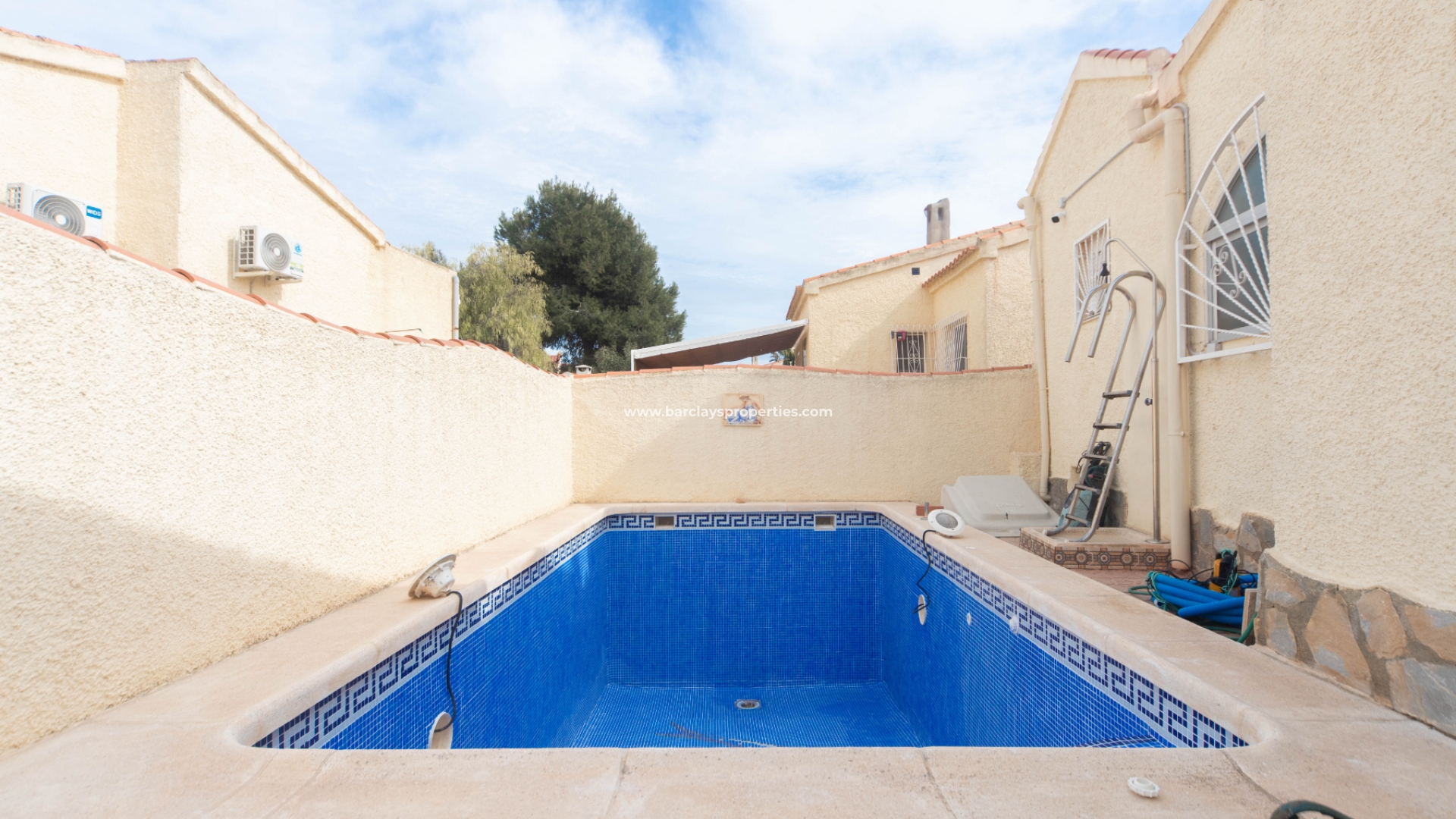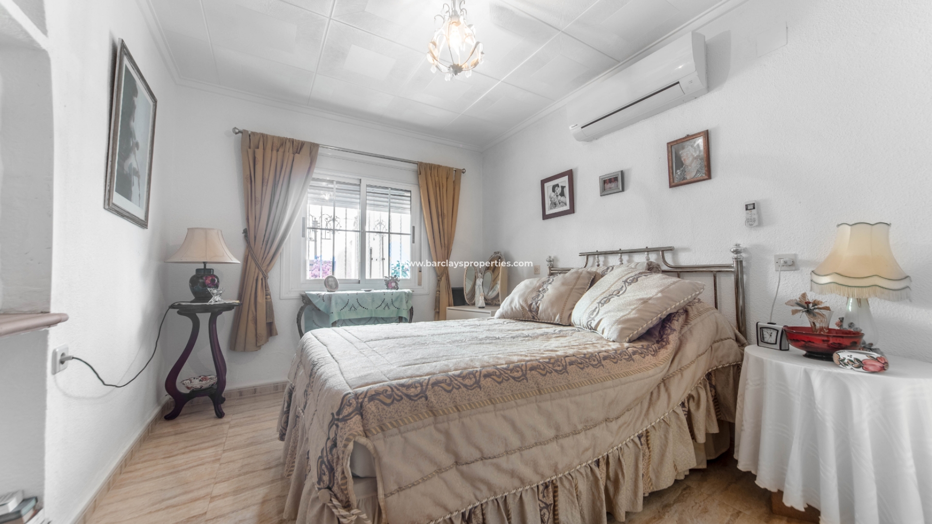U heeft toegang tot deze Vrijstaande villa te koop in La Marina vanaf het op het zuiden gelegen verhoogde terras dat gedeeltelijk overdekt is, zodat u op elk moment van de dag kunt genieten van al fresco dineren. We worden geleid in een ruime lounge vol natuurlijk licht van waaruit we toegang hebben tot de rest van het huis, met inbegrip van een volledig ingerichte open keuken, een extra grote slaapkamer met een eigen en-suite badkamer, een tweede dubbele slaapkamer, een familie badkamer met een wall-to-wall douche en een derde kamer die momenteel wordt gebruikt als een onafhankelijke eetkamer. Zowel de slaapkamers als de woonkamer zijn voorzien van airconditioning units waardoor de woning koel blijft tijdens de warmste dagen.