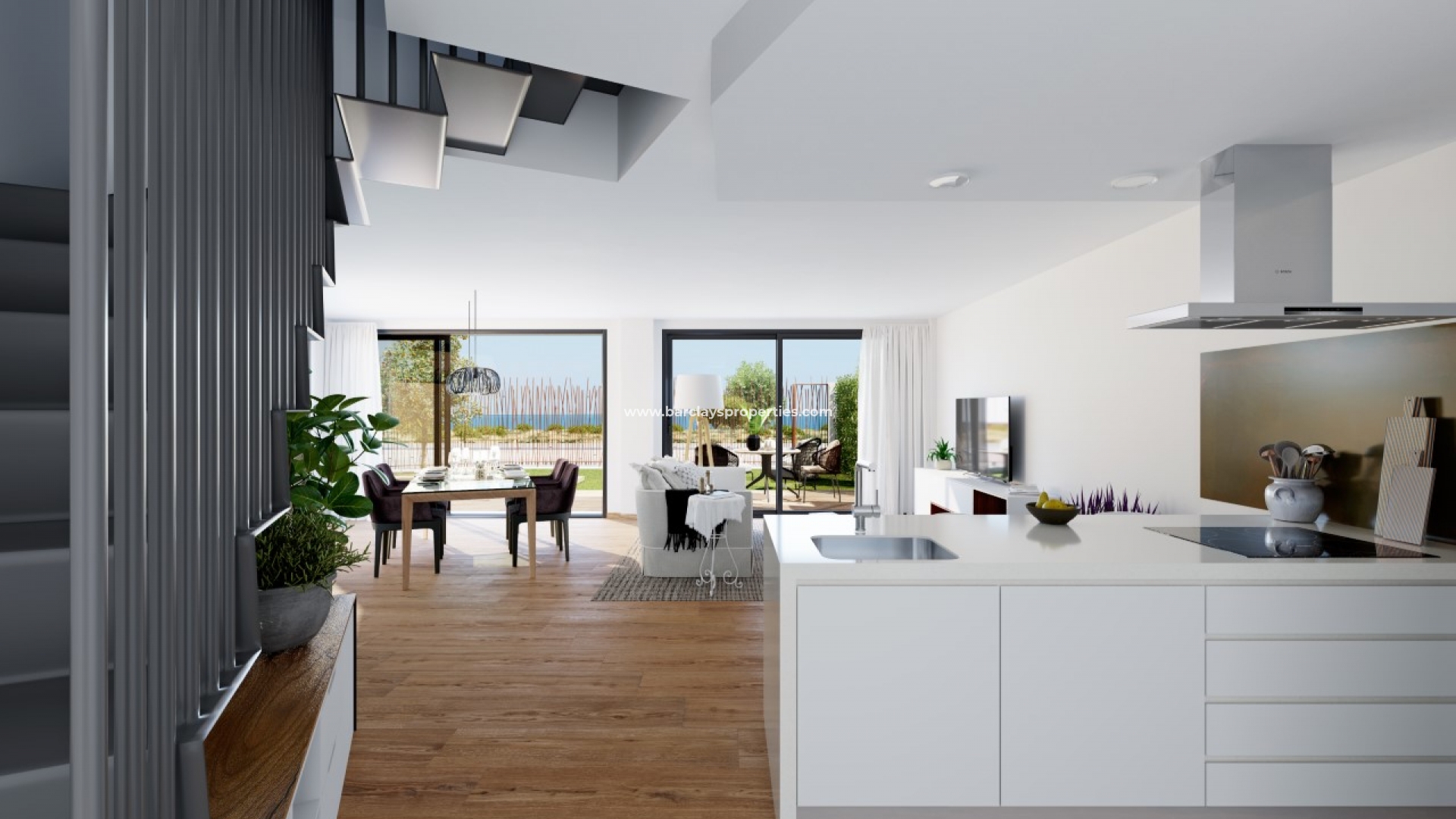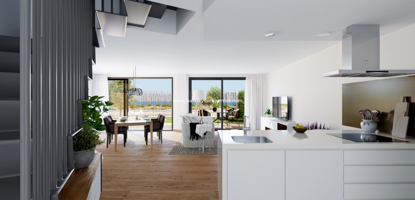 Een begane grond appartement bestaande uit 3 slaapkamers en 3 badkamers, een open terras van 40m2 plus een verdere 54m2 tuin met uitzicht op de prachtige stranden. Het appartement wordt geleverd met twee ondergrondse parkeerplaatsen en een berging.