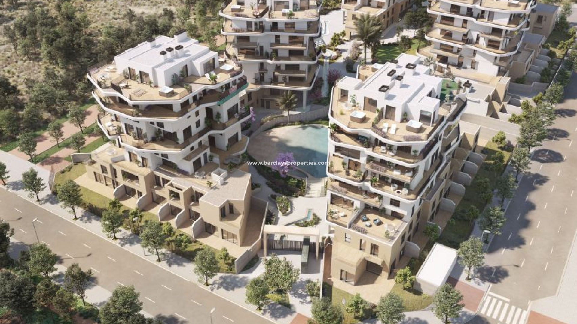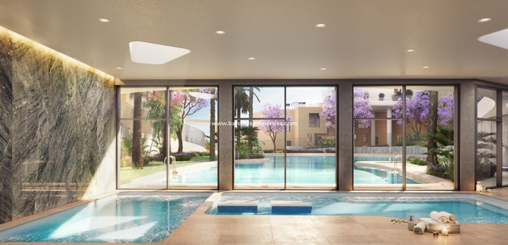 Gelegen in een privé gemeenschap met beveiligingscamera's, met veel groene ruimtes versierd met typische mediterrane planten, 3 zwembaden, spa met nog een overdekt verwarmd zwembad, Turks bad, sauna en jacuzzi, fitness buitenruimte, en een kinderruimte met parkeerplaats voor fietsers. Alle woningen zijn voorzien van een ondergrondse parkeerplaats en berging.