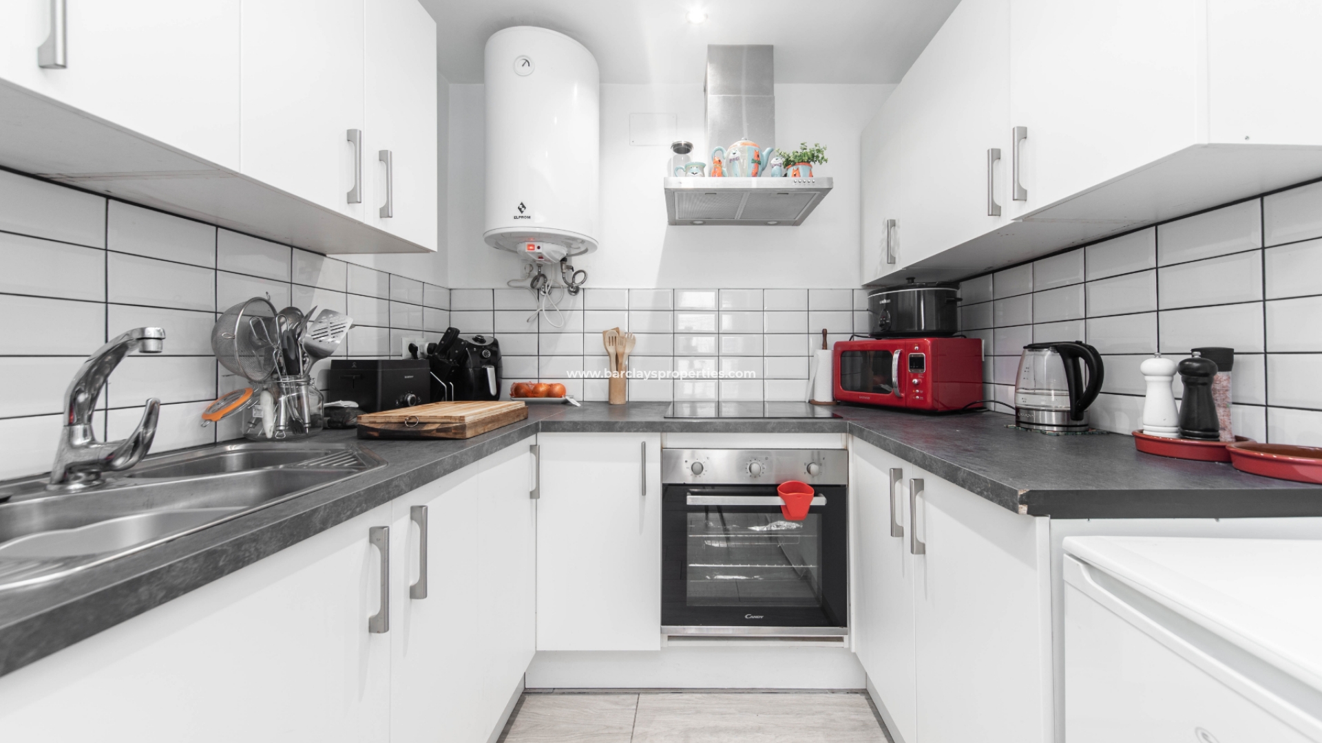 Deze prachtige uitgebreide woning is gelegen in de populaire urbanisatie La Marina, provincie Alicante. Dit middelgrote rijtjeshuis, een model "Josefina" dat is uitgebreid en gerenoveerd om het perfecte familiehuis of vakantiehuis te maken.