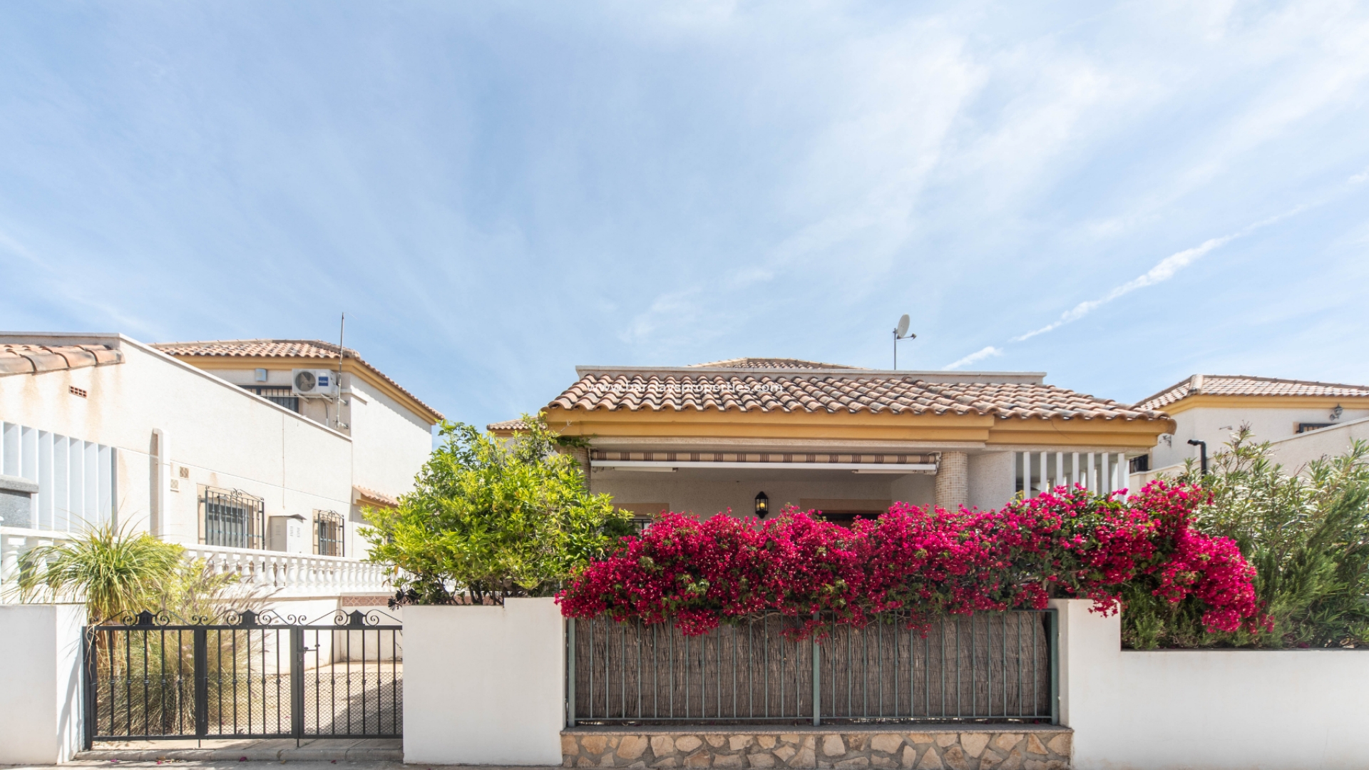 Introductie van deze naar het westen gerichte vrijstaande woning, een model "Sierra Villas" die is gelegen in een privé-gemeenschap met toegang tot een goed onderhouden, aantrekkelijk gemeenschappelijk zwembad en tuinen in de urbanisatie La Marina, San Fulgencio.
