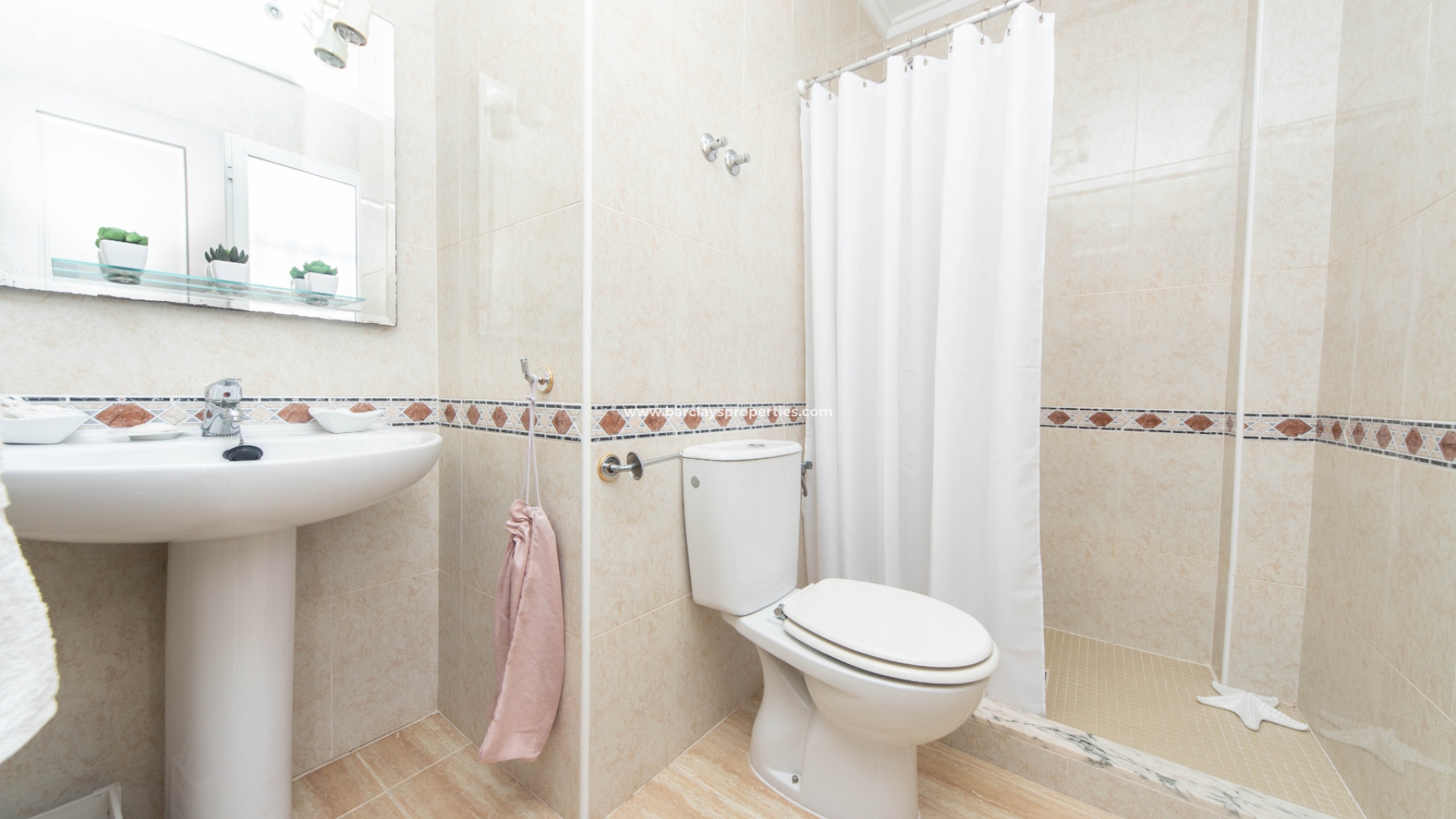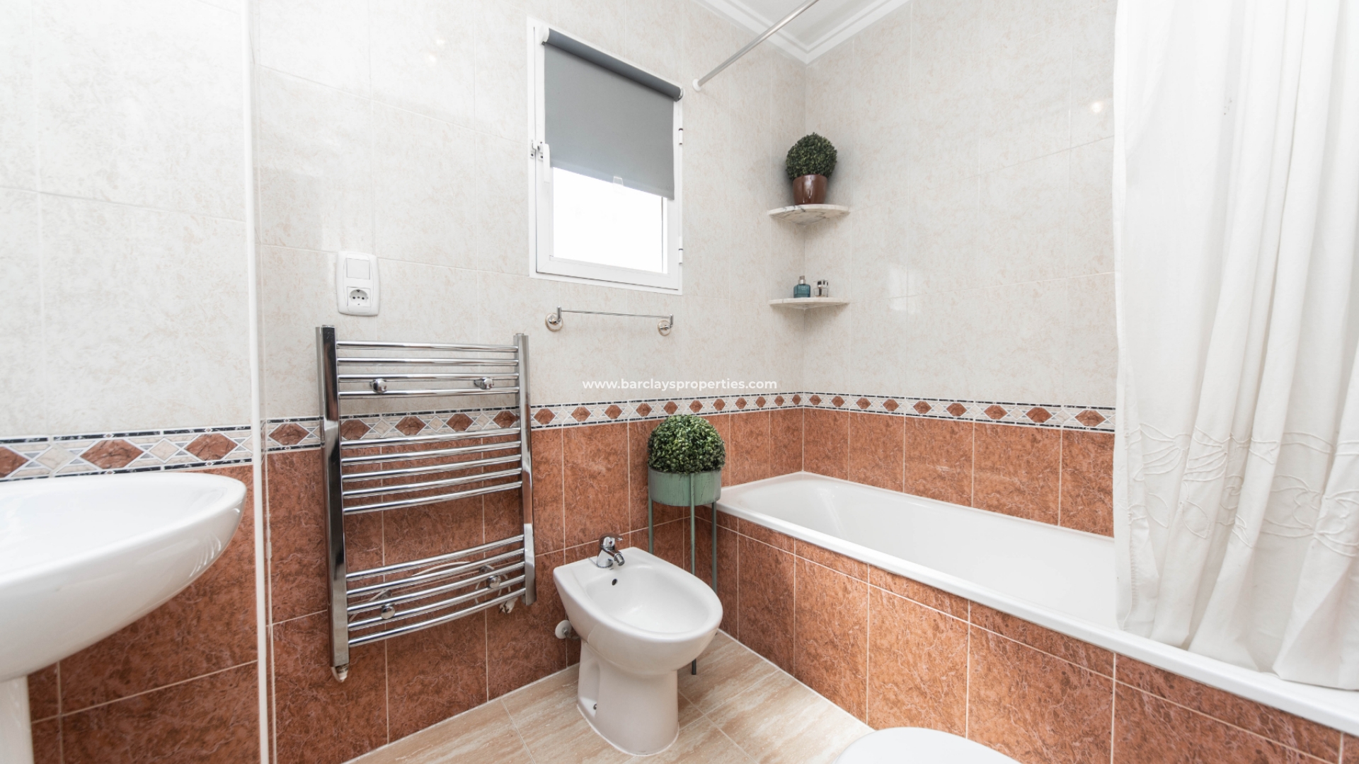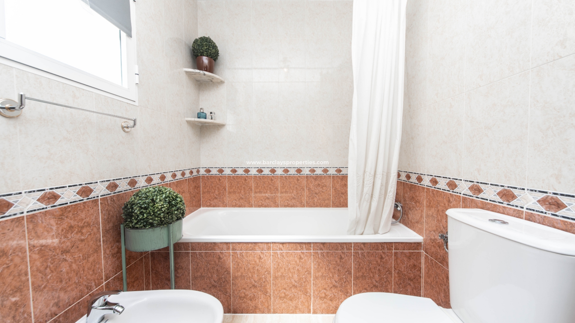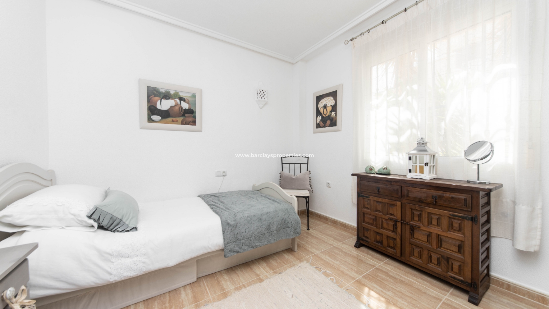 De toegang tot de mooie tuin is via de oprijpoort, waar we een volledig verhard perceel vinden met parkeergelegenheid. De overdekte voorporch met buitenzitje leidt naar het interieur van het pand waar we worden verwelkomd door de lichte en luchtige woon / eetkamer met airconditioning en een onafhankelijke volledig ingerichte keuken met elektrische apparaten die leidt naar een bijkeuken. Vanuit de hal vinden we twee slaapkamers met inbouwkasten en een ruime badkamer uitgerust met een ligbad, bidet, wc, wastafel, elektrisch verwarmd handdoekenrek en deurverwarming.
