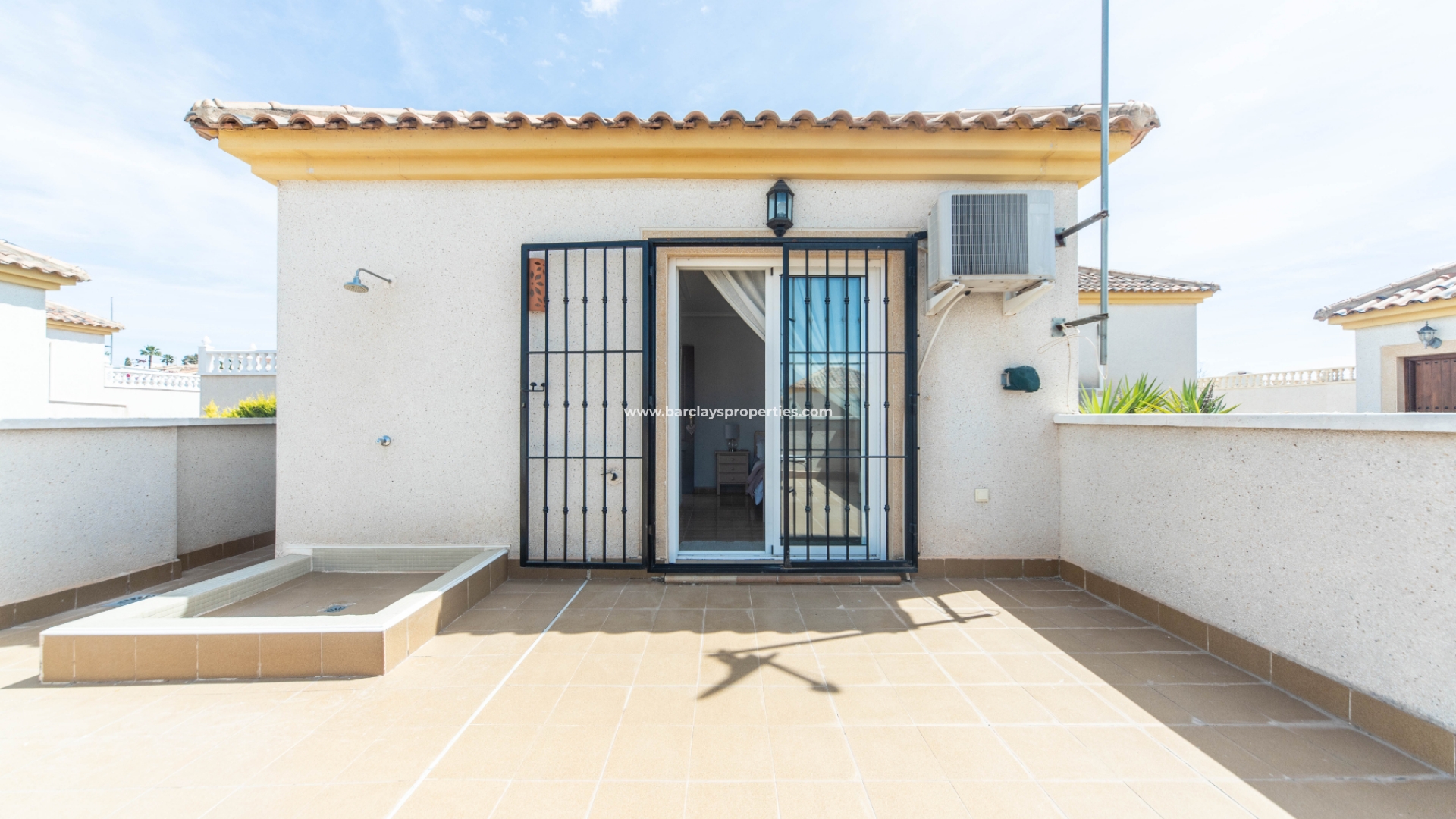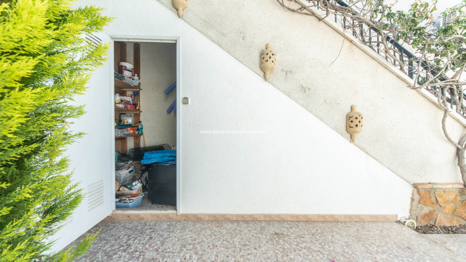 Daarnaast is er een apart gastenverblijf met een tweepersoons slaapkamer met inbouwkasten en airconditioning, een en-suite badkamer met douche van muur tot muur, wc en wastafel en toegang via openslaande deuren naar het ruime solarium met zithoek en prachtig uitzicht op de bergen en de stad Callosa del Segura. Dit is een fantastische locatie om te genieten van de mooiste zonsondergangen die we hier aan de Costa Blanca kennen! Vanuit het solarium heeft men toegang tot de voordeur van het gastenverblijf en de buitentrap terug naar de tuin. Er is een zeer handige berging onder de buitentrap.