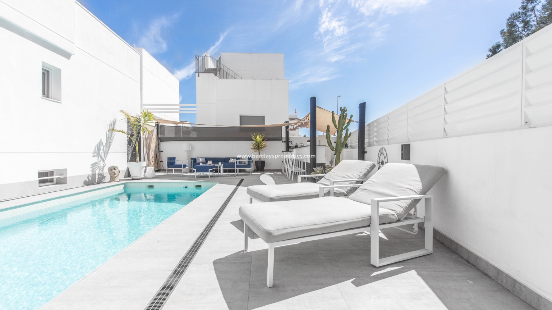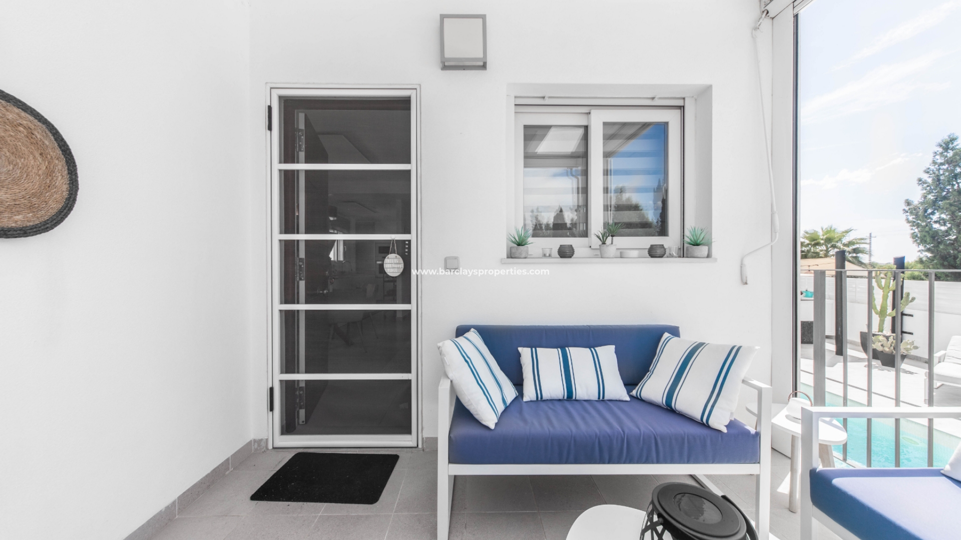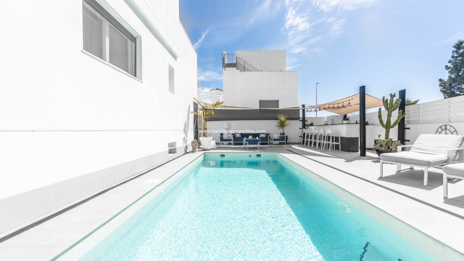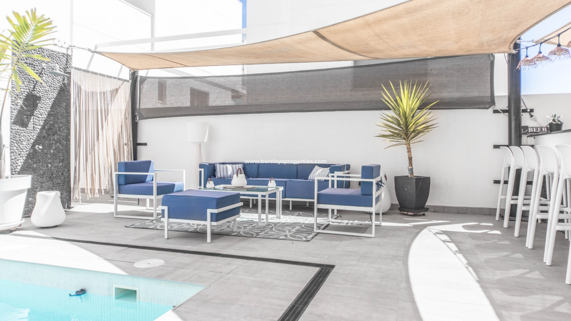 Te koop in urbanisatie La Marina, San Fulgencio is deze fantastische nieuwbouw luxe vrijstaande villa met een verwarmd privé zwembad van 7 x 3 en toegang tot een gemeenschappelijk zwembad. De woning is gelegen in een gemeenschap van 21 woningen op slechts 10 minuten lopen van alle voorzieningen.