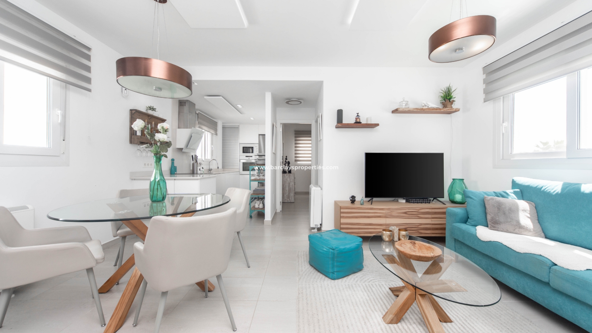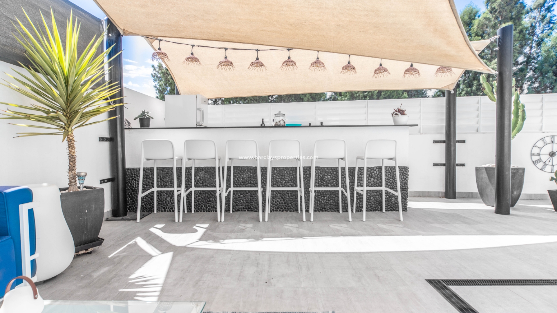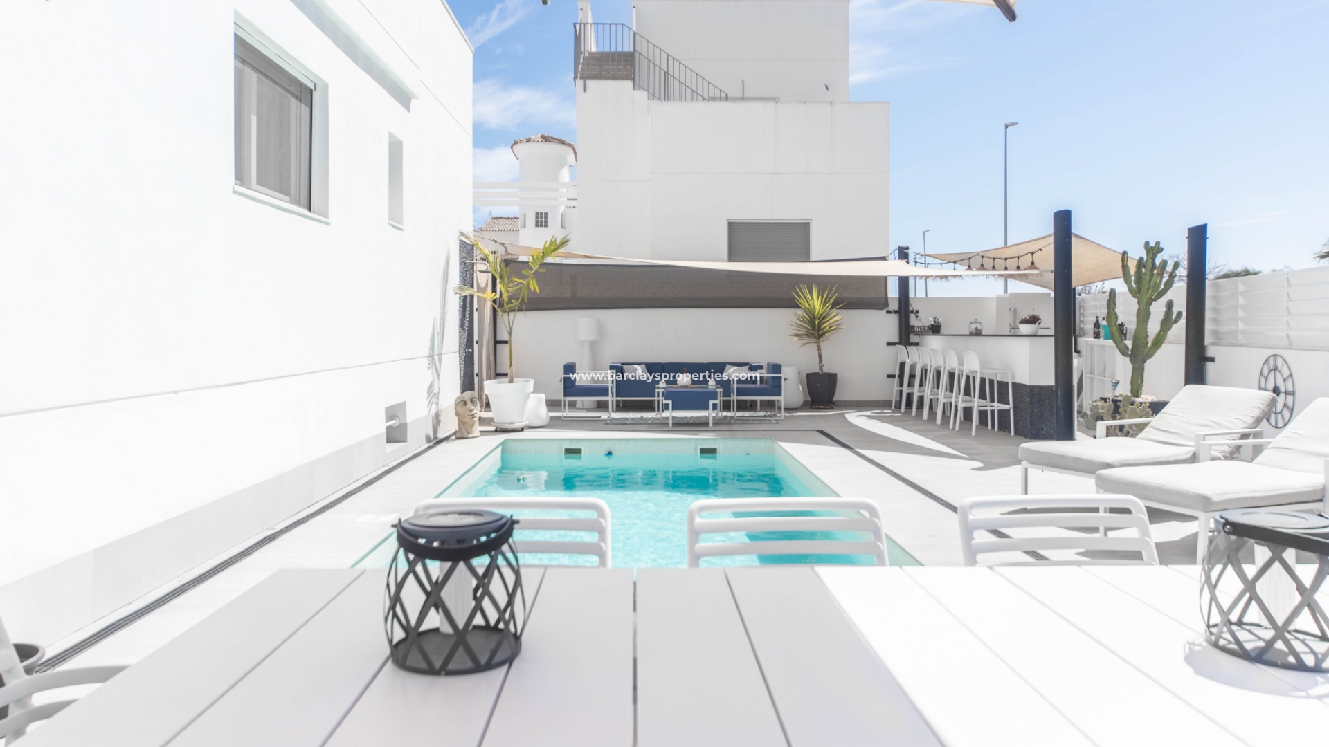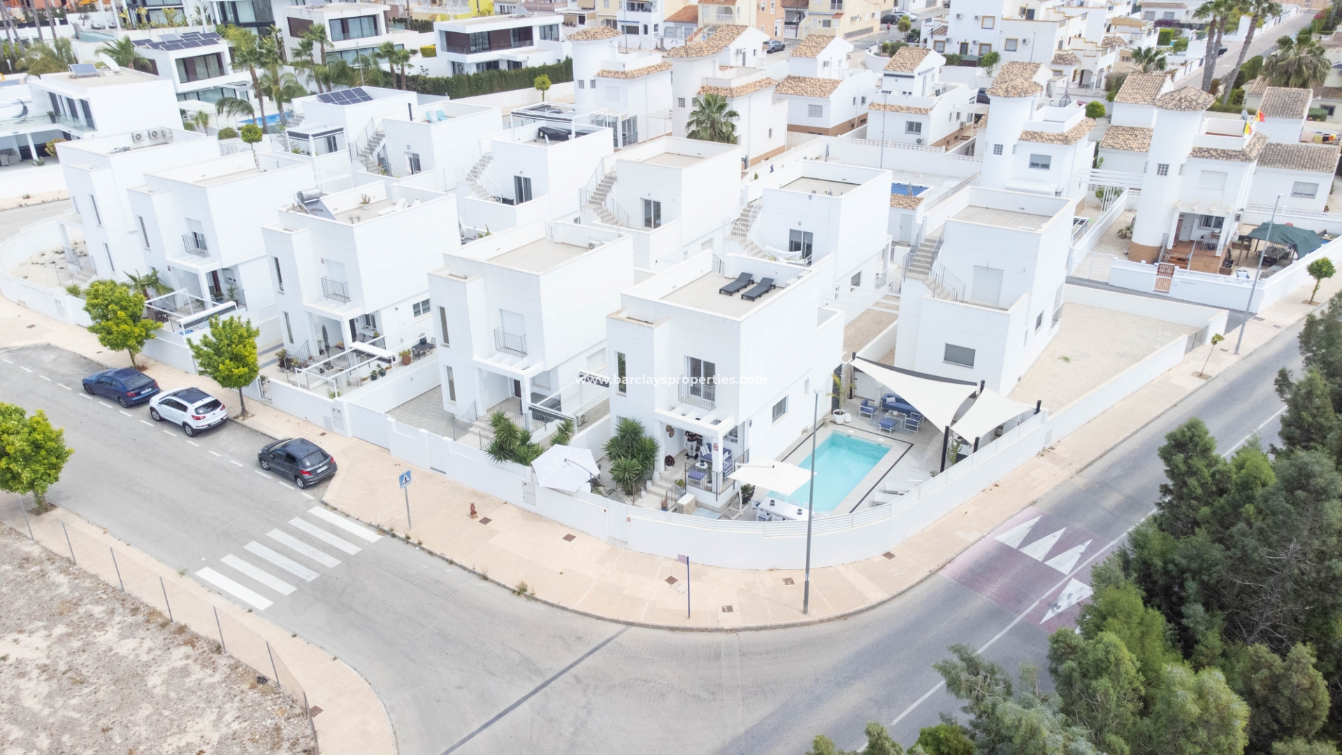 Te koop in urbanisatie La Marina, San Fulgencio is deze fantastische nieuwbouw luxe vrijstaande villa met een verwarmd privé zwembad van 7 x 3 en toegang tot een gemeenschappelijk zwembad. De woning is gelegen in een gemeenschap van 21 woningen op slechts 10 minuten lopen van alle voorzieningen.