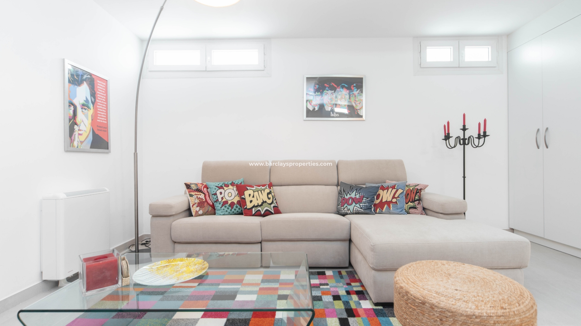 Bovendien heeft deze op het westen gelegen villa een grote onderbouw waar zich een woonruimte bevindt die gemakkelijk kan worden gebruikt als vierde slaapkamer voor gasten en een moderne badkamer met douche van muur tot muur.