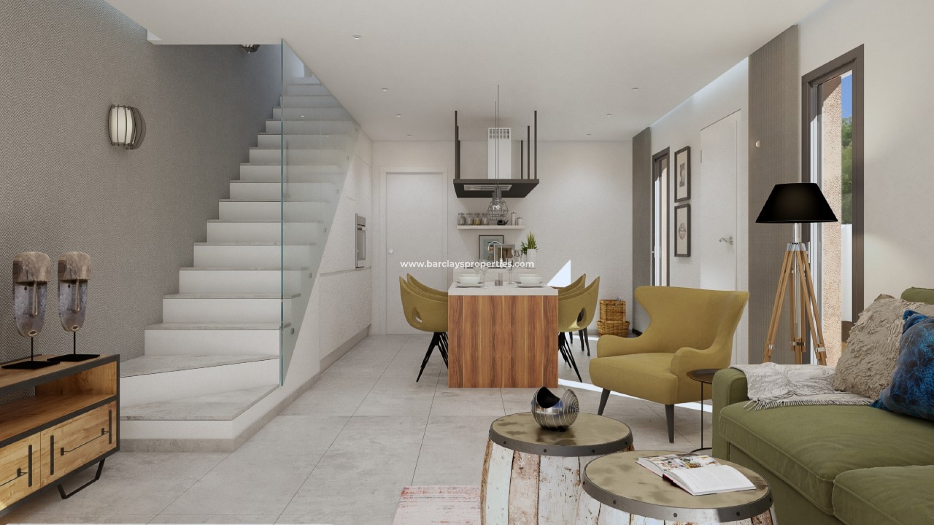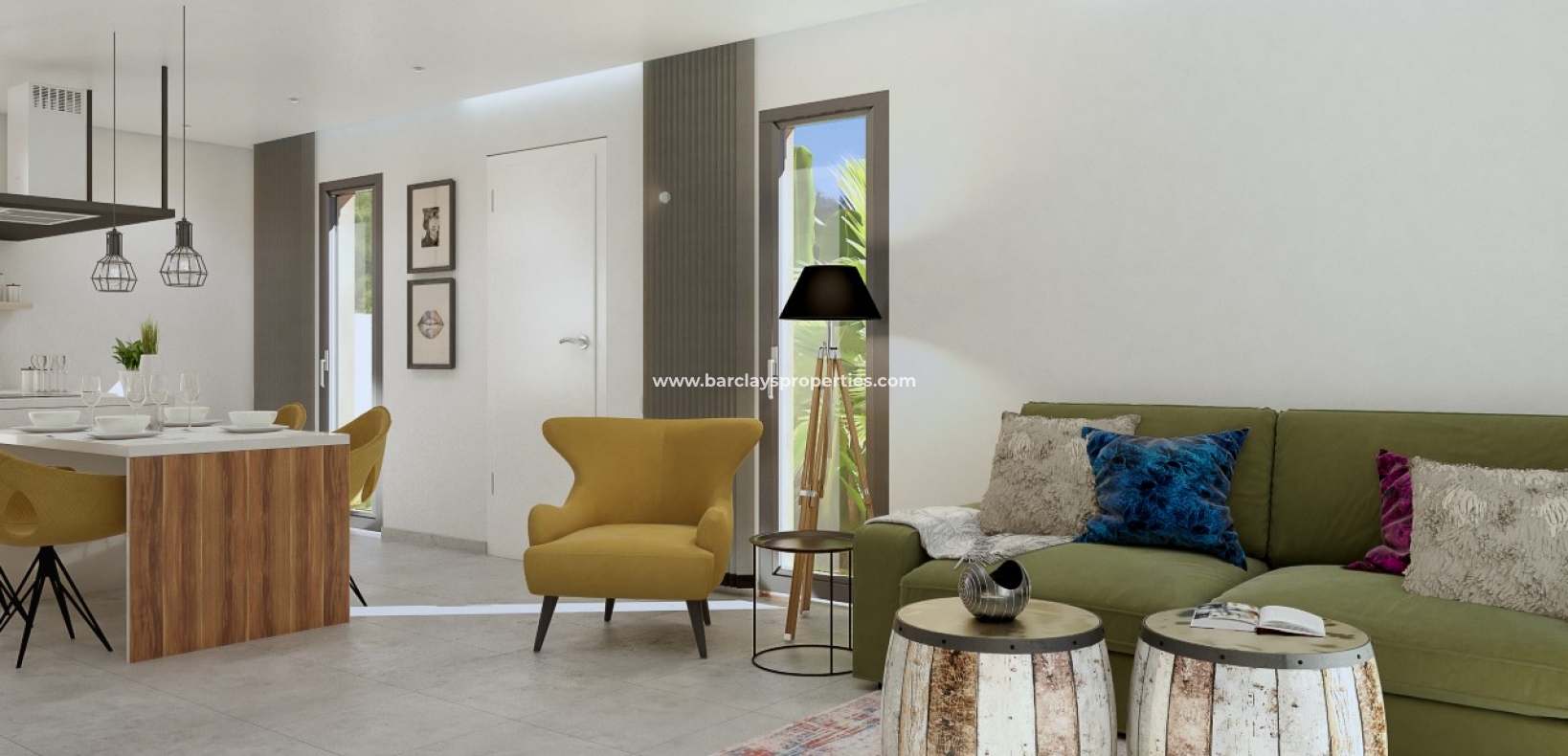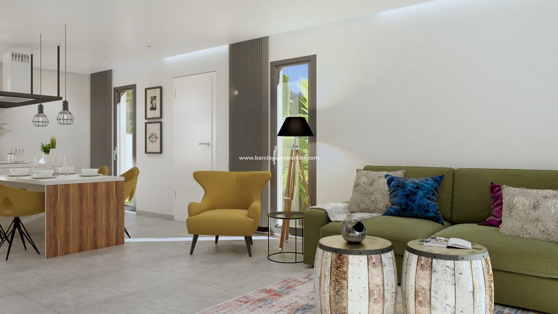 Deze moderne villa's zijn slechts een korte wandeling naar het centrum van Daya Nueva. De tuin is bestraat en voorzien van grind en heeft een zwembad met waterval. Het terras aan de voorzijde heeft ook een prachtig uitzicht op het zwembad.