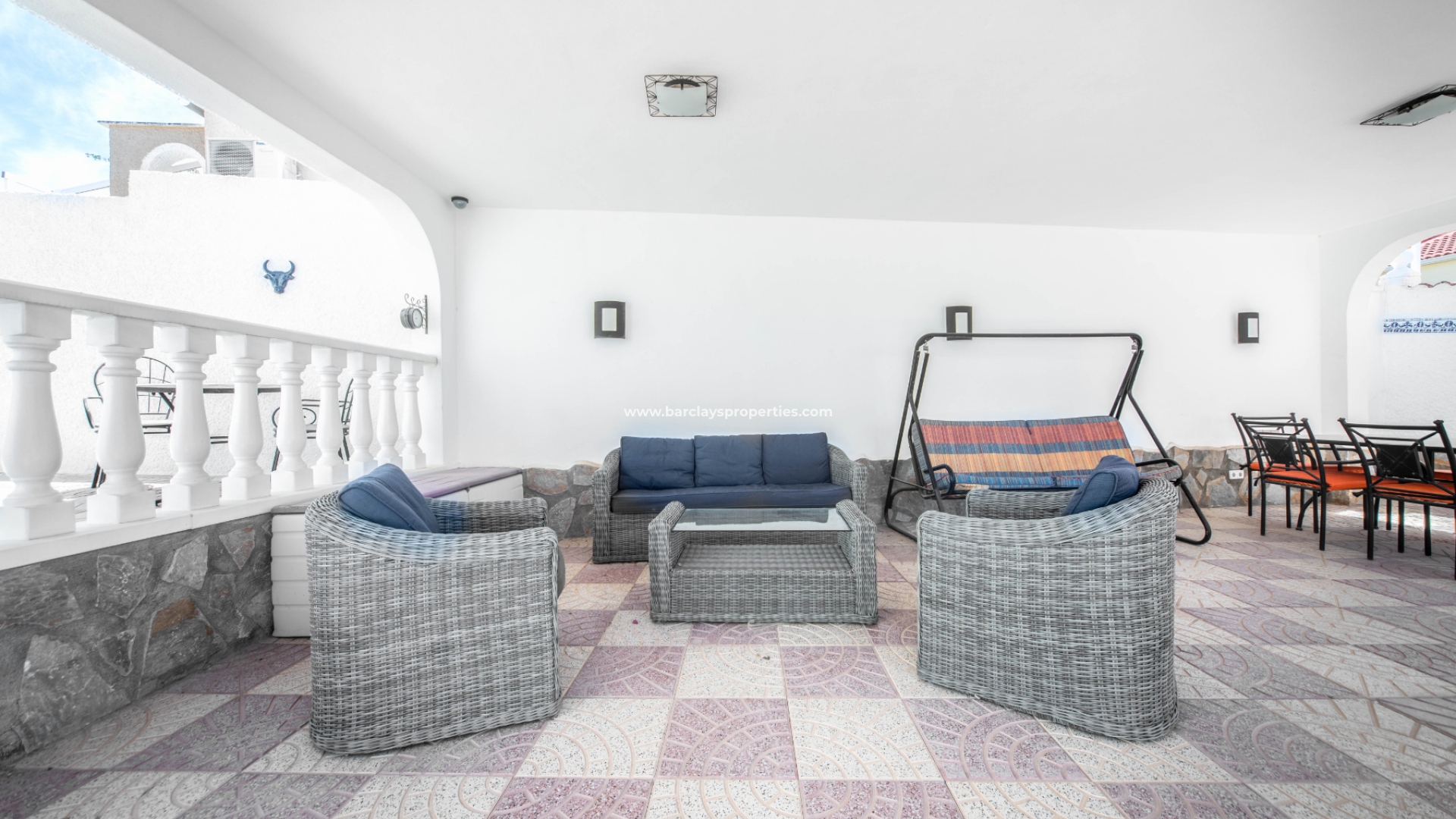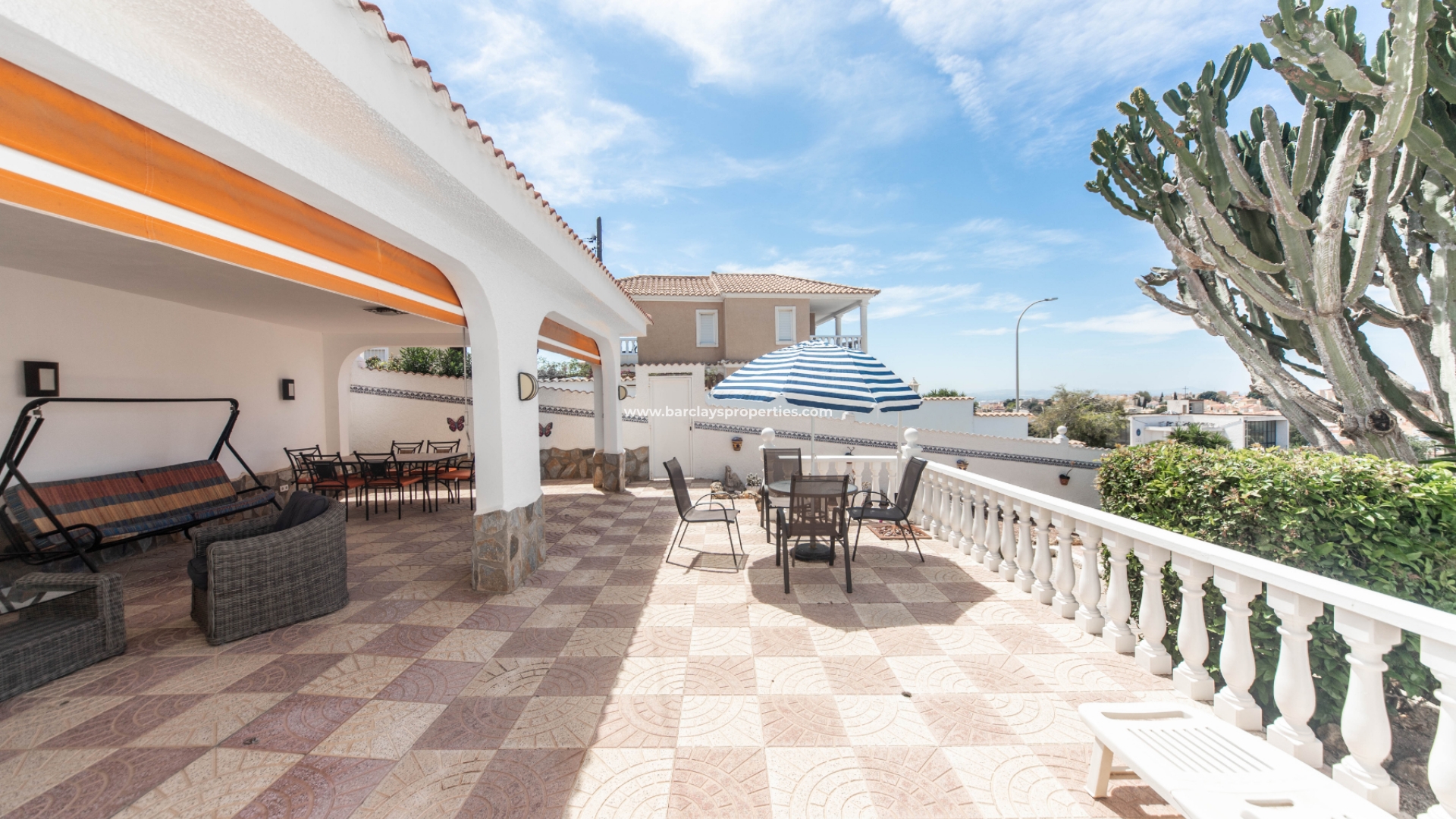 Gelegen in een groot hoekperceel van 392m2 in een centrale maar rustige omgeving van de populaire urbanisatie La Marina, provincie Alicante is deze grote familie villa, een uitgebreid model "Lola". De woning ligt in de nabijheid van voorzieningen zoals supermarkten, banken, een verscheidenheid aan winkels en een goede selectie van bars en restaurants. Bovendien ligt de populaire wekelijkse donderdagmarkt op slechts een paar minuten lopen.
