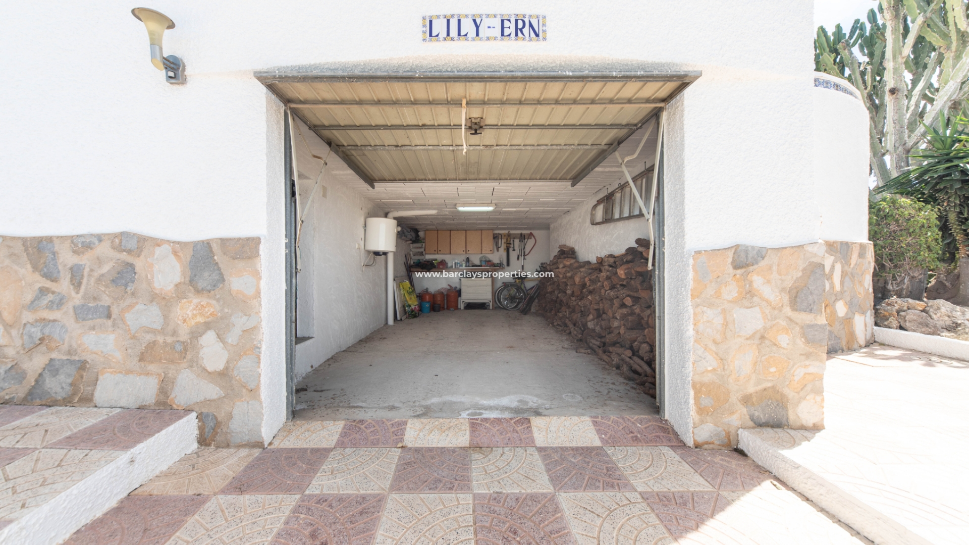 De toegang tot de tuin is via een voetgangerspoort aan de zijkant van het pand of via de schuifpoorten aan de voorkant van het pand die leiden naar een grote privégarage. Een ruime berging is toegankelijk vanuit de garage.