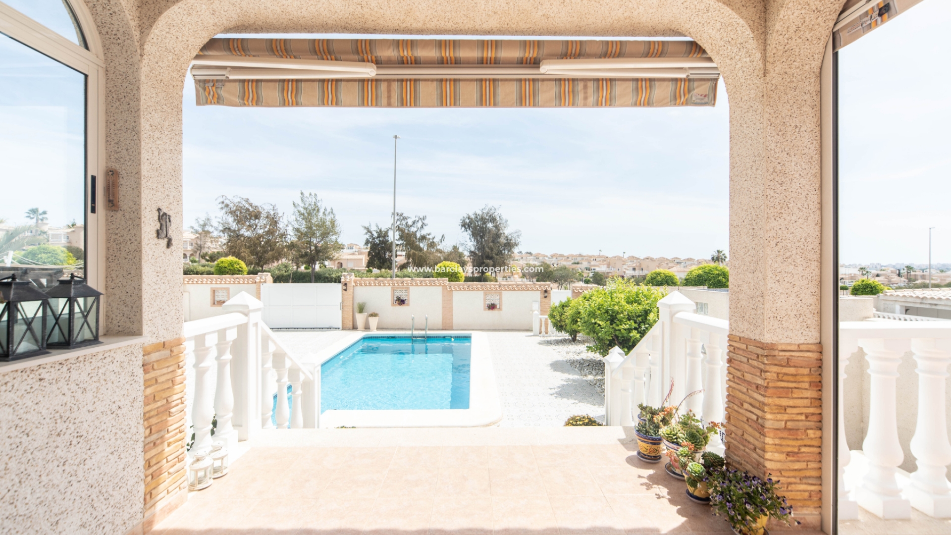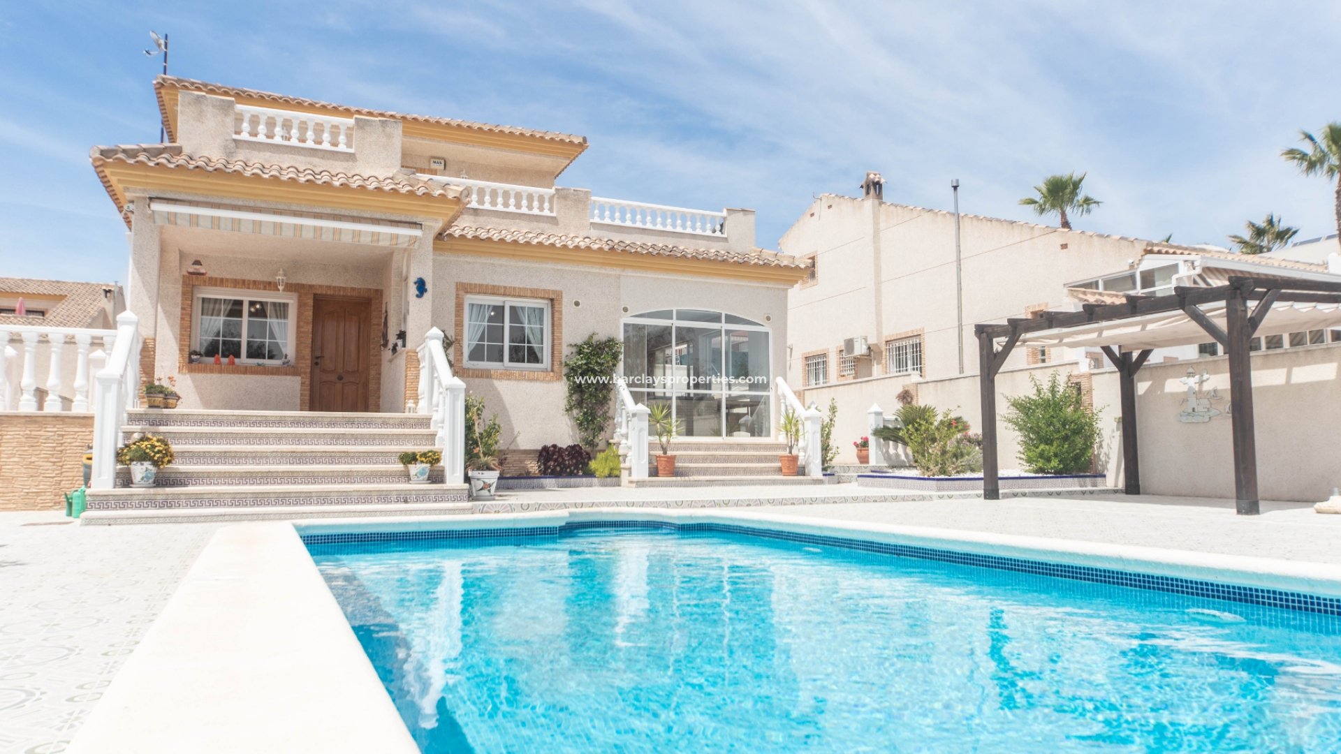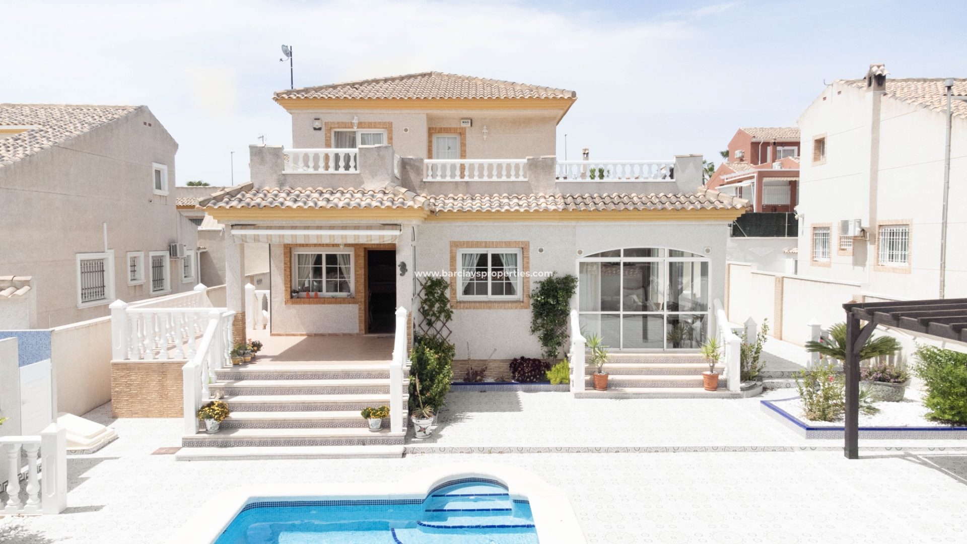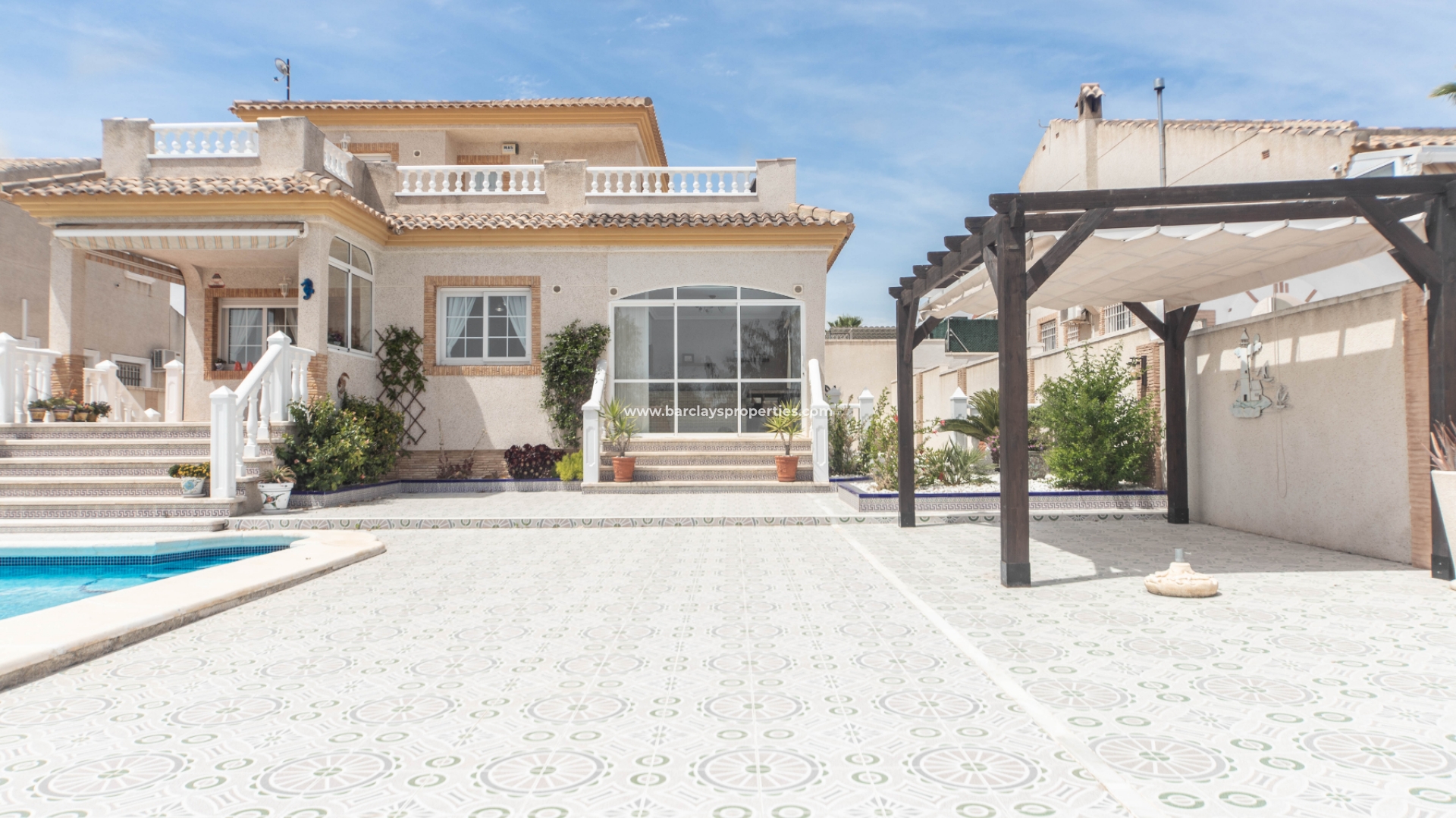 Met trots introduceren wij deze prachtige vrijstaande villa op een toplocatie in de urbanisatie La Marina. Met uitzicht op een mooi park ligt deze villa op slechts vijf minuten lopen van het populaire Consum Square commerciële gebied en een paar minuten van het lokale sportveld met padel- en tennisbanen en twee voetbalvelden.