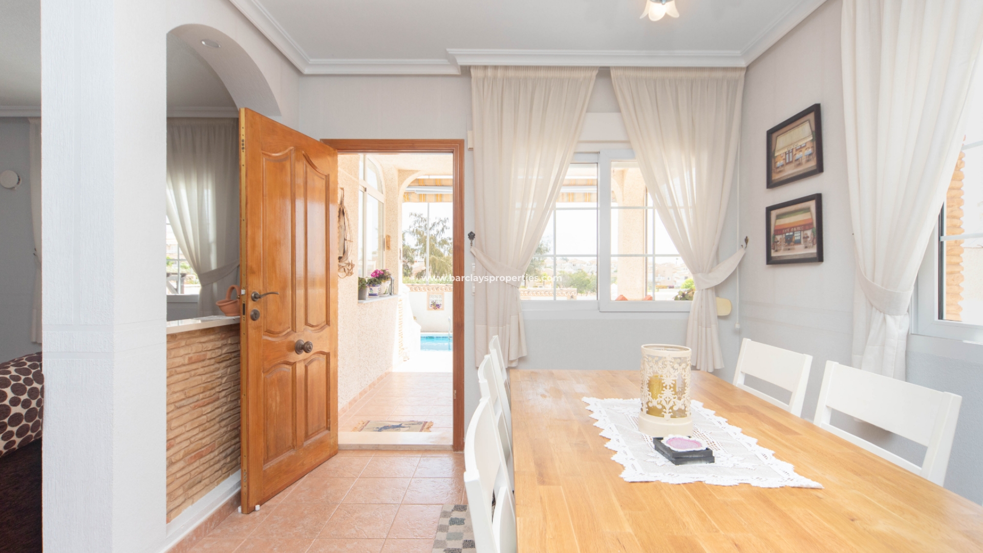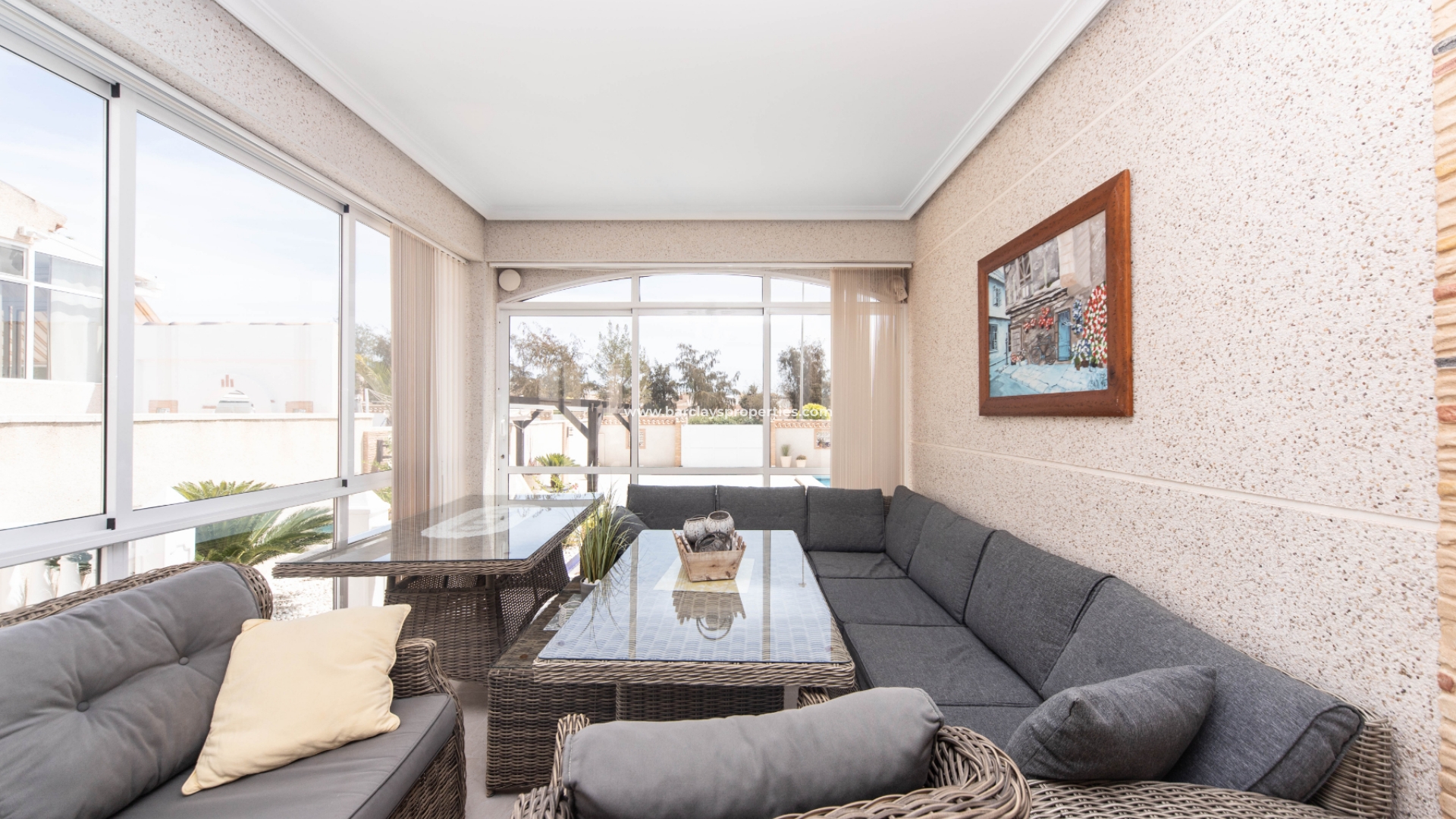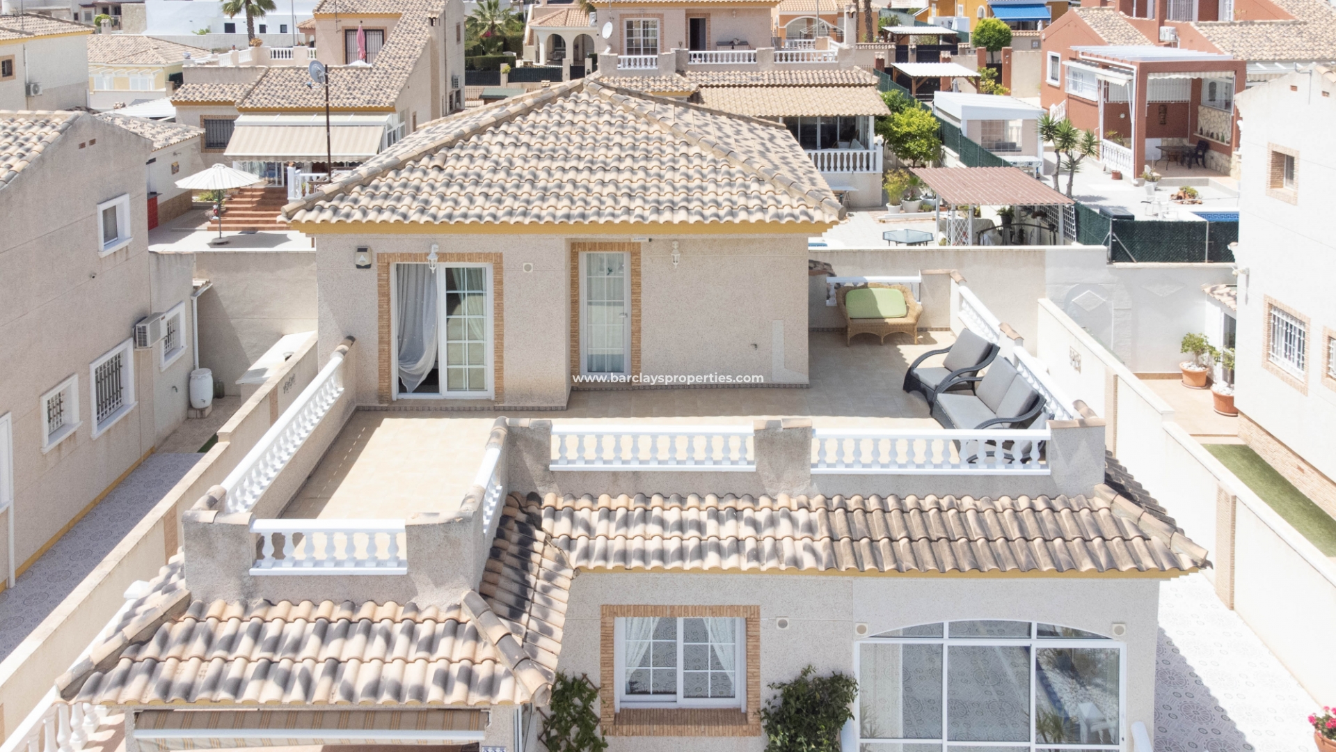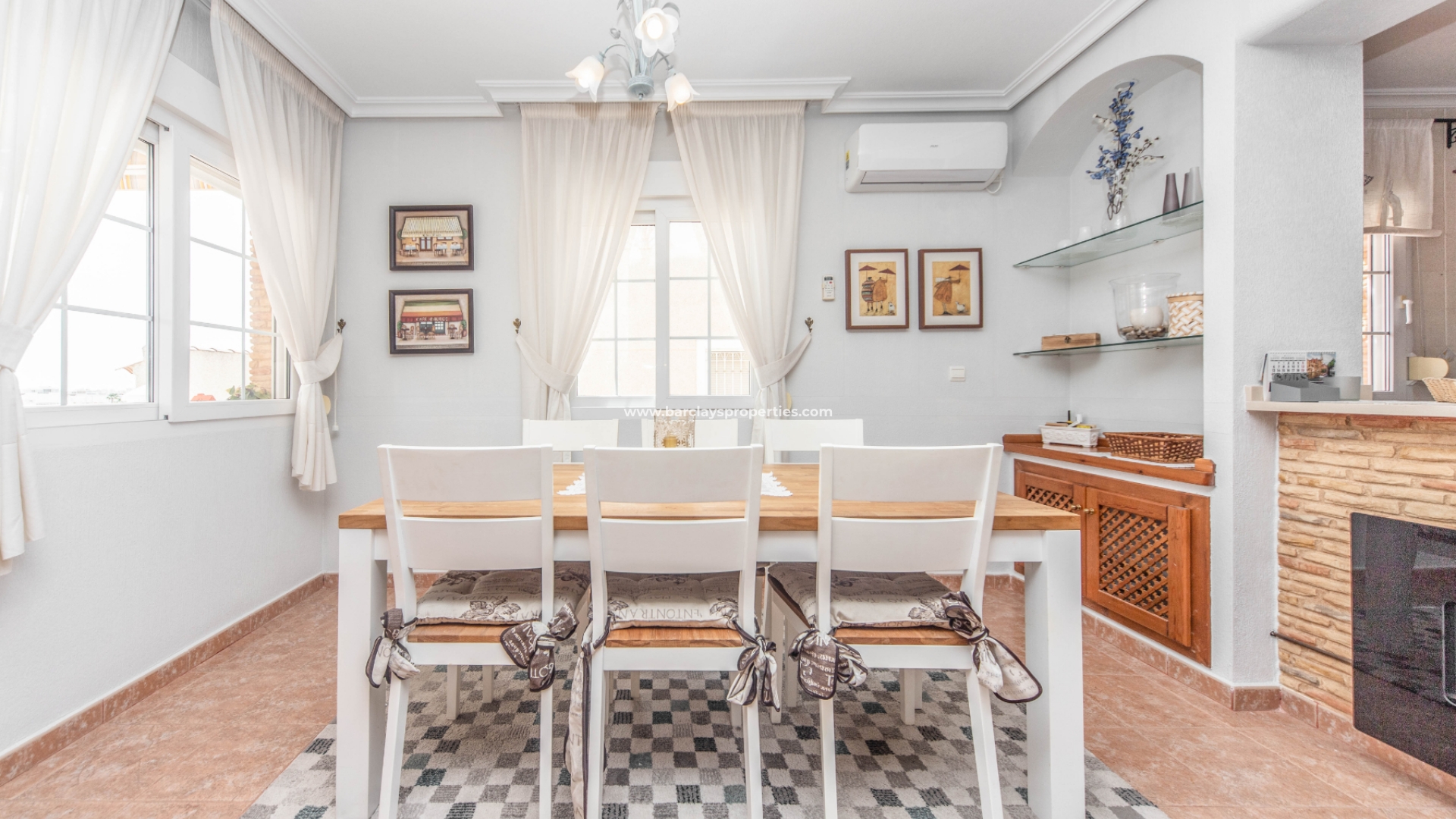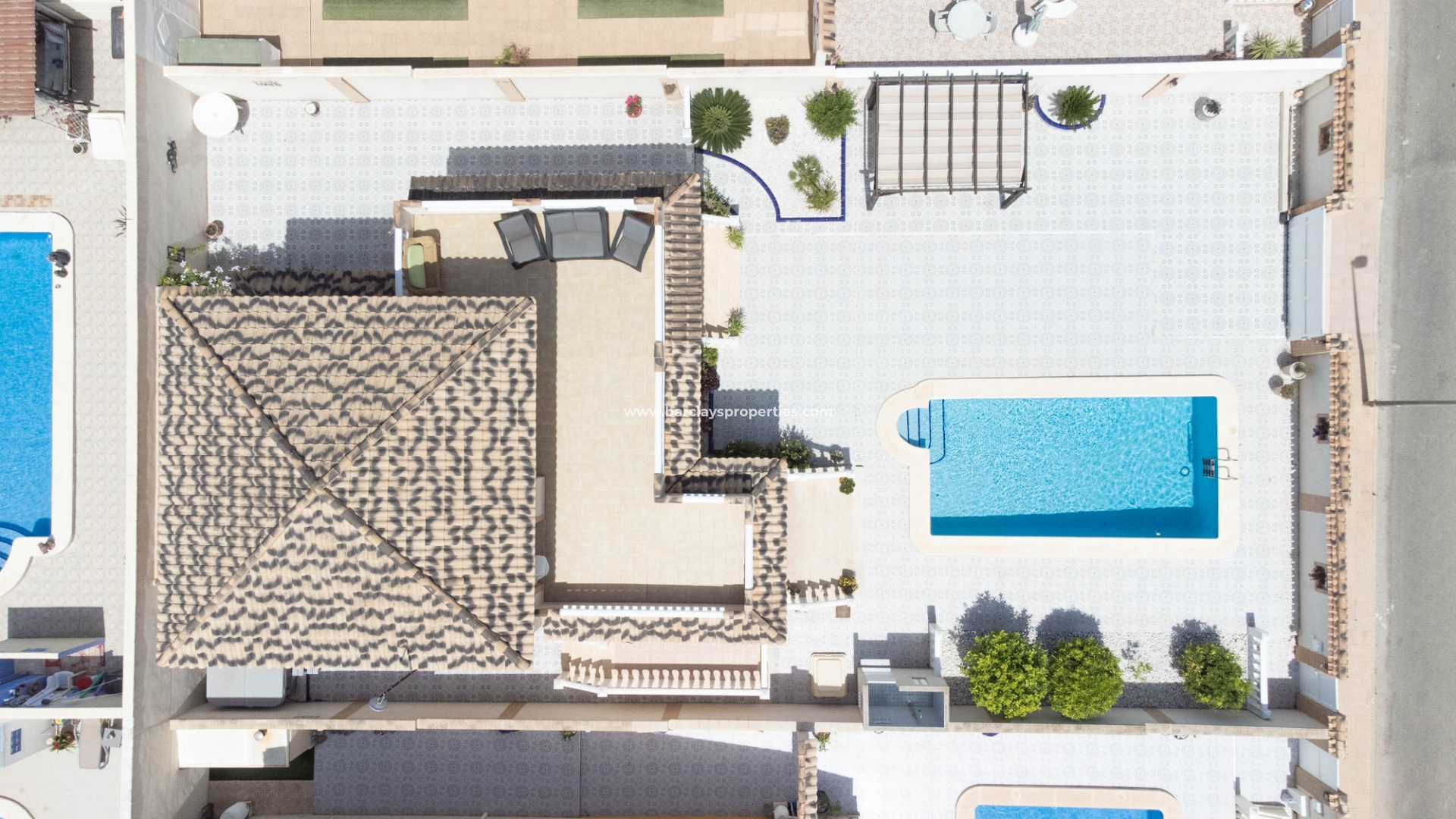 Met trots introduceren wij deze prachtige vrijstaande villa op een toplocatie in de urbanisatie La Marina. Met uitzicht op een mooi park ligt deze villa op slechts vijf minuten lopen van het populaire Consum Square commerciële gebied en een paar minuten van het lokale sportveld met padel- en tennisbanen en twee voetbalvelden.