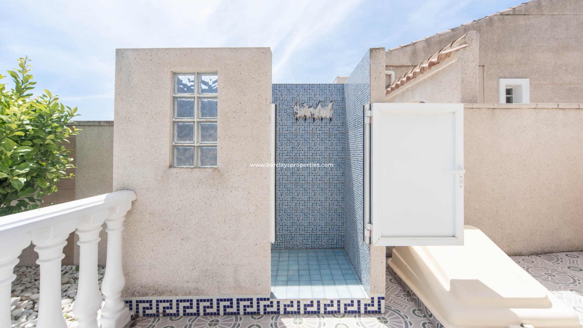 De elektrische oprijlaan en de voetgangerspoort geven toegang tot de tuin en tot deze prestigieuze villa. Het pand heeft hoge muren voor privacy, veel zitjes, mooie sinaasappel- en citroenbomen en een afgesloten buitendouche vlakbij het fantastische 8 x 4 privé zwembad.