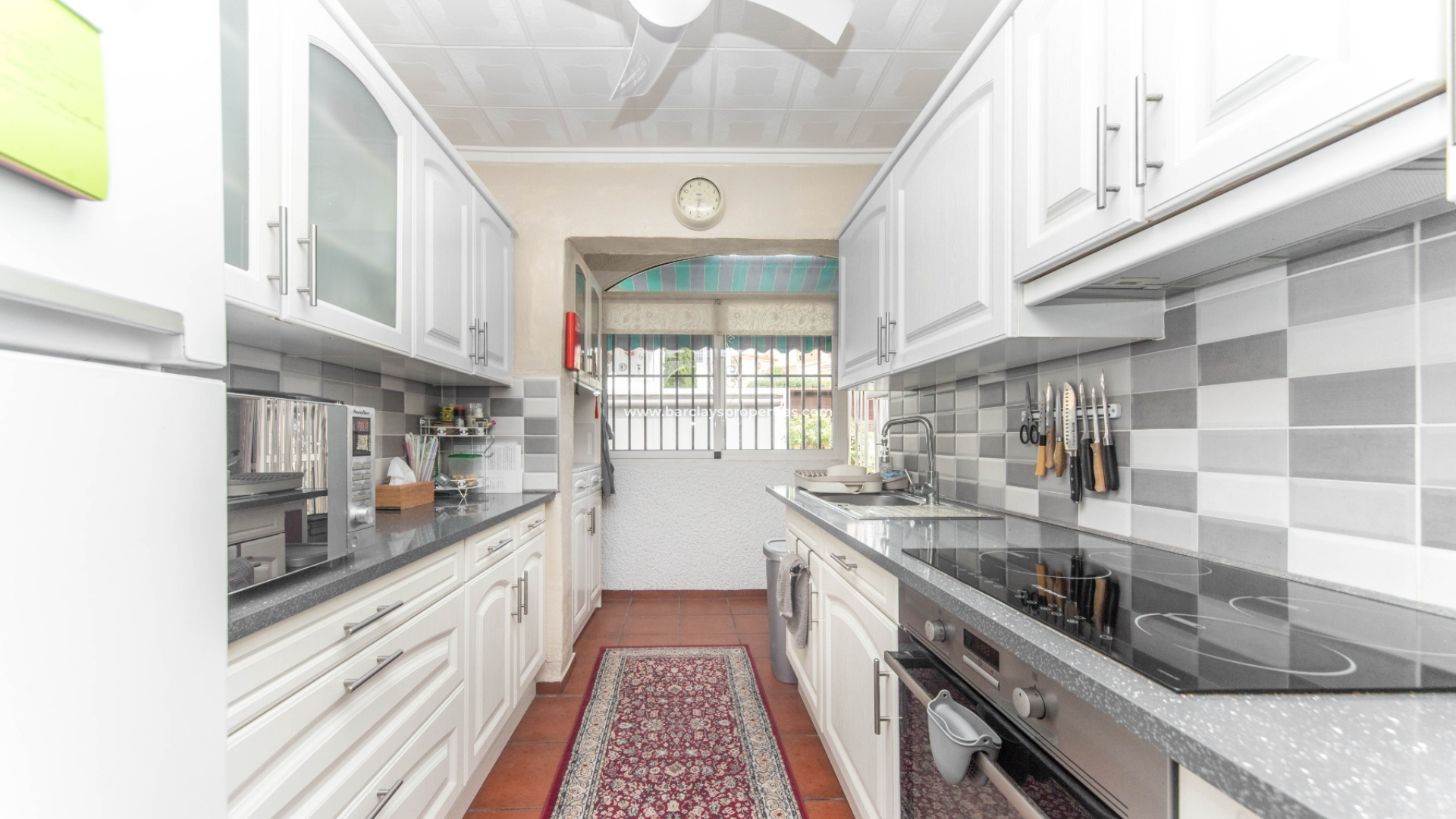 We betreden de onberispelijk gepresenteerde betegelde tuin om off road parking en toegang tot een privé garage te vinden. De ruime voortuin biedt ruimte voor een privé zwembad. Een trap leidt naar een verhoogd glazen voorportaal / winterkamer met zonnescherm dat uitkijkt over een mooi park. Het voorportaal leidt naar het interieur van het pand waar we worden verwelkomd door de lichte woonkamer met airconditioning en open haard die leidt naar een onlangs gerenoveerde ingerichte keuken met plafondventilator en elektrische apparaten. Aan de achterzijde van de keuken bevindt zich een open bijkeuken met toegangsdeur en een trap naar de achtertuin met zonnescherm en buitenzitje.
