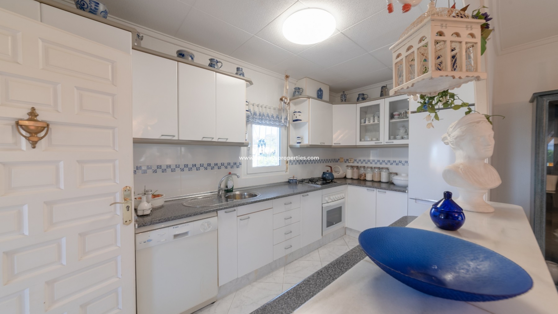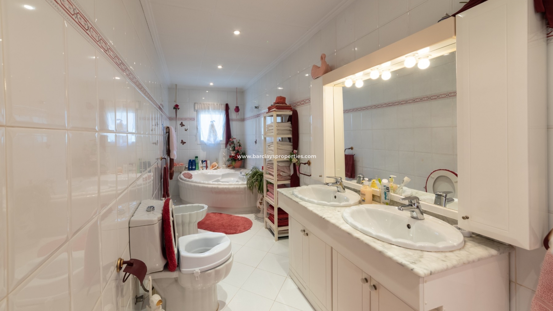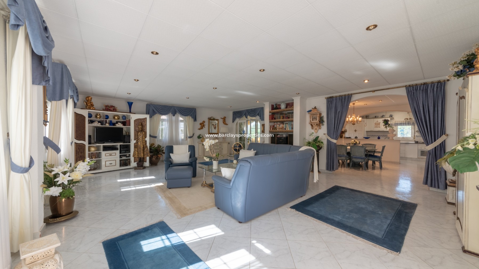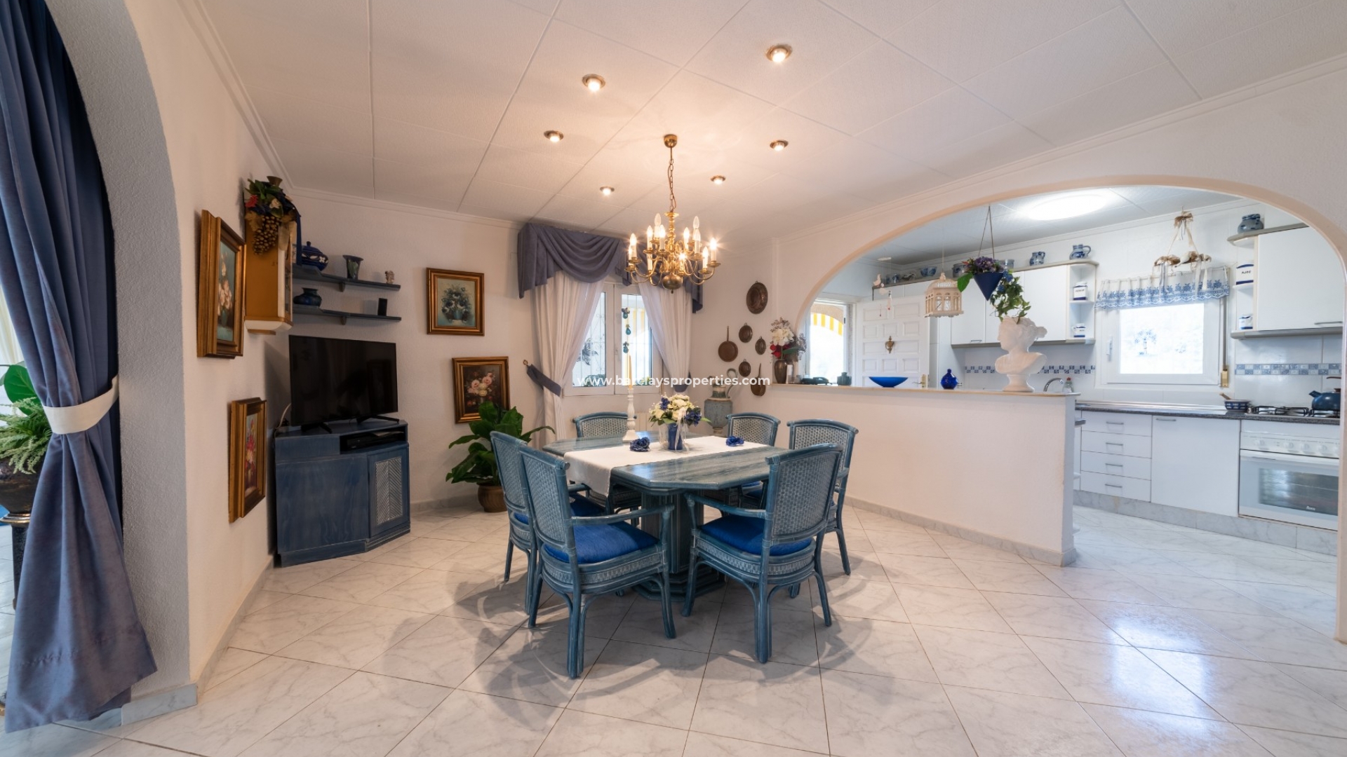 Deze prachtige woning heeft het allemaal! Het is gelegen op een toplocatie in de self-catering en multi-nationale urbanisatie van La Marina. Gelegen op een grote 800m2 hoekperceel, deze op het zuidwesten gelegen villa ligt naast twee parken en op slechts vijf minuten lopen van Consum Square waar u een grote supermarkt, diverse winkels en een scala aan bars en gemengde keuken restaurants, die live entertainment bieden tijdens de warmere maanden van het jaar te vinden. Vijf minuten in de tegenovergestelde richting brengt u naar een ander commercieel gebied, langs een groot sportcomplex met minigolf, een snookerhal en een waterpark voor kinderen op uw weg. Hier vindt u een apotheek, het gemeentehuis, een dokterspraktijk, banken, een supermarkt, samen met meer bars en restaurants. Er is ook een internationale supermarkt die zeven dagen per week open is, waar ze een verscheidenheid aan internationale producten en elke dag versgebakken brood aanbieden.
