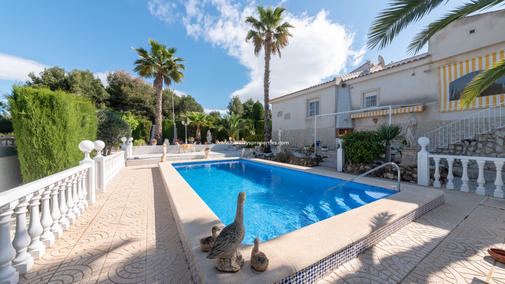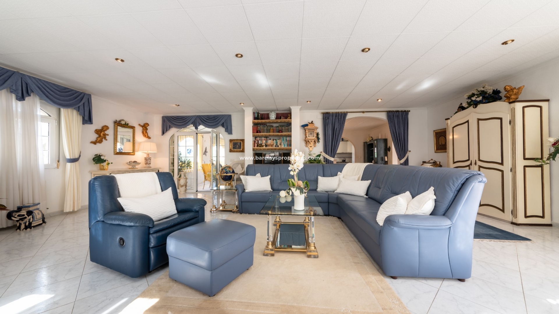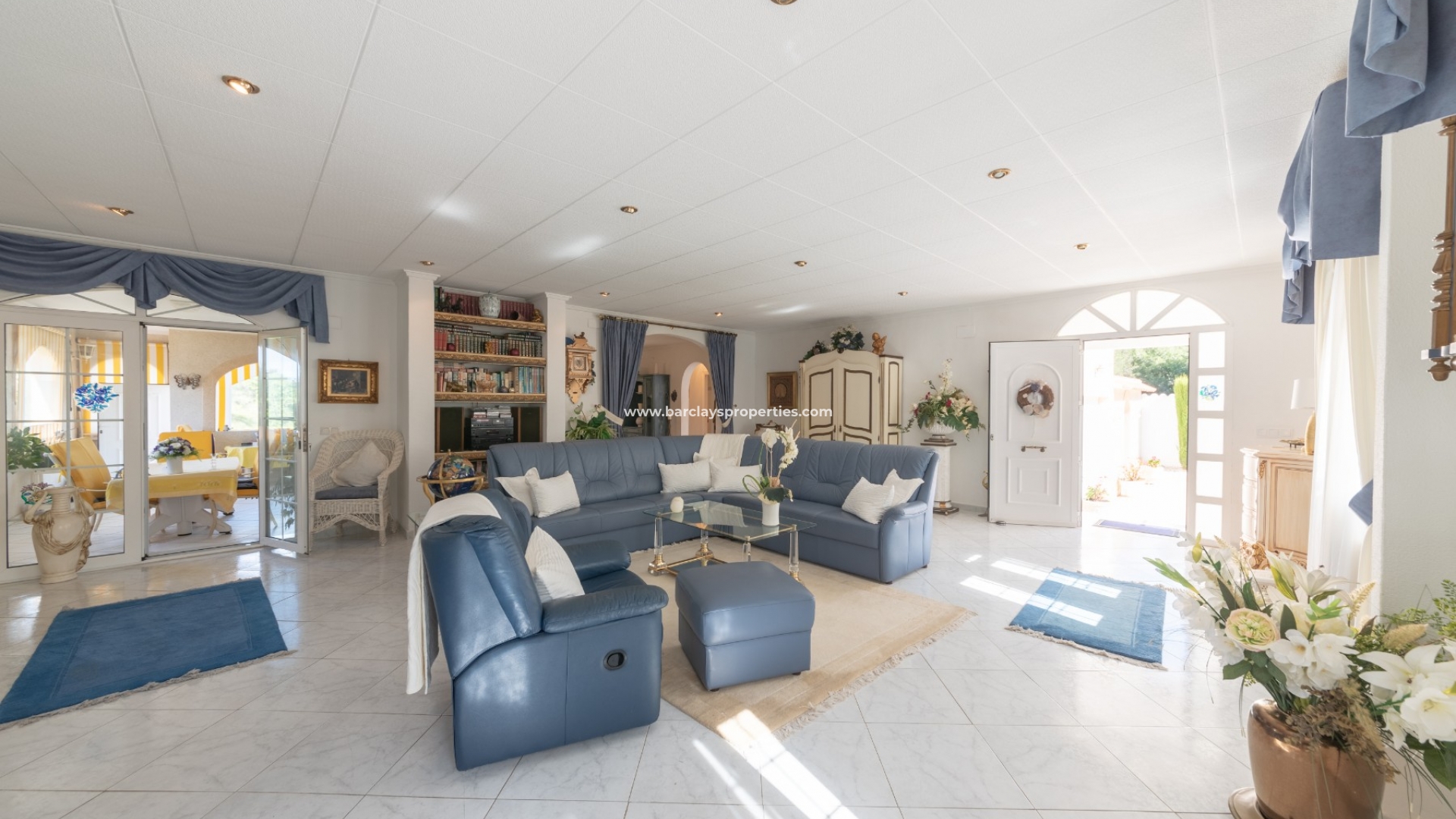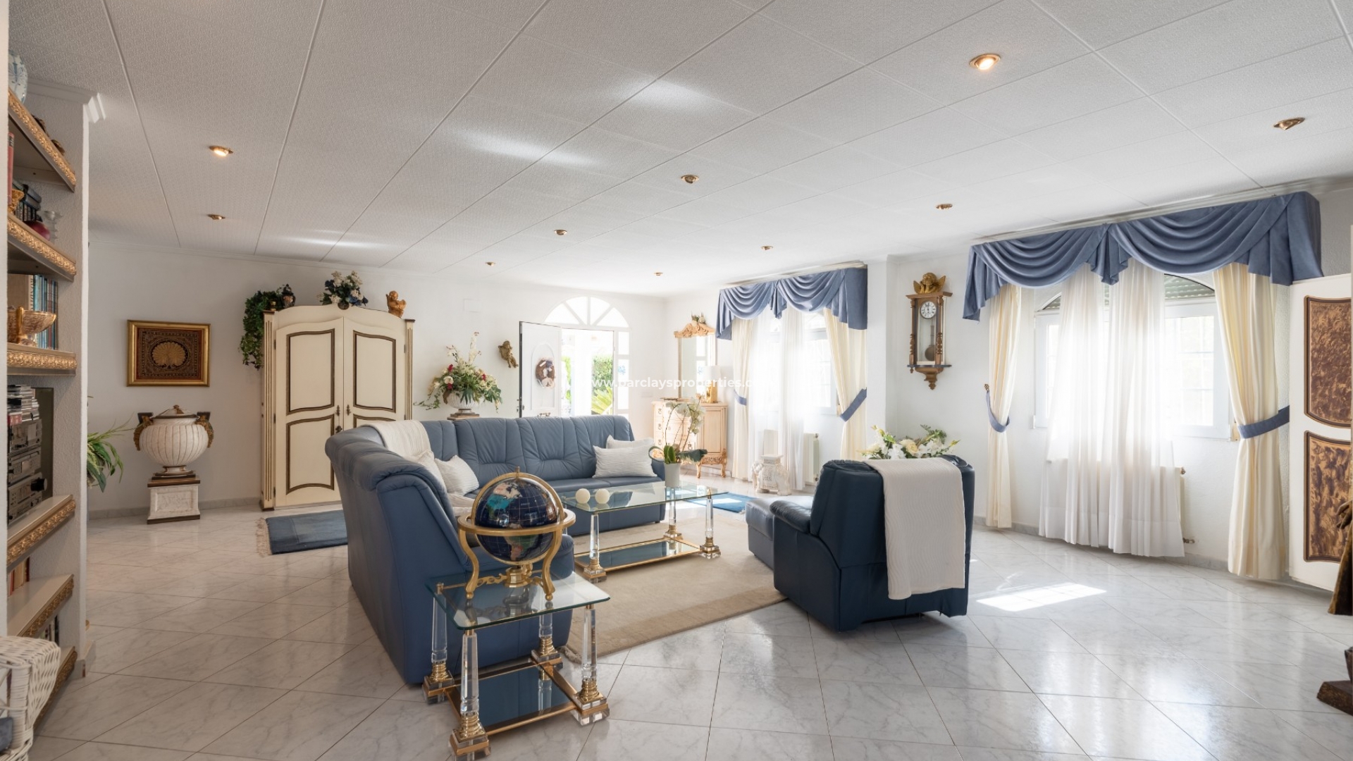 Deze prachtige woning heeft het allemaal! Het is gelegen op een toplocatie in de self-catering en multi-nationale urbanisatie van La Marina. Gelegen op een grote 800m2 hoekperceel, deze op het zuidwesten gelegen villa ligt naast twee parken en op slechts vijf minuten lopen van Consum Square waar u een grote supermarkt, diverse winkels en een scala aan bars en gemengde keuken restaurants, die live entertainment bieden tijdens de warmere maanden van het jaar te vinden. Vijf minuten in de tegenovergestelde richting brengt u naar een ander commercieel gebied, langs een groot sportcomplex met minigolf, een snookerhal en een waterpark voor kinderen op uw weg. Hier vindt u een apotheek, het gemeentehuis, een dokterspraktijk, banken, een supermarkt, samen met meer bars en restaurants. Er is ook een internationale supermarkt die zeven dagen per week open is, waar ze een verscheidenheid aan internationale producten en elke dag versgebakken brood aanbieden.