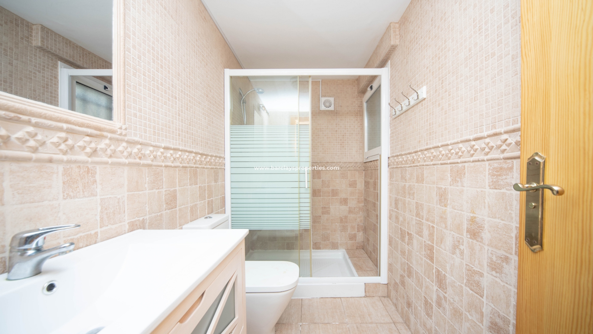 Terug naar het interieur van de woning en de overige kamers bestaan uit twee tweepersoons slaapkamers met inbouwkasten en een grote badkamer met douche van muur tot muur.