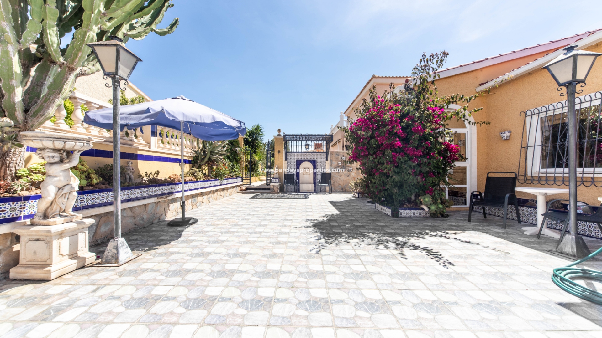 Wij presenteren u deze prachtige grote familievilla in de urbanisatie La Marina. Stel in een groot hoekperceel deze vrijstaande villa is in een toplocatie, dicht bij voorzieningen, waaronder supermarkten, banken, een medisch centrum, dierenarts chirurgie, ijzerhandelaren en een scala aan bars, cafes en restaurants. Bovendien ligt de wekelijkse markt op slechts een paar minuten lopen - een geweldige plek om een koopje te scoren, vers fruit en groente te kopen of gewoon een verfrissing te nemen en de mensen voorbij te zien komen.