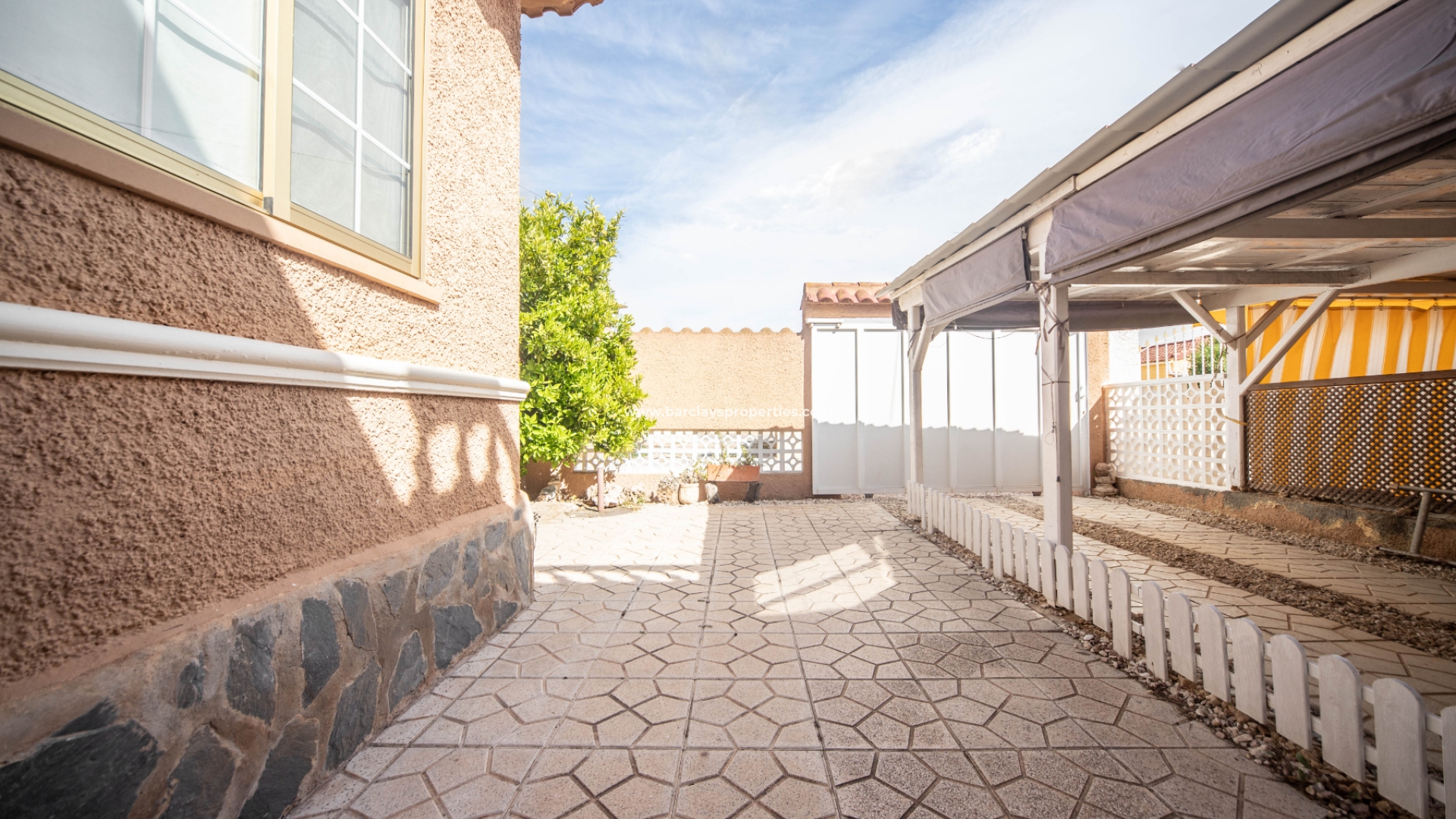 Te koop is dit model "Rosa" een vrijstaande woning gelegen in de gewilde urbanisatie La Marina, San Fulgencio. Deze uitgebreide villa is gelegen in een rustige cul-de-sac en toch op loopafstand van voorzieningen. De villa biedt een comfortabele en ruime leefomgeving, met drie slaapkamers en een badkamer. Gelegen op slechts 5 minuten rijden van het pittoreske gouden strand van "La Marina Village" en op 25 minuten van de luchthaven Alicante-Elche is deze villa perfect gelegen aan de Costa.