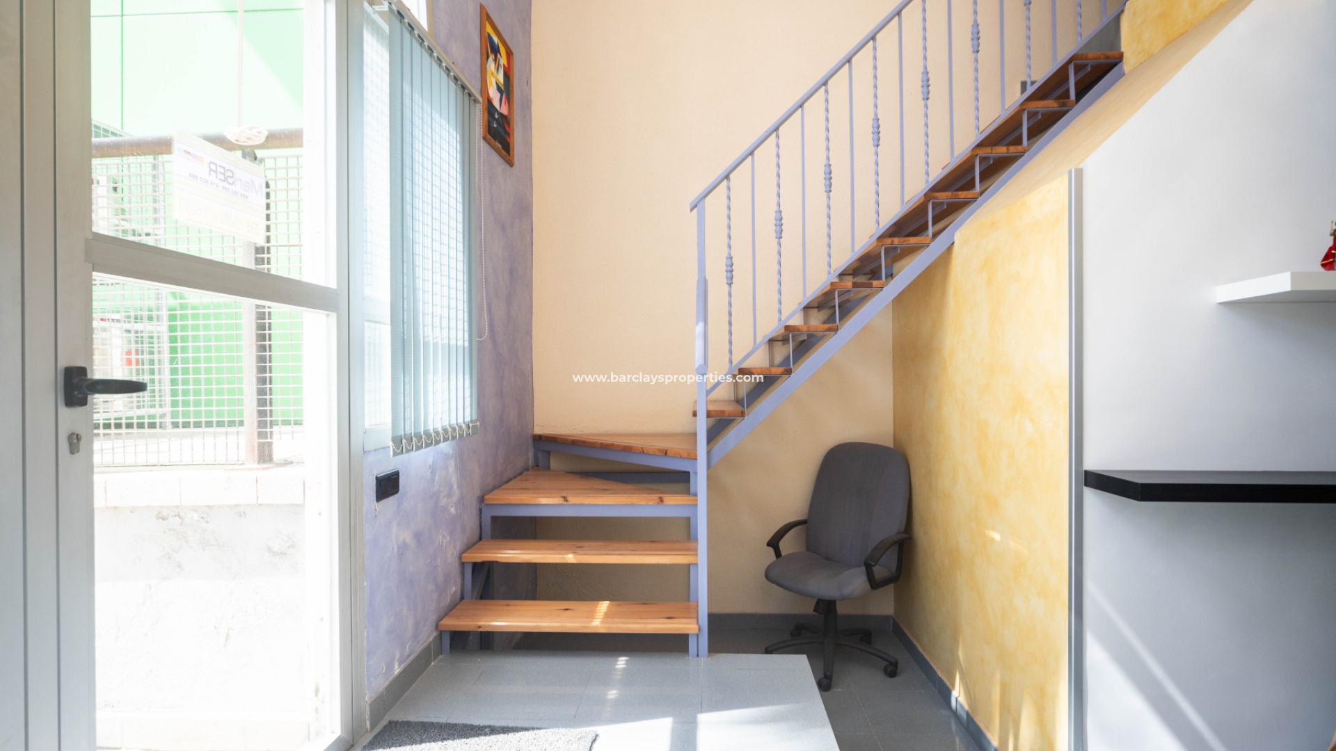 Het pand zelf heeft toegang via de voor- en achterdeur, het is ruim en heeft twee niveaus omdat de huidige eigenaren een extra 60m2 hebben toegevoegd op het tweede niveau, zodat het momenteel 120m2 bruikbare oppervlakte is die voldoende ruimte biedt voor verschillende bedrijfsactiviteiten.