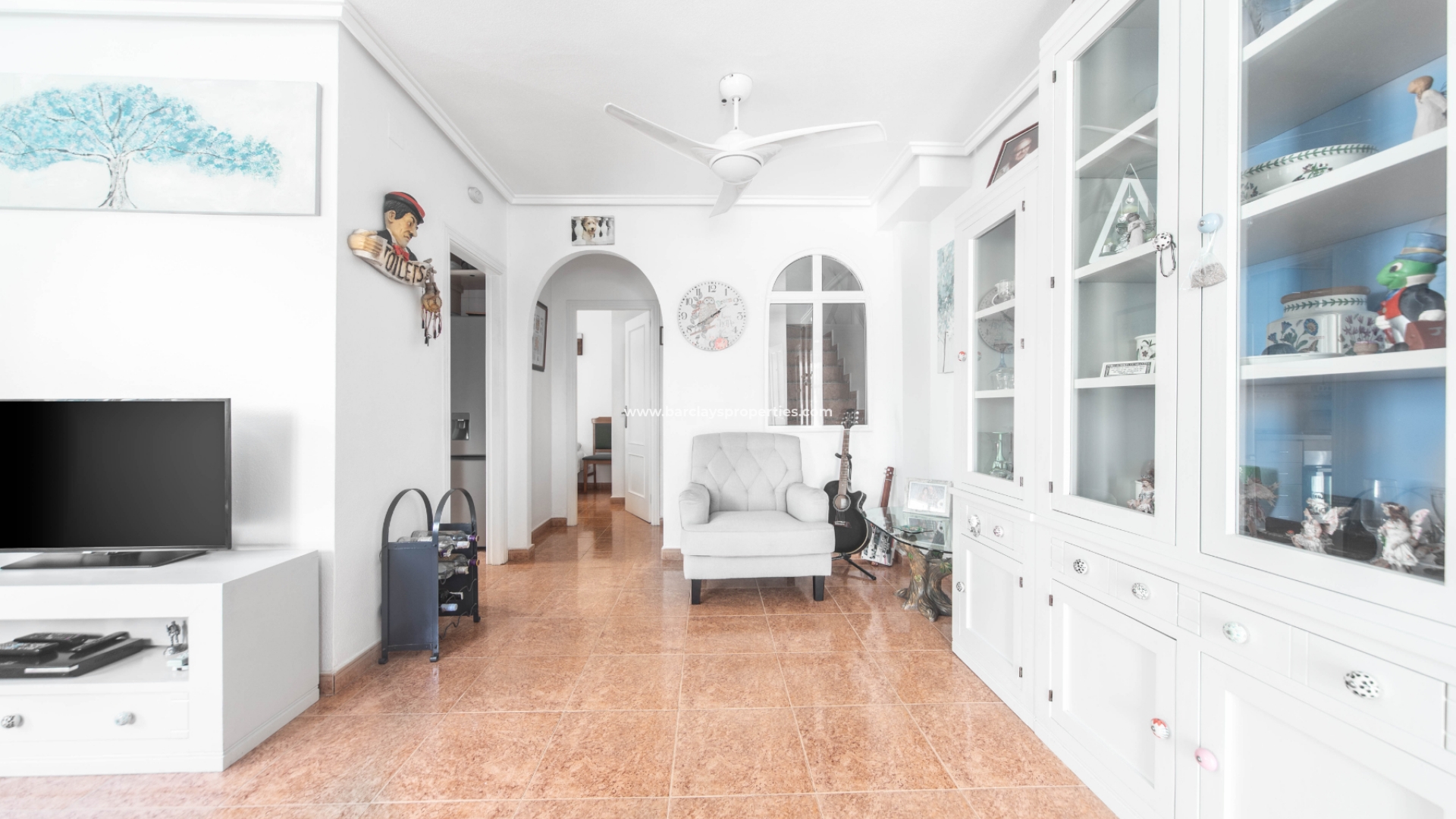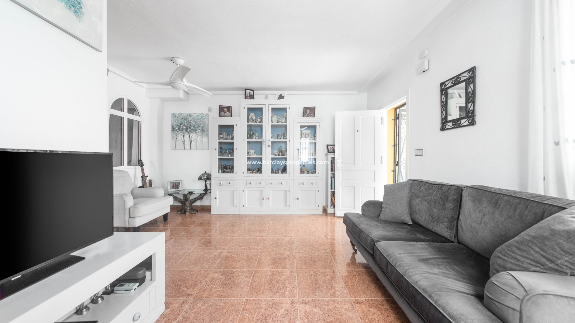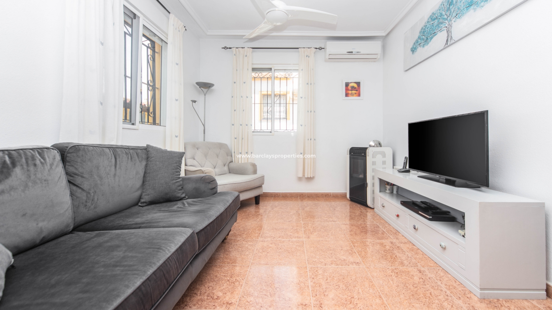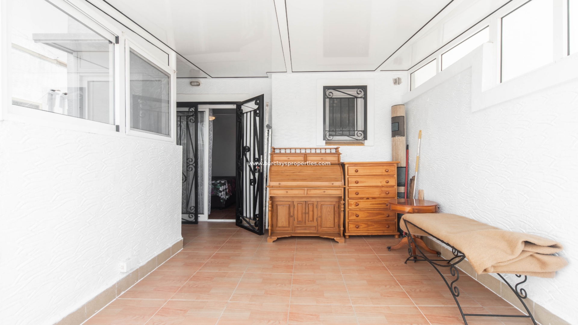 Stap naar binnen en u wordt begroet door een glazen veranda met zonnescherm, een aangrenzend zonneterras en toegang tot de lichte en luchtige woonkamer met pelletkachel, airconditioning en plafondventilatoren, een aparte ingerichte keuken met toegangsdeur naar de tuin met een eigen barbecue en zithoek en een externe opbergschuur. Naast de keuken vinden we een slaapkamer met airconditioning, plafondventilatoren en inbouwkasten, en naast de slaapkamer is er een badkamer met een inloopdouche.