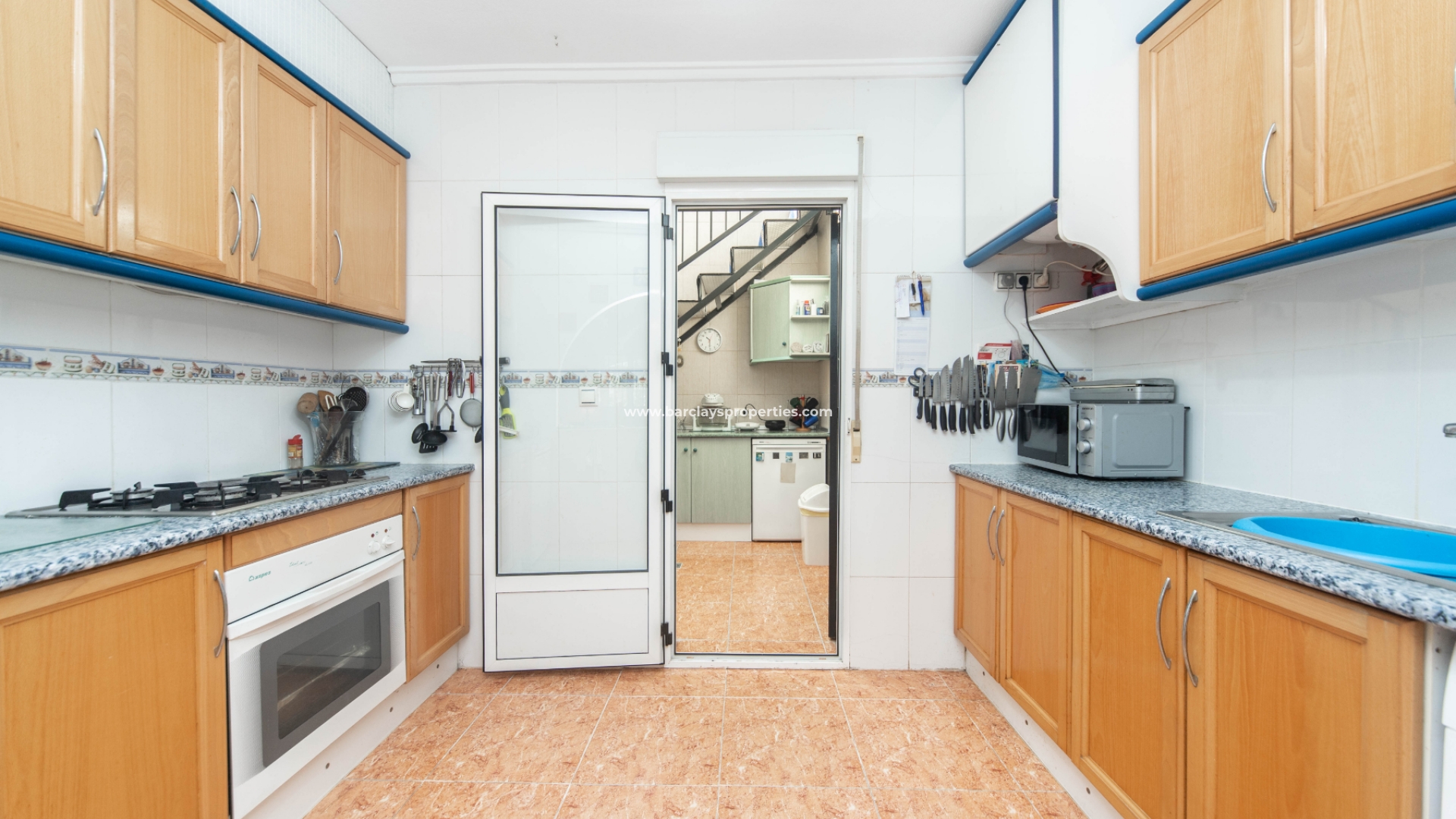Welkom bij deze charmante geschakelde woning gelegen in de gewilde urbanisatie La Marina in de provincie Alicante. Dit mooie huis biedt een comfortabele en uitnodigende leefruimte, perfect voor wie op zoek is naar een rustige en handige levensstijl. De rustige ligging van deze geschakelde villa is nog steeds op loopafstand van voorzieningen zoals bars, cafés en restaurants met een grote verscheidenheid aan keukens.