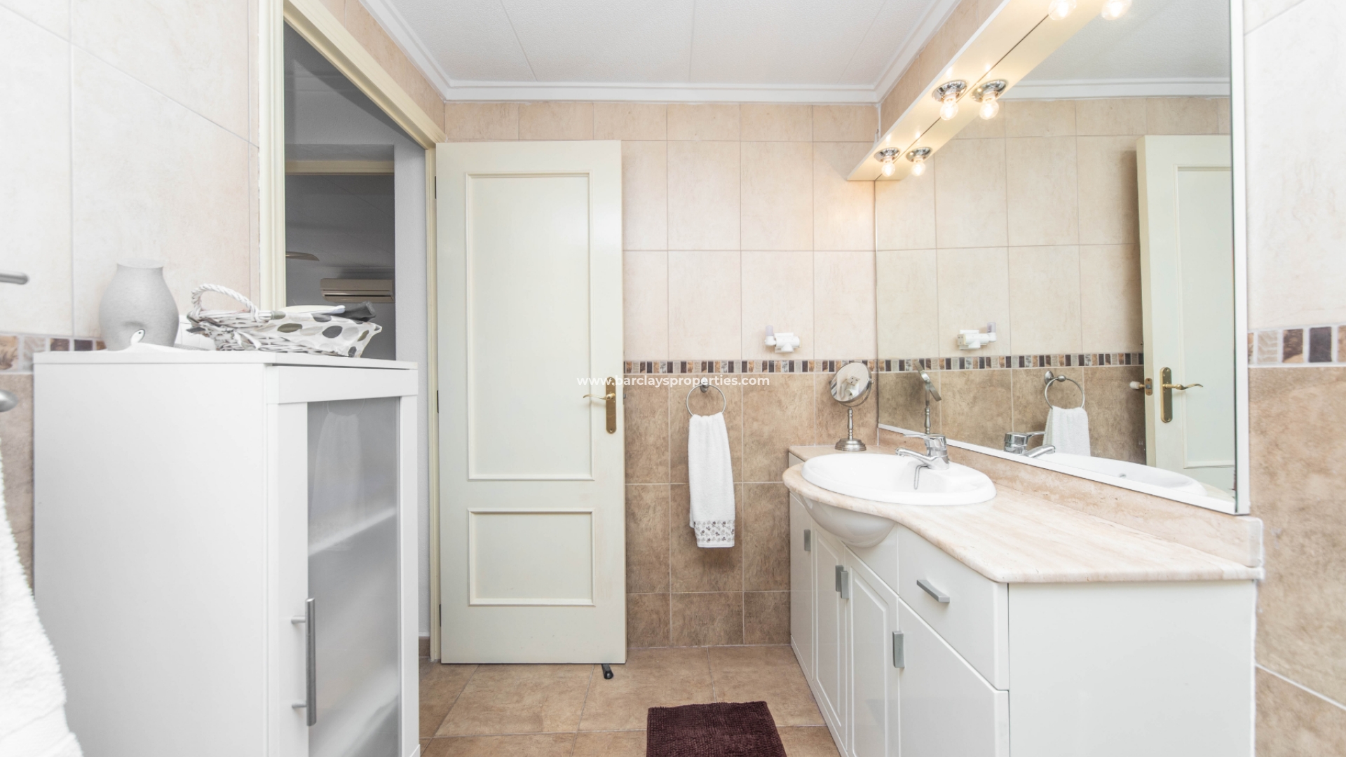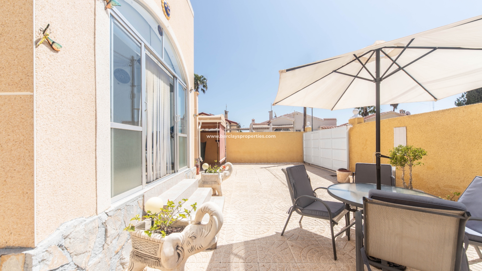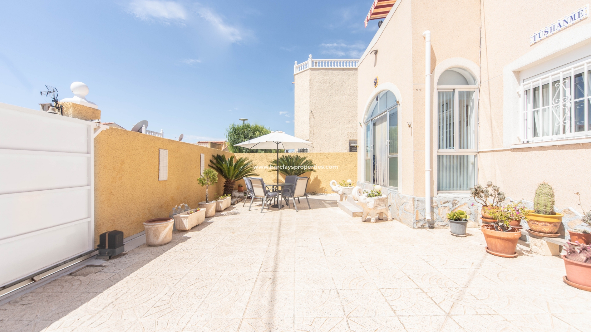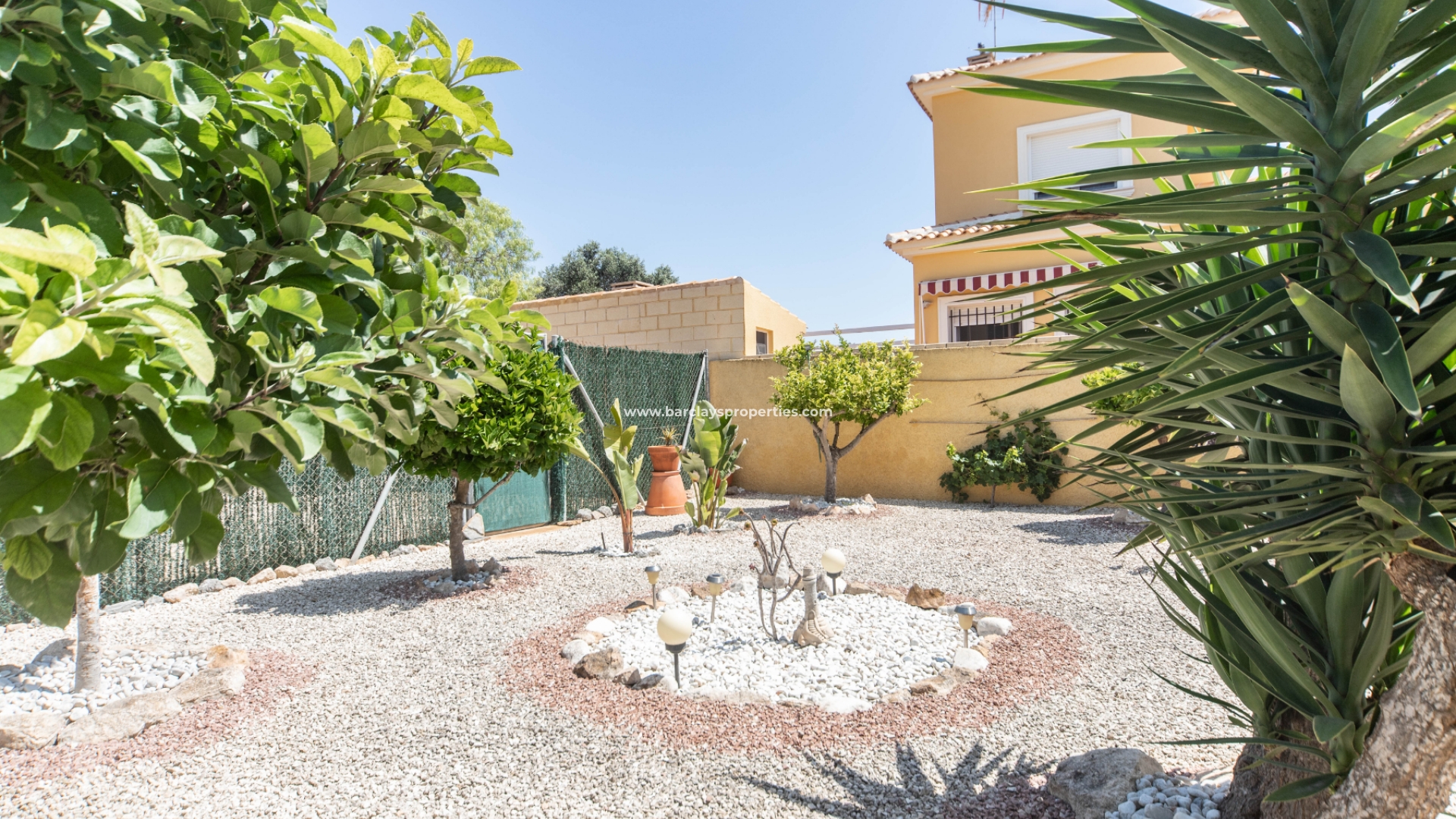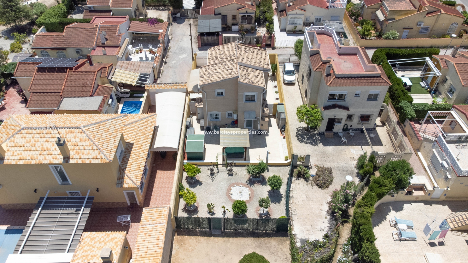 Deze Vrijstaande woning te koop in La Marina, Costa Blanca, is een luxueuze en zeer gewilde woning gelegen op een gewilde locatie. Met zijn zuidelijke ligging geniet de villa van overvloedig zonlicht gedurende de dag, wat zorgt voor een heldere en gastvrije sfeer. Verscholen in een rustige doodlopende straat biedt het pand een serene en vredige omgeving. Bovendien zorgt de centrale ligging binnen de urbanisatie voor een gemakkelijke toegang tot winkels, banken, supermarkten, bars en restaurants. Het plaatselijke strand ligt op slechts 5 minuten rijden, wat zorgt voor eenvoudige toegang tot zon, zand en zee. De nabijheid van de luchthaven, ongeveer 25 minuten verwijderd, draagt bij aan het gemak en de bereikbaarheid van de locatie.