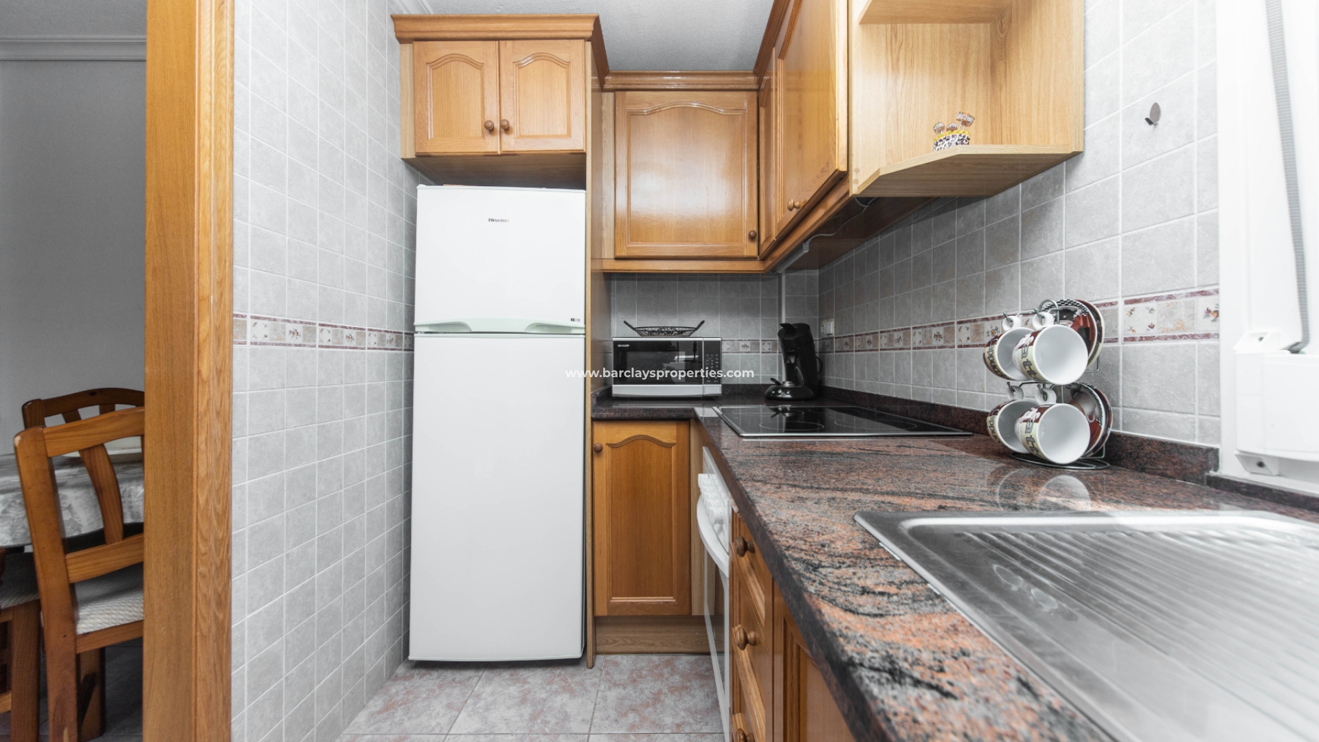 Bij het betreden van de woning vinden we een ruime woonkamer met een aparte eethoek, een onafhankelijke keuken met een dubbel granieten werkblad, een koelvriescombinatie, een kookplaat, een oven, een afzuigkap, onderbouwverlichting en een wasmachine. Het is ontworpen om licht en luchtig te zijn, waardoor een aangename kookomgeving ontstaat. Vanuit de hal komen we bij een goed gepresenteerde badkamer met een inloopdouche en een slaapkamer met airconditioning, een plafondventilator, een inbouwkast en opbergruimte.