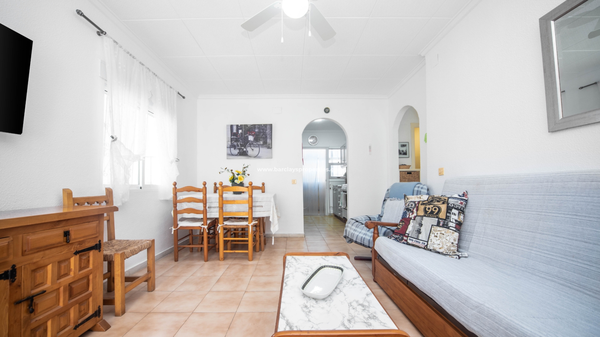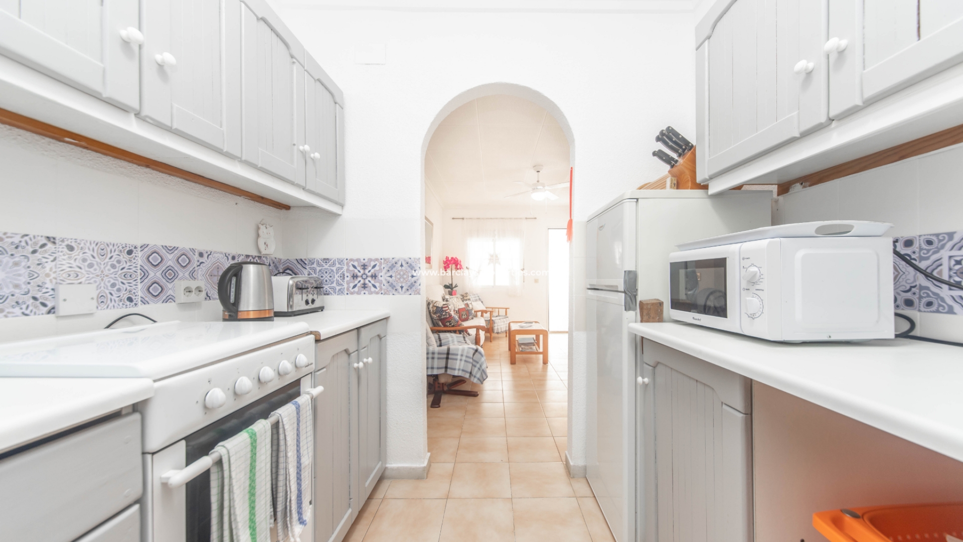 Onlangs zowel van binnen als van buiten opnieuw geschilderd, presenteert het pand zich met een frisse en moderne uitstraling. Het interieur beschikt over een comfortabele woonkamer met airconditioning, die zorgt voor zowel verwarming als verkoeling, voor comfort het hele jaar door. Een plafondventilator verbetert de luchtcirculatie in de woonkamer. De woonkamer heeft een aangewezen eethoek nabij de keuken.