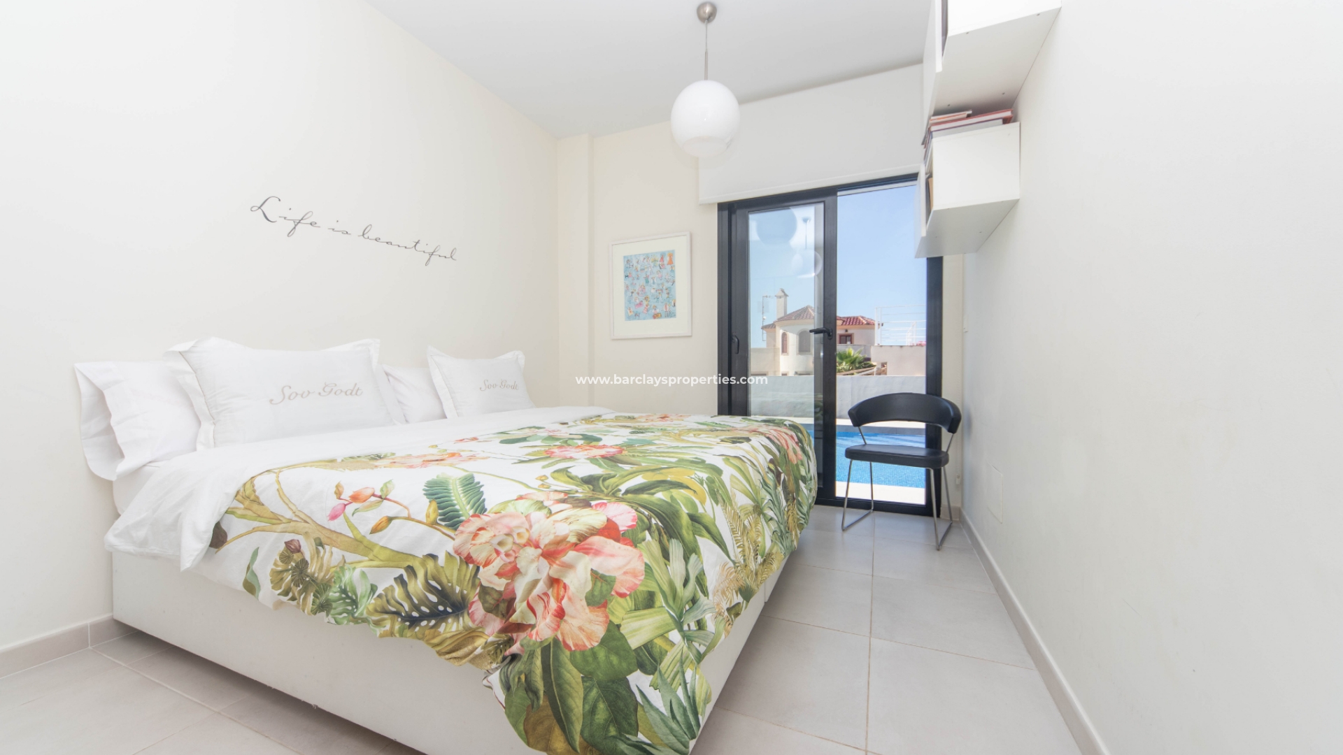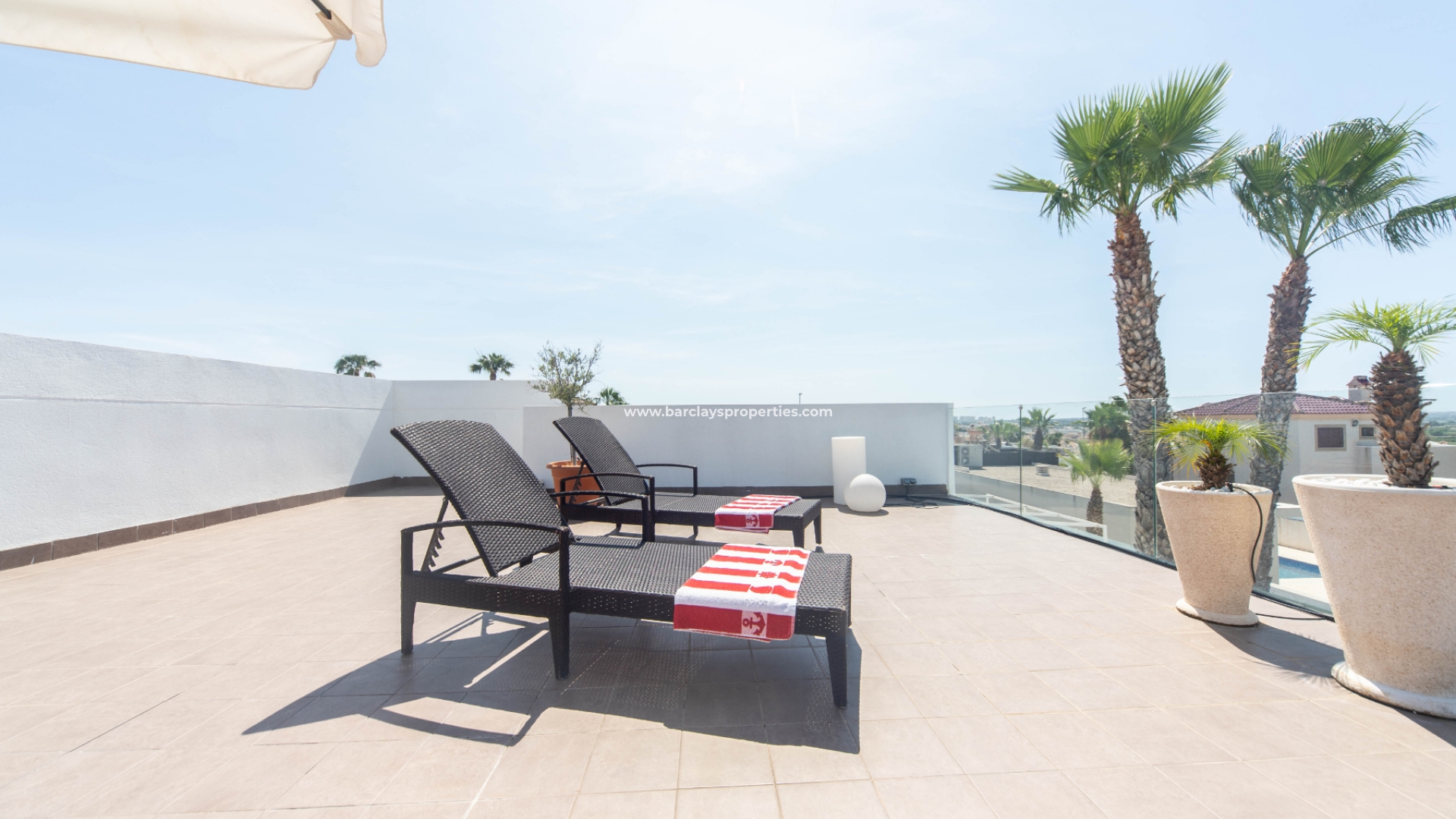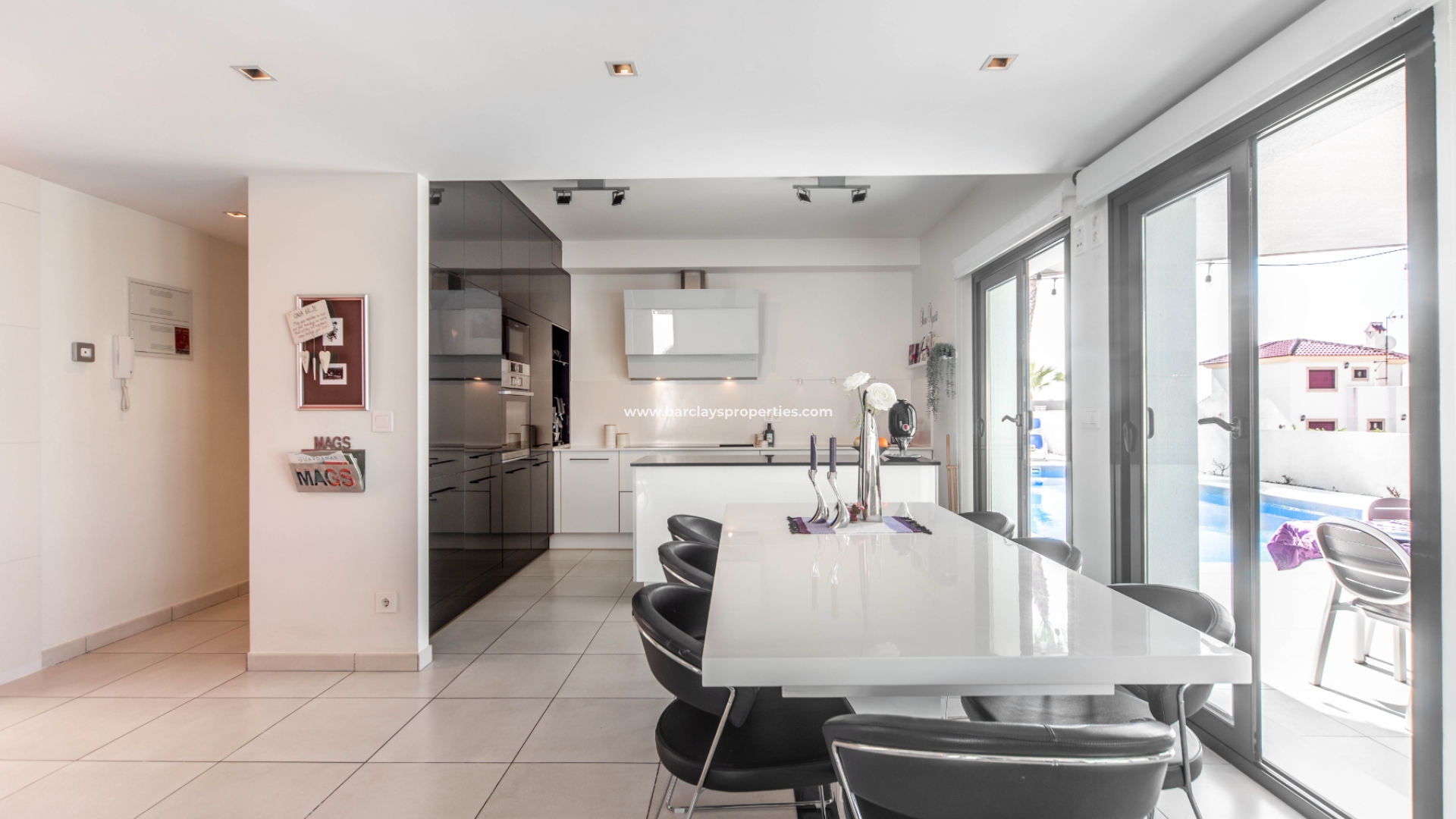 Welkom in deze prachtige moderne luxe villa op het zuiden, een waar toonbeeld van elegantie en comfort. Met vier slaapkamers en drie badkamers biedt deze woning voldoende ruimte voor u en uw dierbaren om te genieten van een luxueuze levensstijl. De villa is gelegen op een rustige locatie in de populaire urbanisatie La Marina. Voorzieningen bevinden zich op loopafstand van twee verschillende commerciële zones met een verscheidenheid aan winkels, banken, bars, cafés en restaurants, dus u hoeft de auto niet te nemen en kunt genieten van het leven op uw eigen tempo.