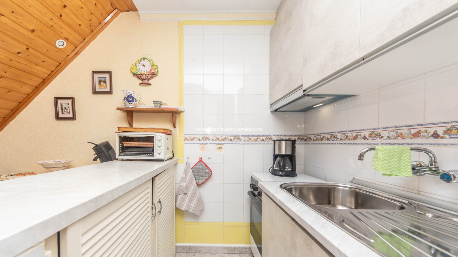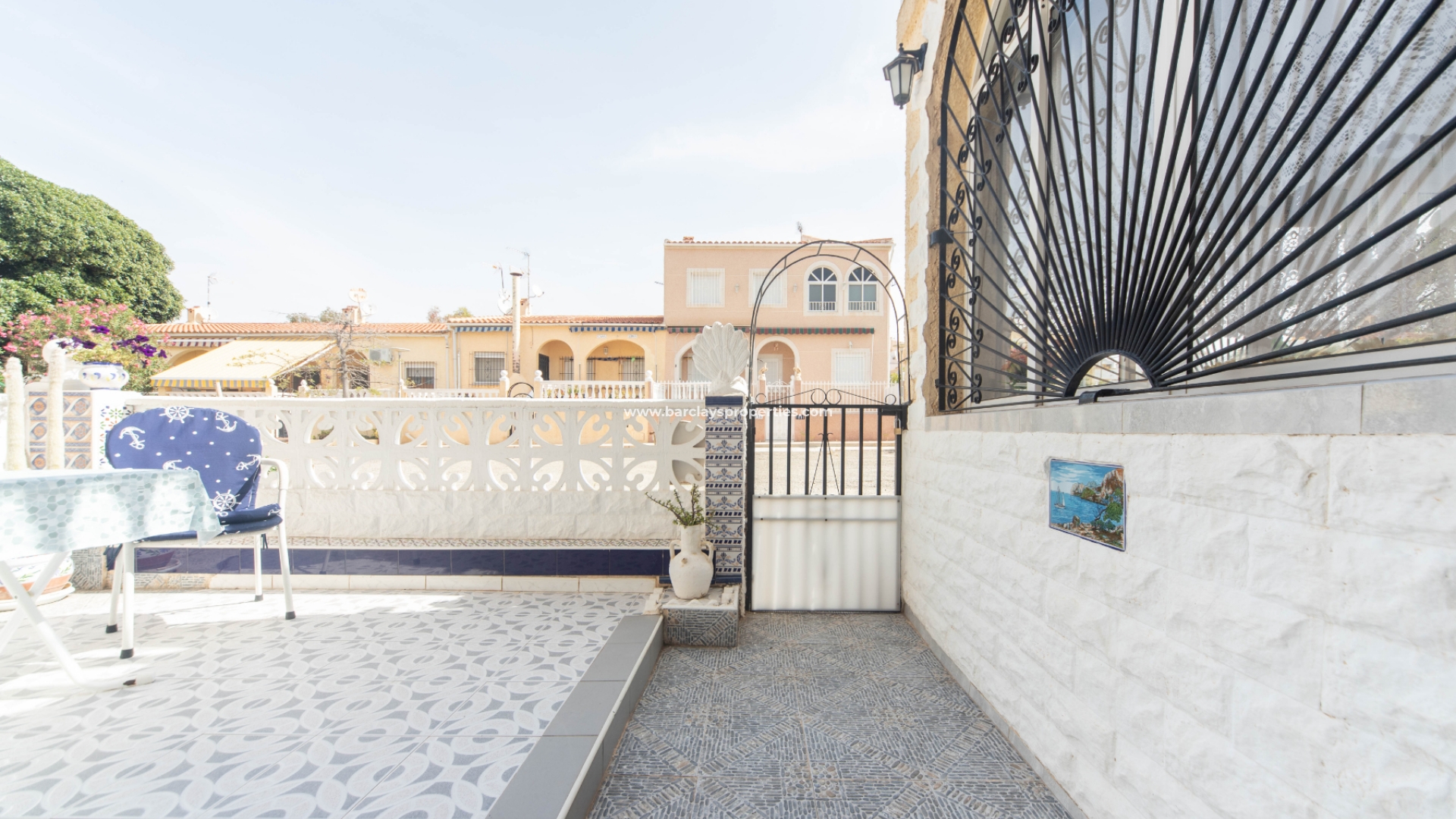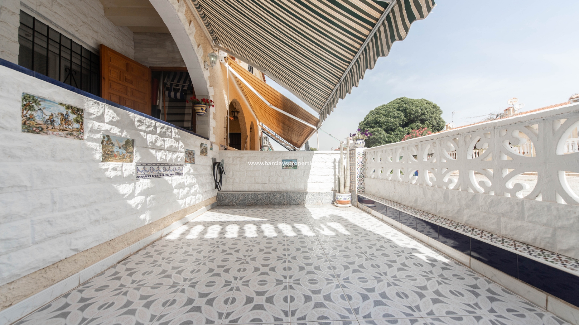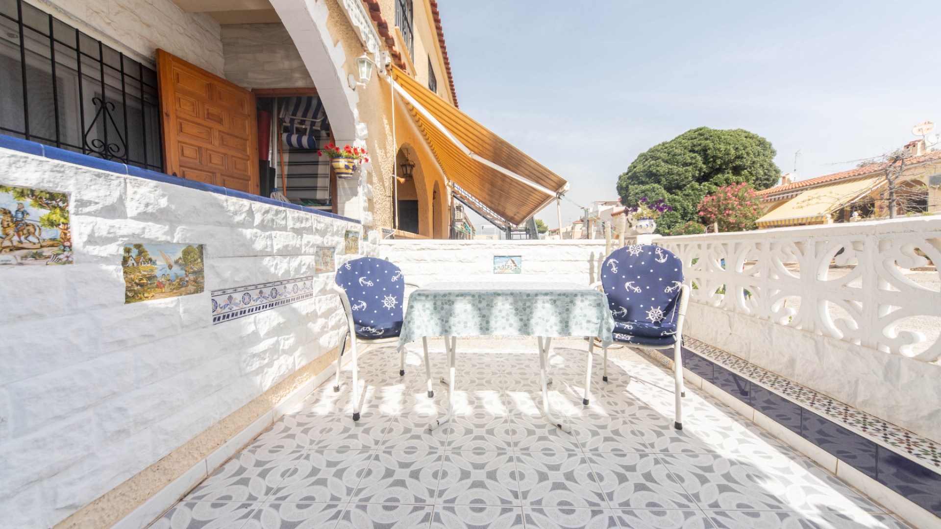 De woning heeft een groot zonneterras dat bereikbaar is vanuit de woonkamer op de bovenverdieping, met pittoreske uitzichten op Guardamar en de zee.