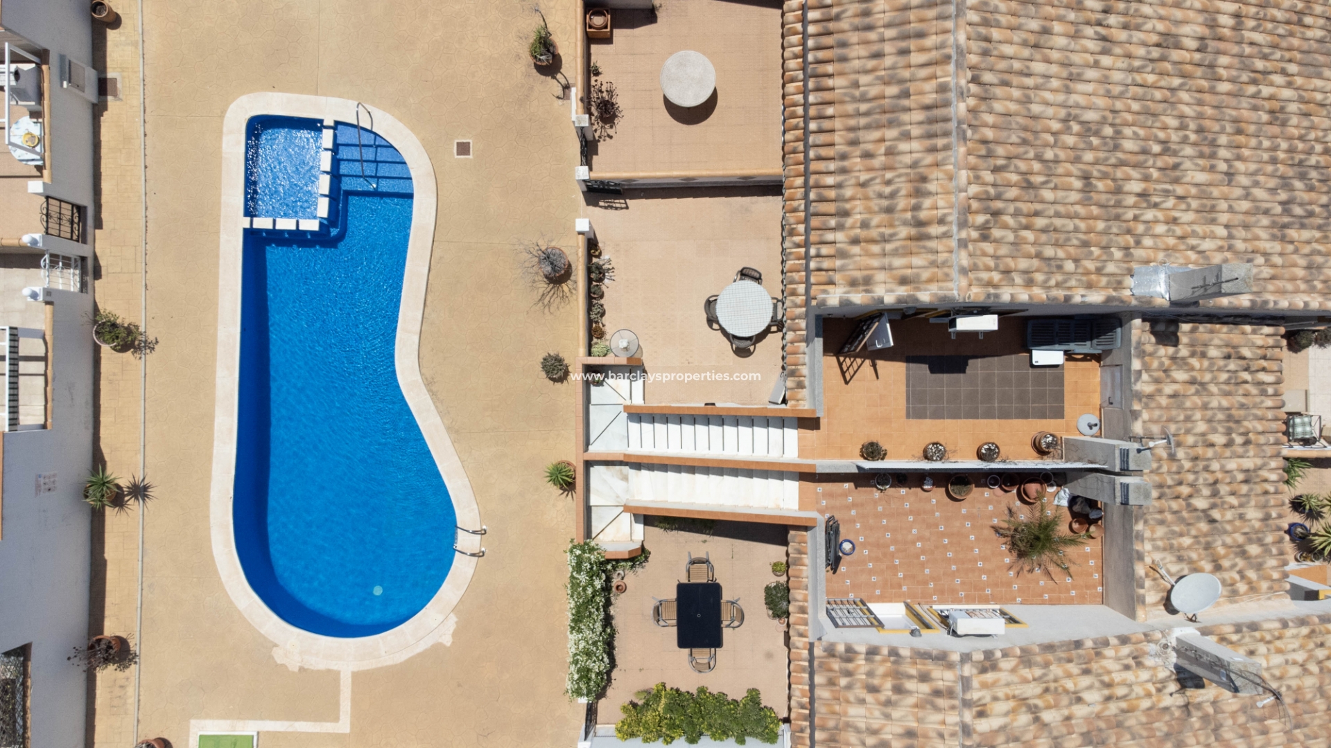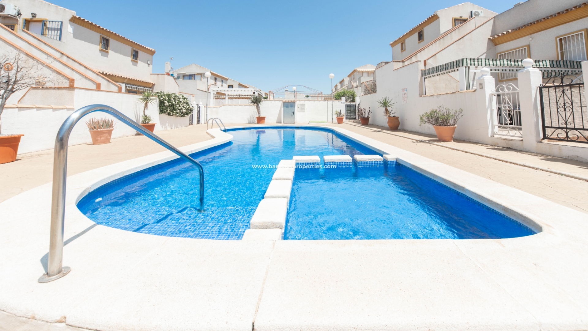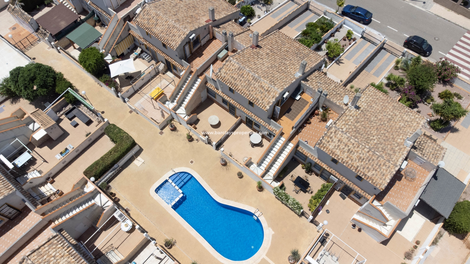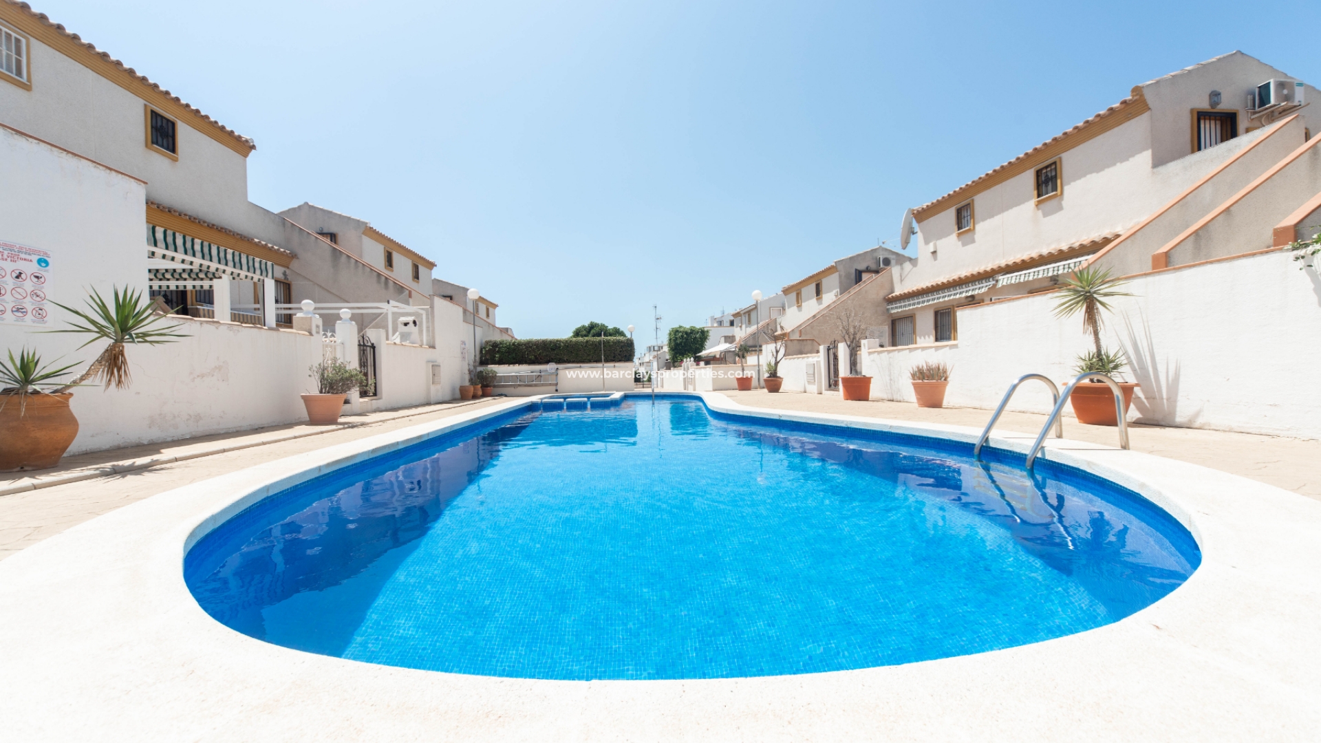 Een van de opvallende kenmerken van deze woning is de toegang tot een gemeenschappelijk zwembad, dat rechtstreeks vanuit de achtertuin bereikbaar is. Bewoners kunnen genieten van verfrissende zwempartijen en ontspannen dagen bij het zwembad, wat een extra dimensie van ontspanning en plezier toevoegt aan hun levensstijl.