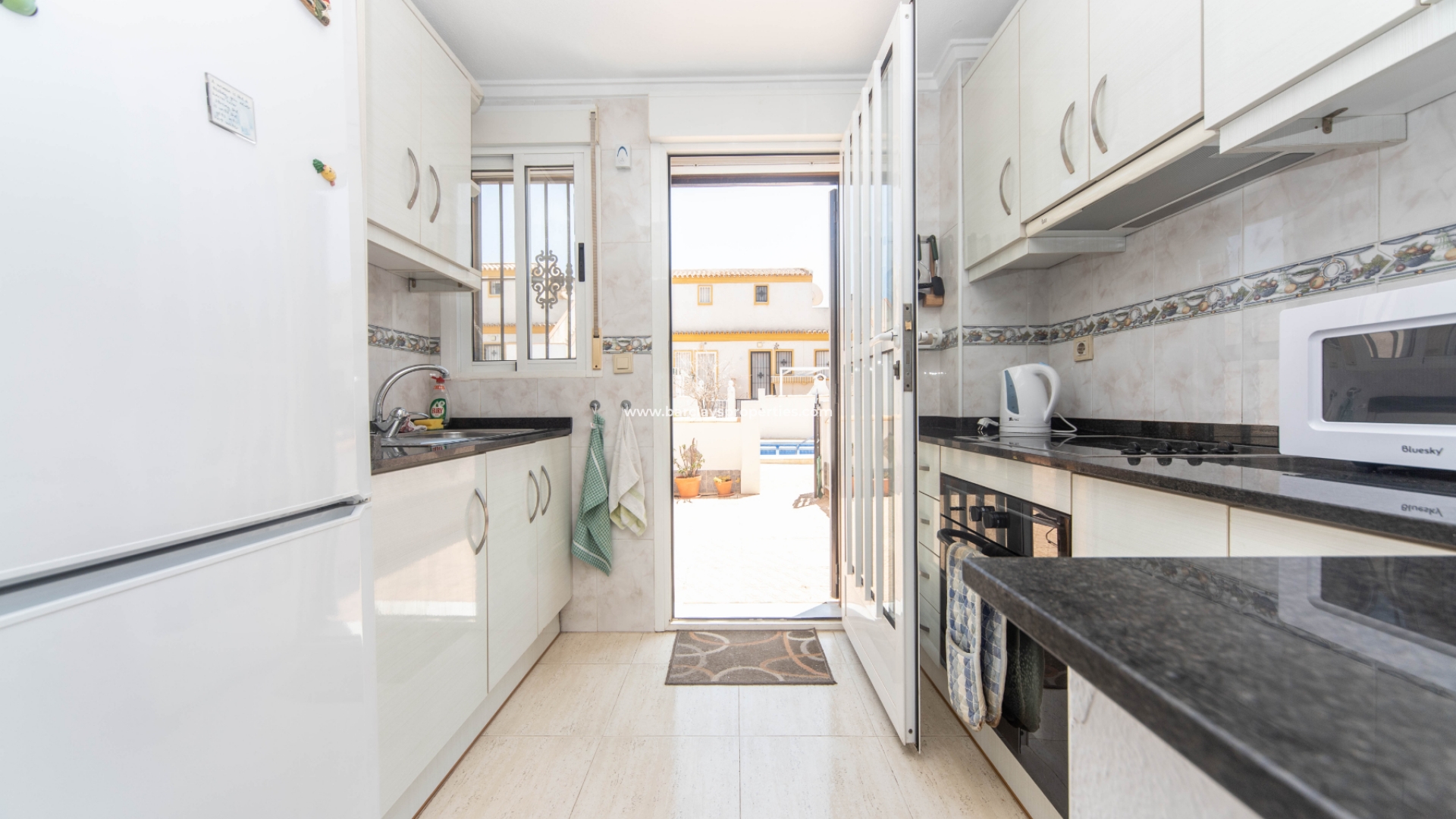 Verderop is de tweede slaapkamer ook een goed ingerichte tweepersoonskamer met een plafondventilator en ingebouwde kasten. De pas geïnstalleerde keuken is het hoogtepunt van deze woning en beschikt over een stijlvolle ontbijtbar met veel opbergruimte. Het is uitgerust met moderne apparatuur zoals een kookplaat, oven, afzuigkap en koel-/vriescombinatie.