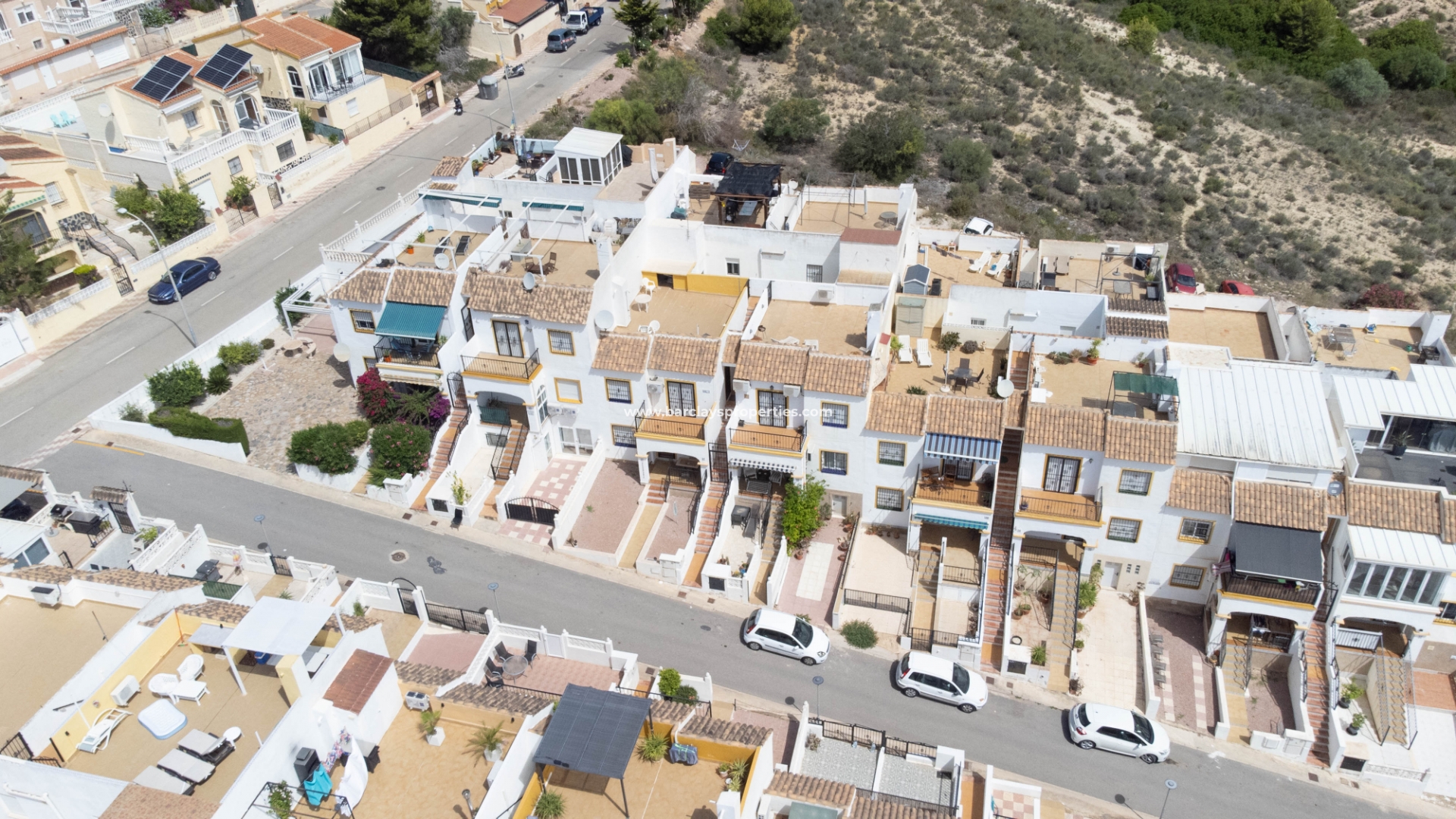 Natuurliefhebbers zullen verheugd zijn te ontdekken dat er aan het einde van de gemeenschap een charmant dennenbos ligt, dat een serene omgeving biedt voor ontspannen wandelingen en het genieten van de buitenlucht. Het is een uitstekende eigenschap voor mensen die op zoek zijn naar een balans tussen het leven aan de kust en de rust van de natuur. De bewoners van deze gemeenschap hebben toegang tot twee gemeenschappelijke zwembaden en goed onderhouden tuinen, wat de perfecte ruimte biedt om te ontspannen en te genieten van het mediterrane klimaat.