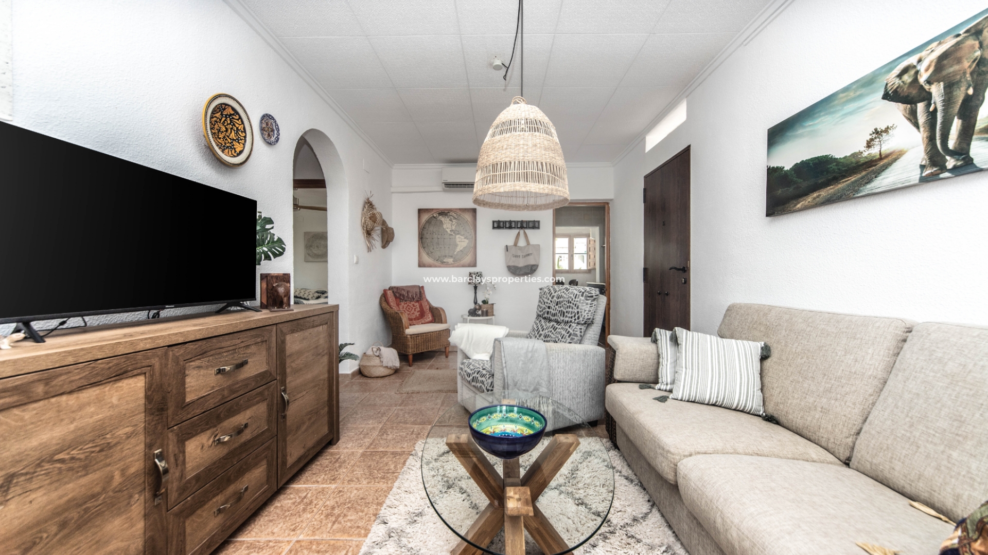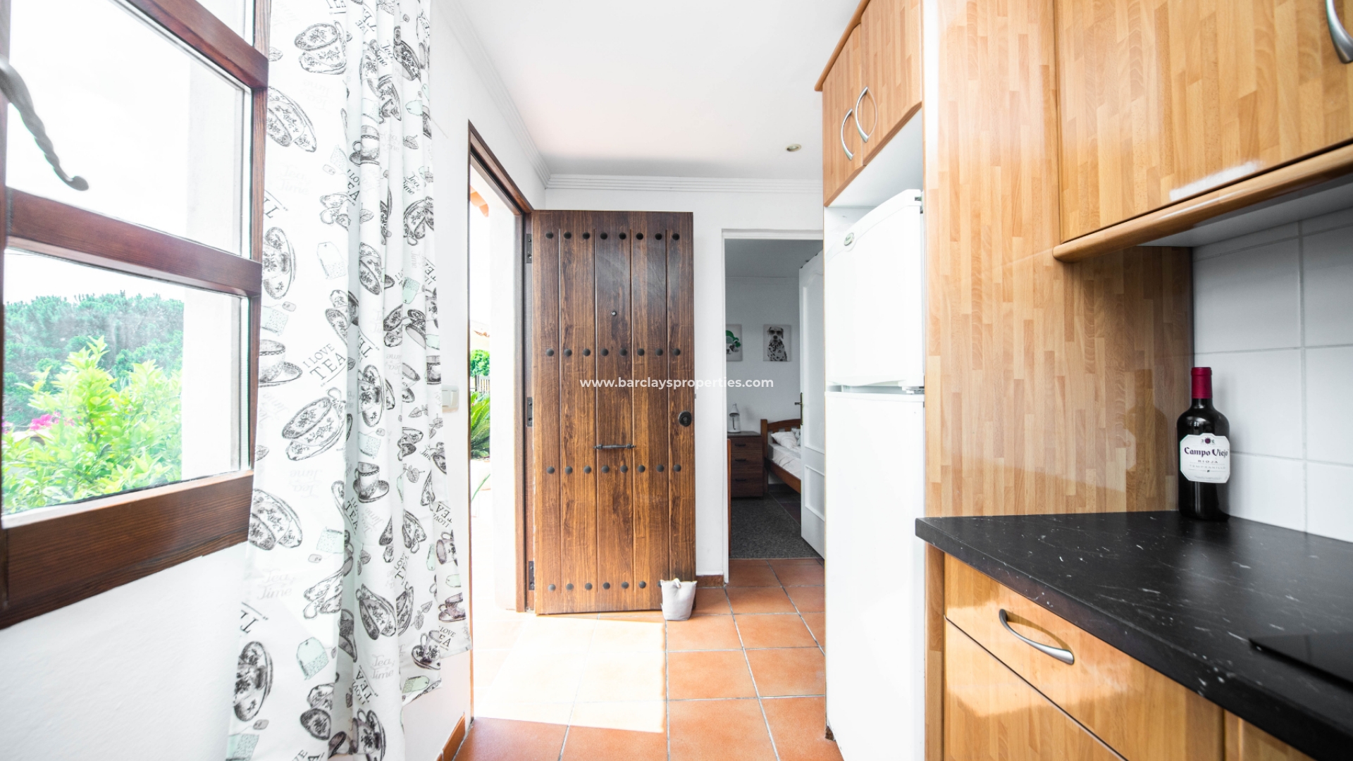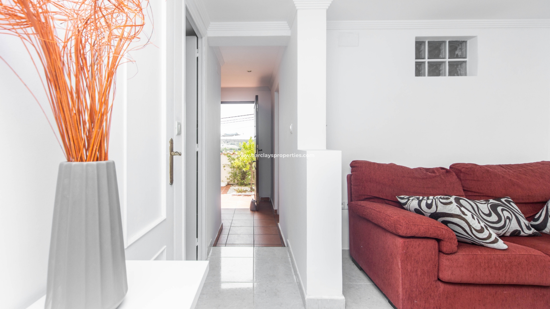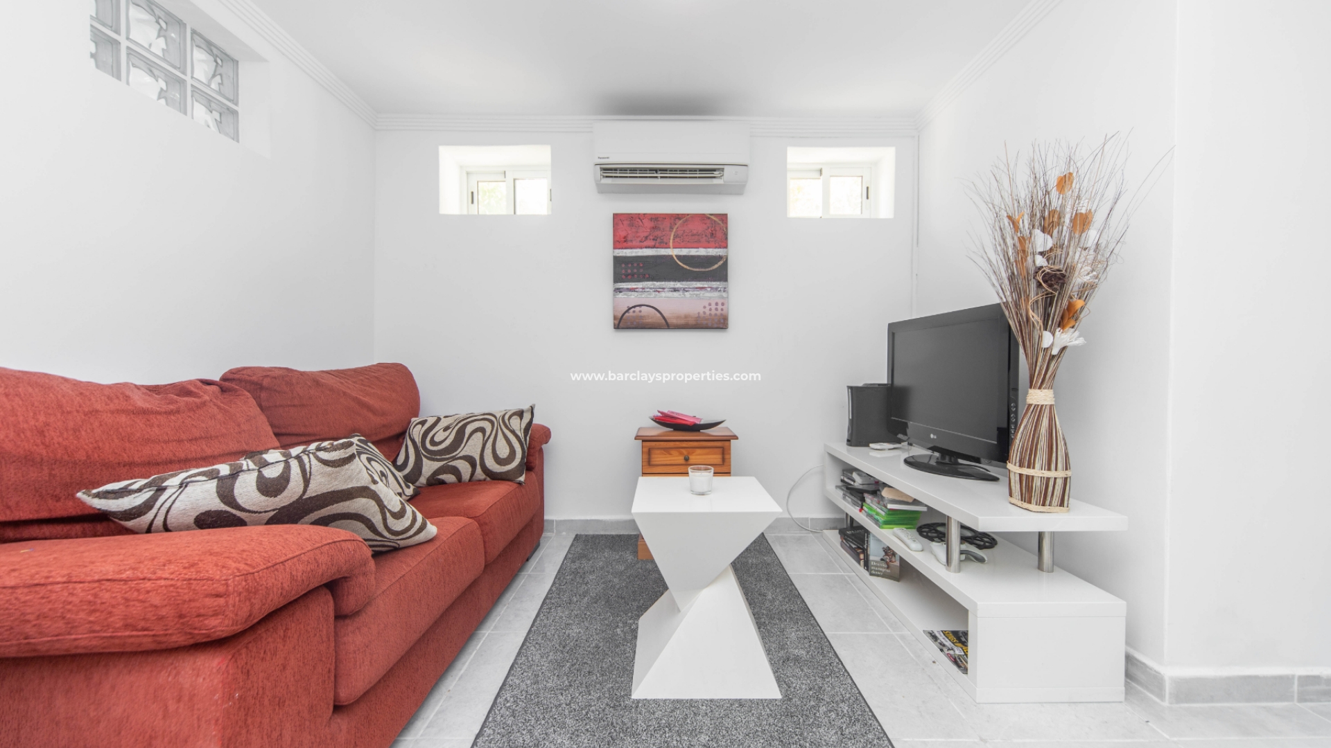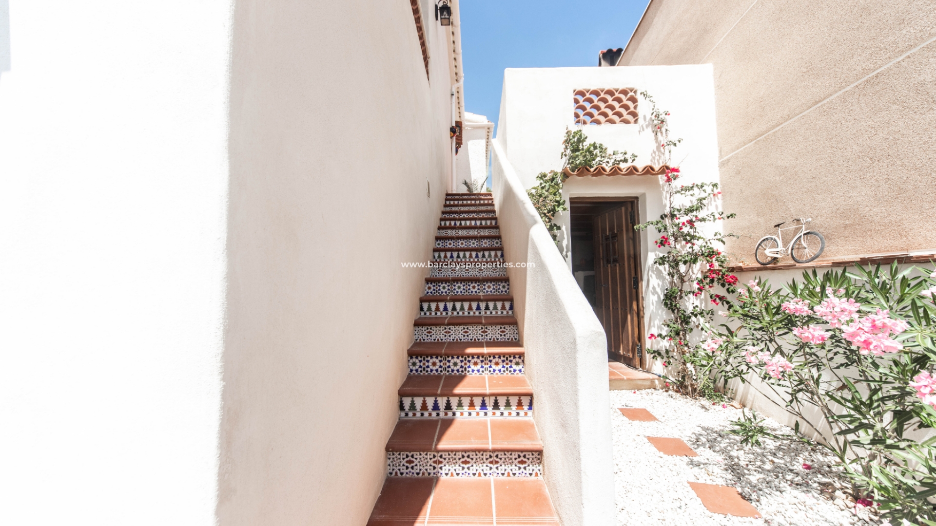 Een van de unieke kenmerken van deze villa is ➡️ de twee aparte accommodaties, waardoor het een uitstekende keuze is voor het ontvangen van vrienden of familie die op bezoek komen. Bij het betreden van het huis vanaf de straat, passeert u een charmante witte boog en een paar trappen die leiden naar het eerste deel van het huis, ook wel bekend als het onderste deel. Deze sectie omvat een lichte woonkamer met airconditioning, een volledig uitgeruste keuken, twee slaapkamers (waarvan één tweepersoons), een badkamer met een inloopdouche en een handige berging/kast.