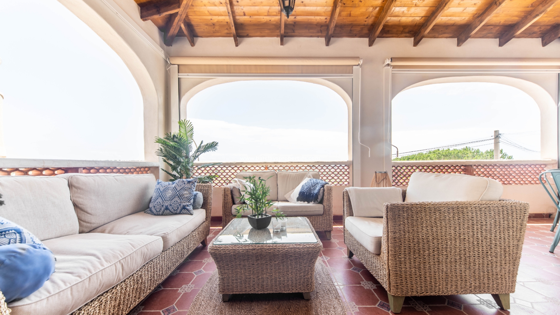 Als u naar buiten stapt op het terras, vindt u een heerlijke zithoek, een tuinhuisje en weelderige vegetatie, waardoor een aangename kleine oase voor ontspanning ontstaat. Als u verder gaat via een aantal trappen, bereikt u het bovenste terras, met nog een zithoek met adembenemend uitzicht op de omgeving. Vanaf hier heeft u toegang tot het tweede deel van het huis, met een lichte woonkamer, een tweede keuken, twee tweepersoonsslaapkamers met plafondventilatoren en nog een badkamer met douche.