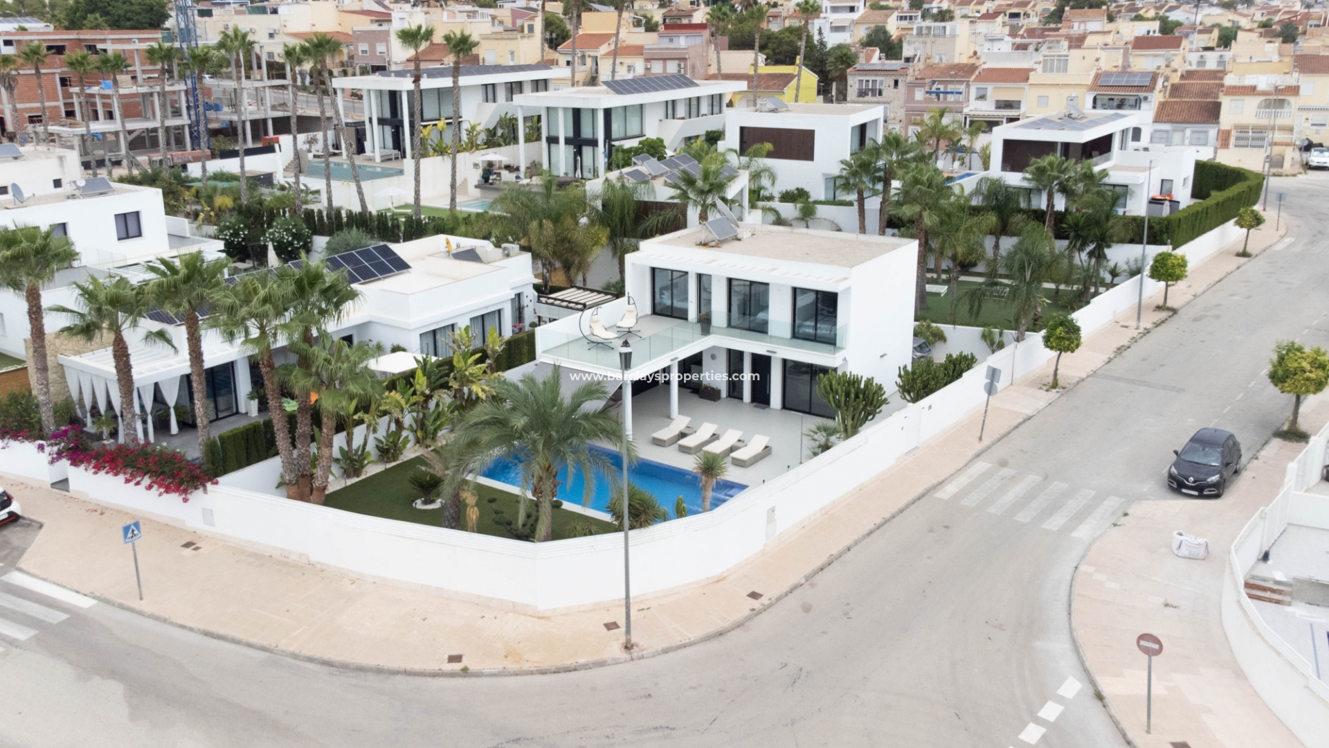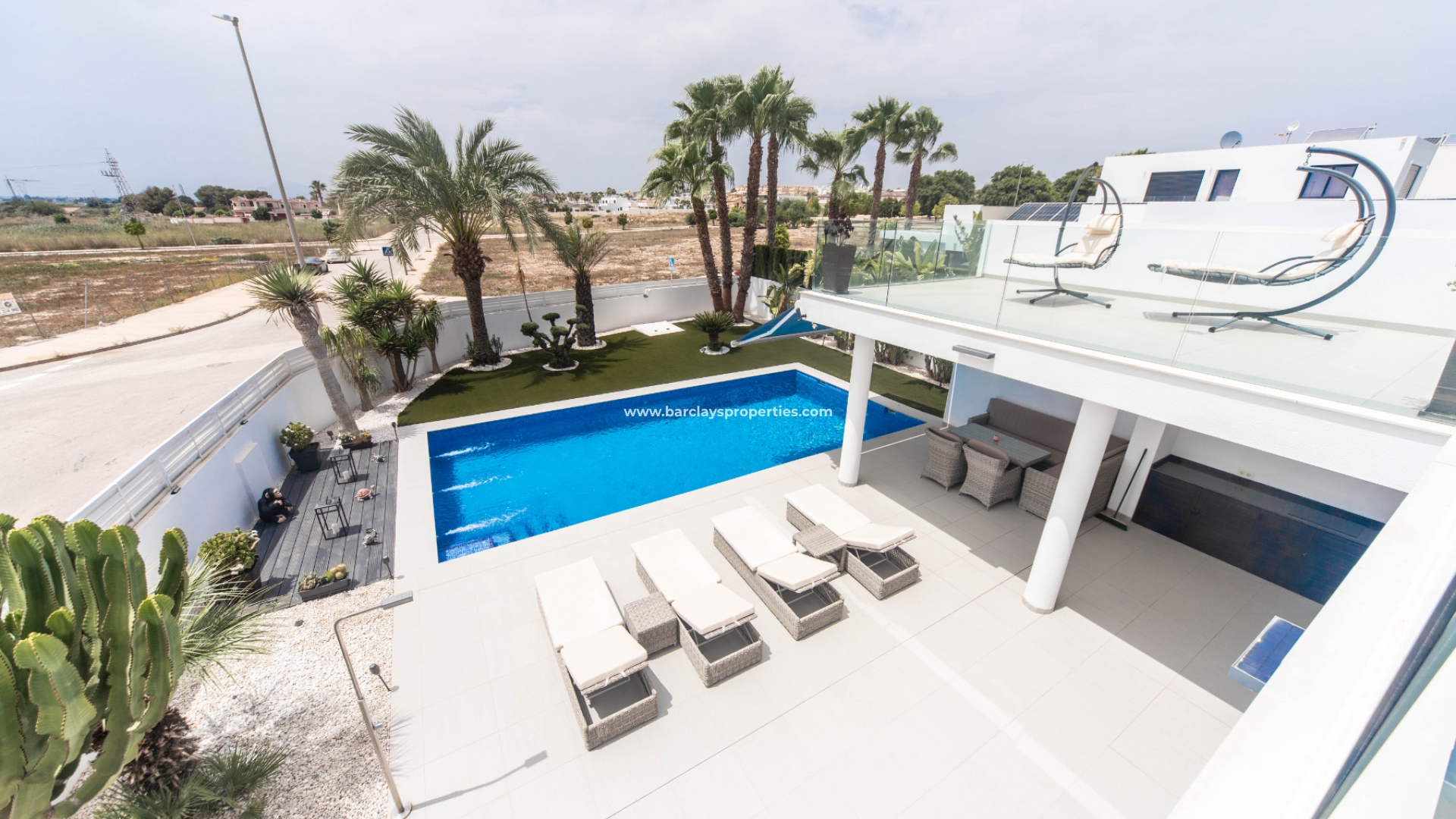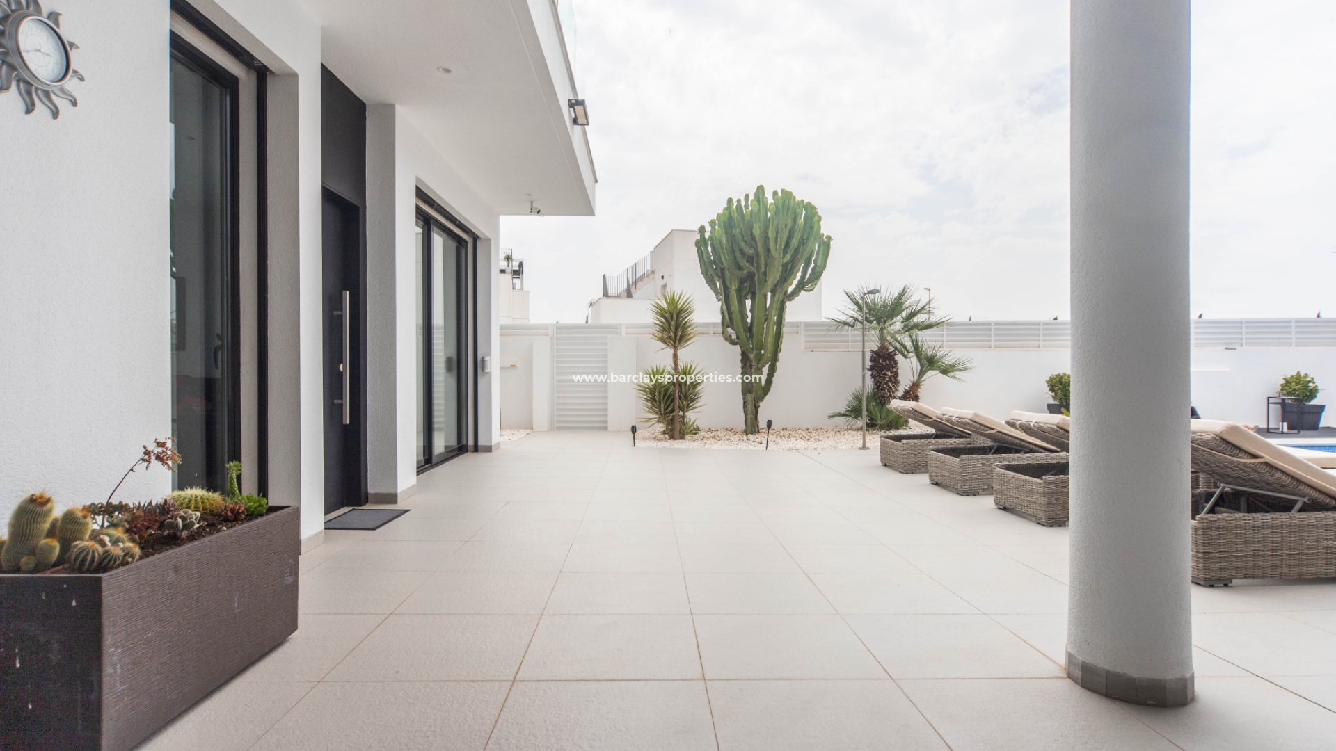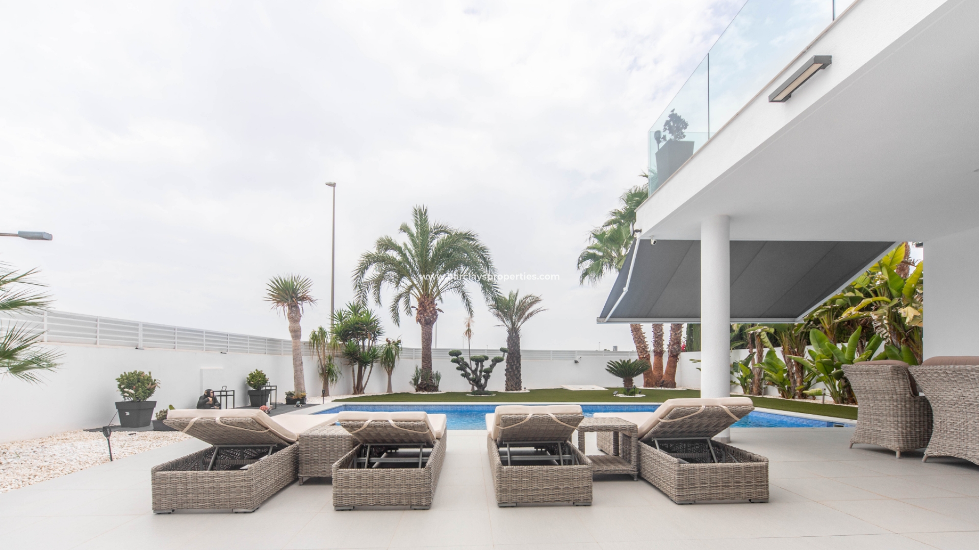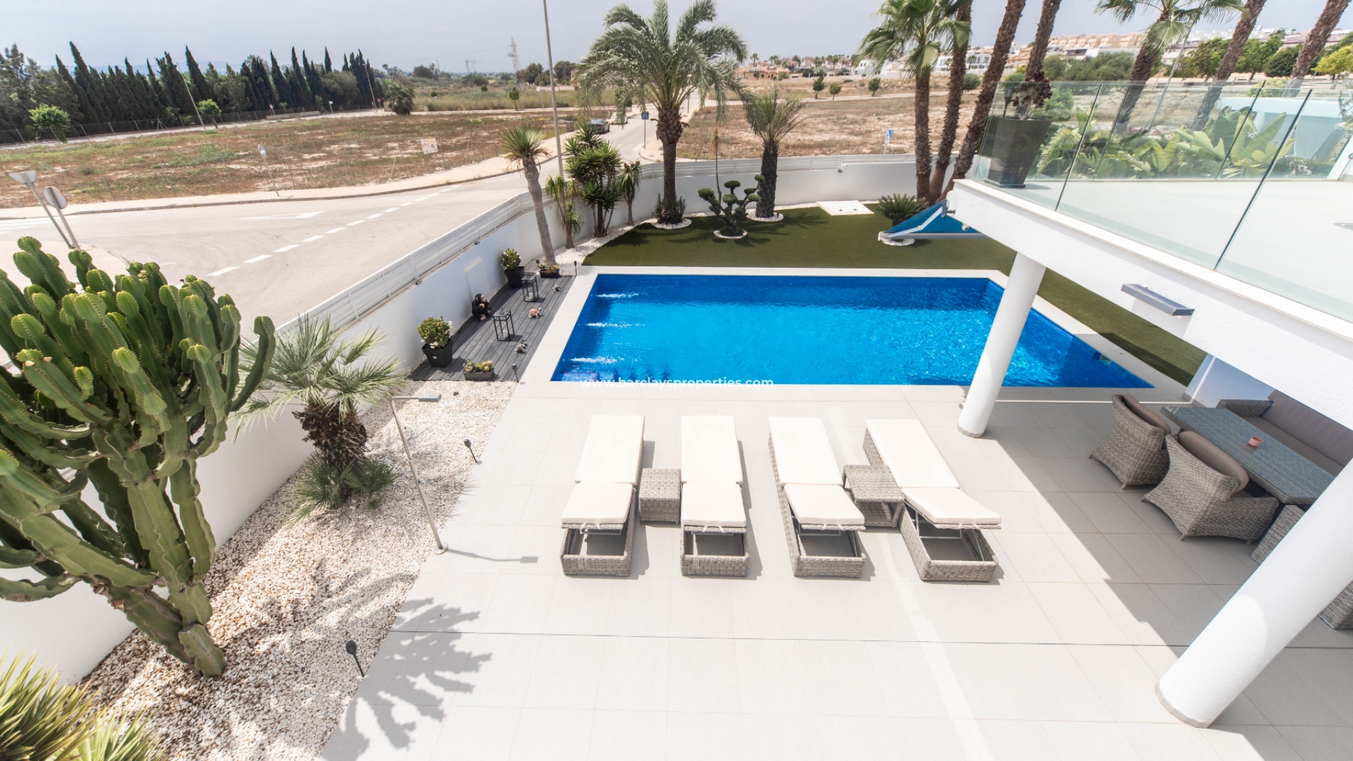 Het intercomsysteem, het voetgangershek en de brede oprit bieden toegang tot de tuin met parkeergelegenheid buiten de weg, met twee ruime parkeerplaatsen, een tuinhuisje dat ideaal is voor opslag, het ➡️ prachtige privézwembad met moderne buitendouche en een fraaie nieuwe tuinindeling met modern tegelwerk, kunstgrasgedeeltes met planten en bomen, en vele schaduwrijke en zonnige plekken om buiten te zitten, te dineren en te zonnebaden. Hier kun je heerlijk ontspannen en genieten van het buitenleven, met 325 zonnige dagen per jaar.