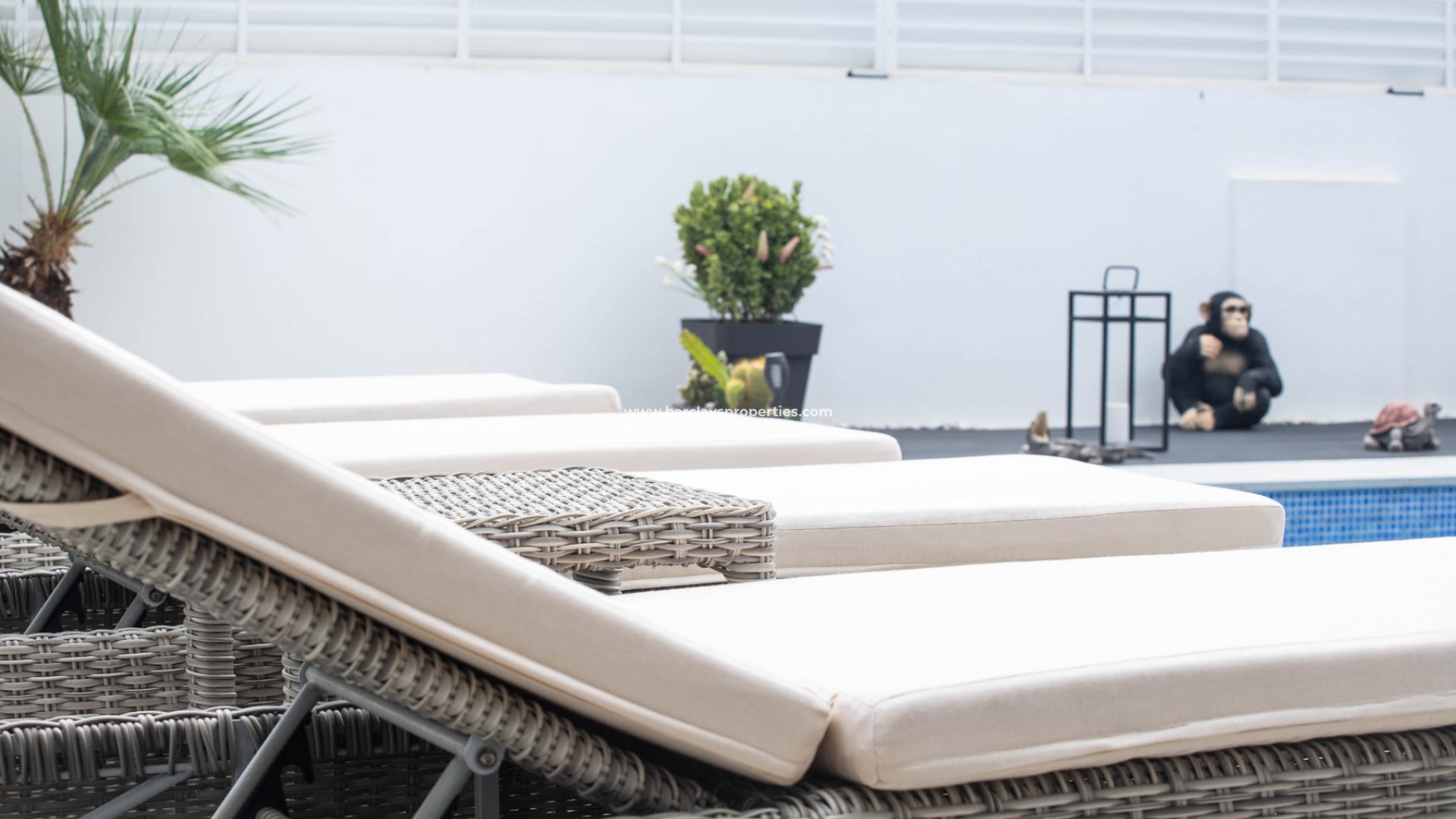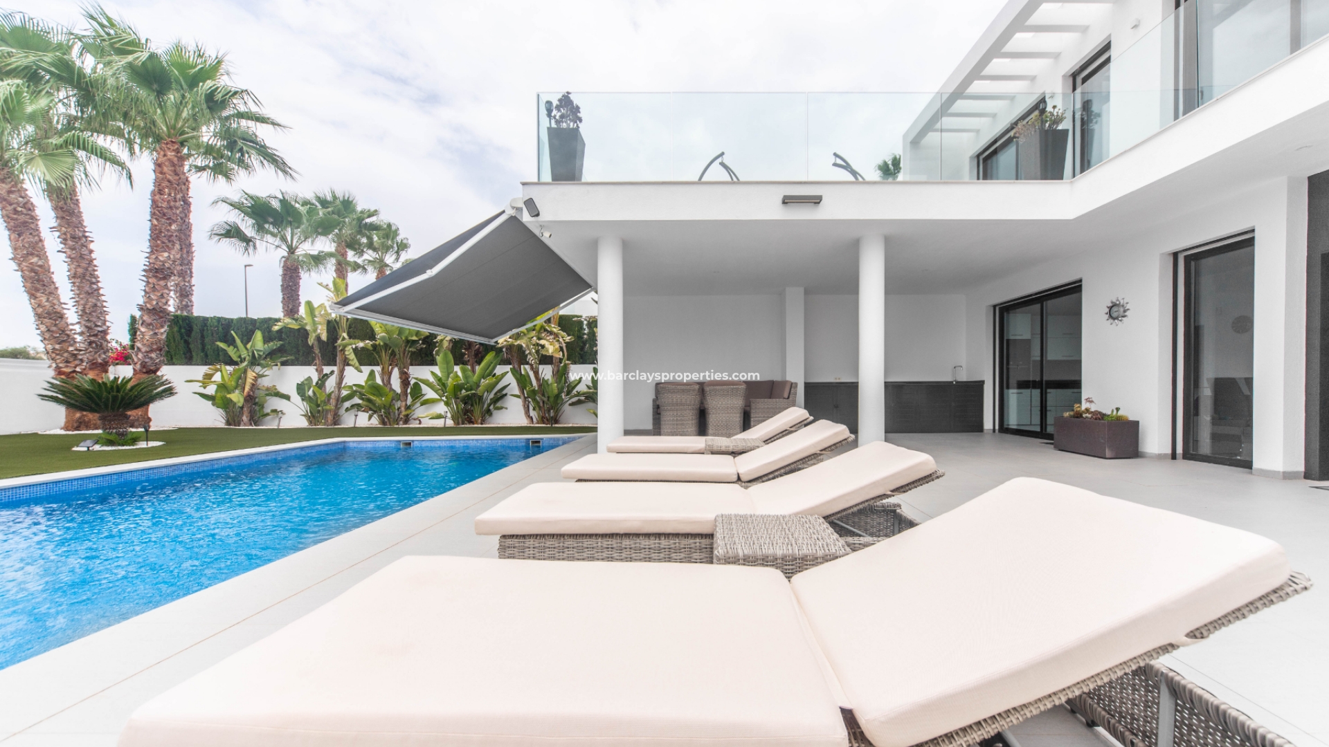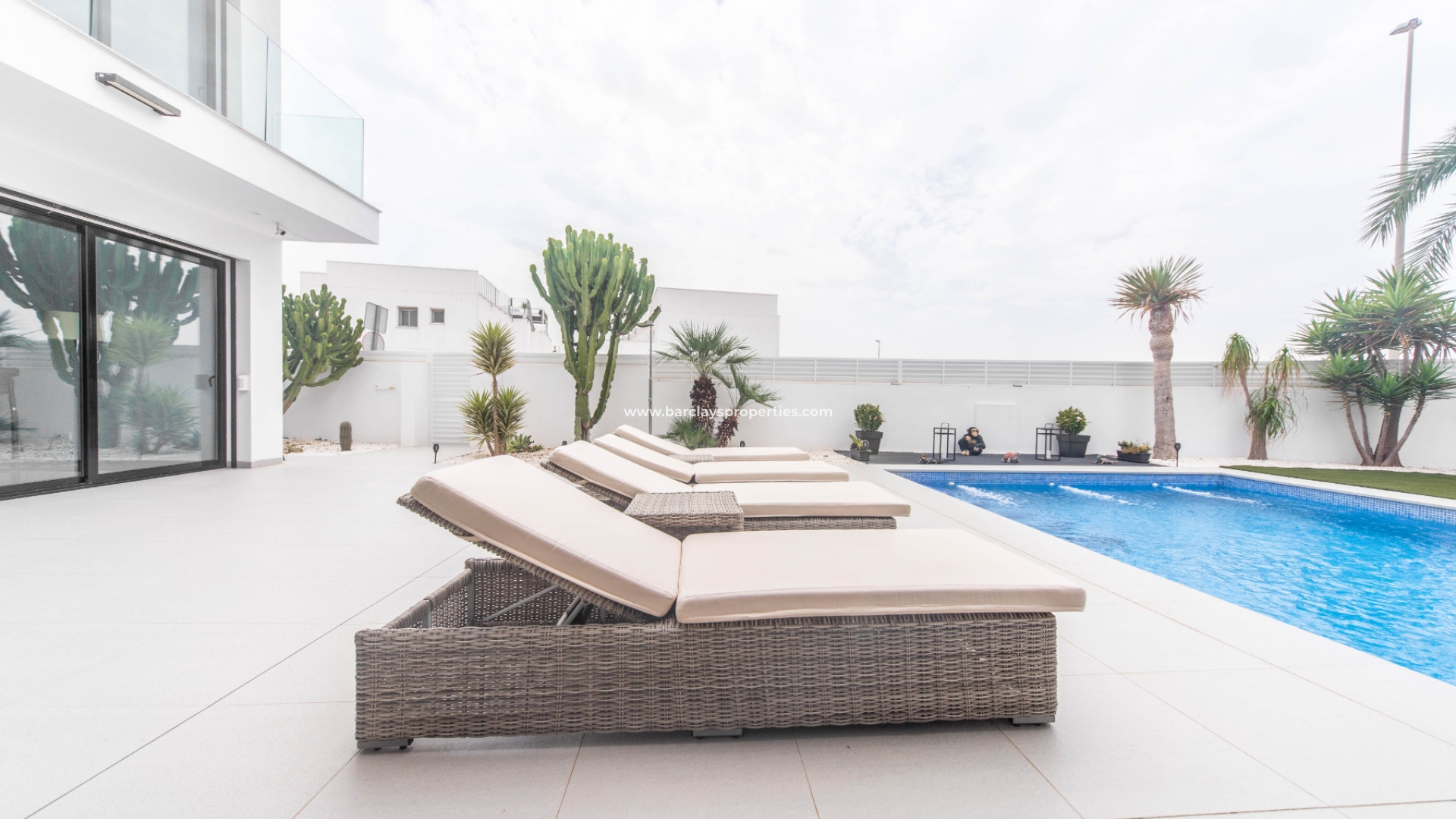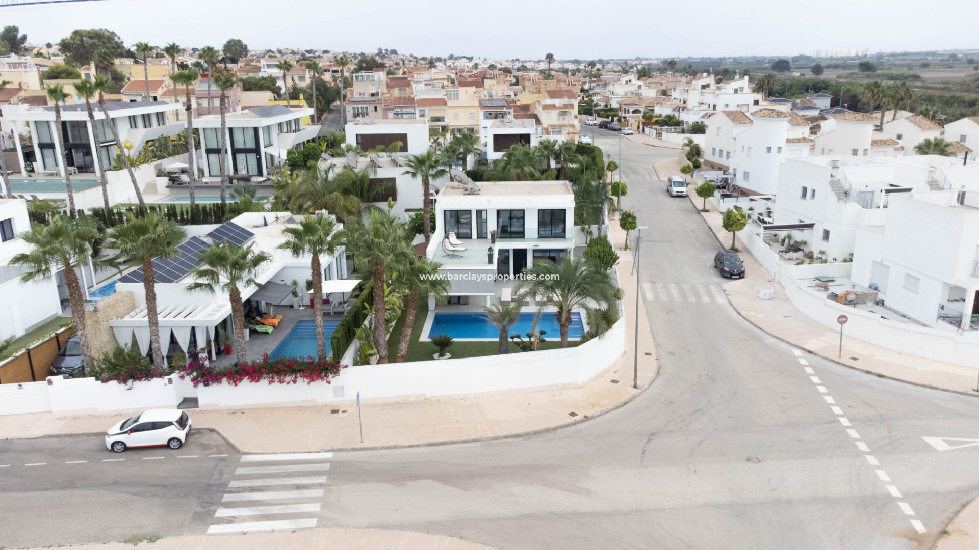 Het intercomsysteem, het voetgangershek en de brede oprit bieden toegang tot de tuin met parkeergelegenheid buiten de weg, met twee ruime parkeerplaatsen, een tuinhuisje dat ideaal is voor opslag, het ➡️ prachtige privézwembad met moderne buitendouche en een fraaie nieuwe tuinindeling met modern tegelwerk, kunstgrasgedeeltes met planten en bomen, en vele schaduwrijke en zonnige plekken om buiten te zitten, te dineren en te zonnebaden. Hier kun je heerlijk ontspannen en genieten van het buitenleven, met 325 zonnige dagen per jaar.